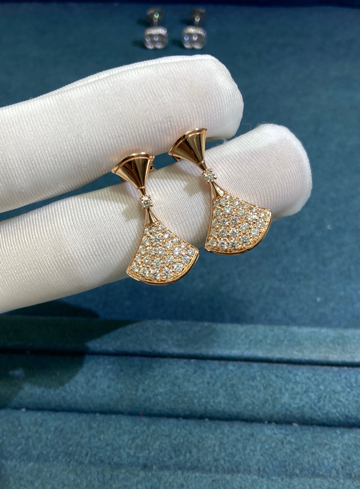 Bvlgari Double Fan Skirt Stud Earrings with Diamonds, Rose Gold