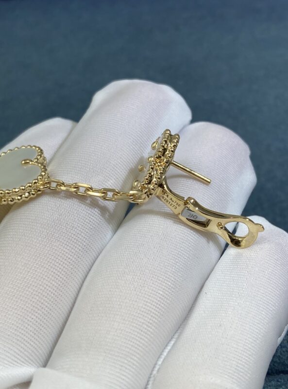 Double-flowered White Shell Four-leaf Clover Ear Rackets, gold color