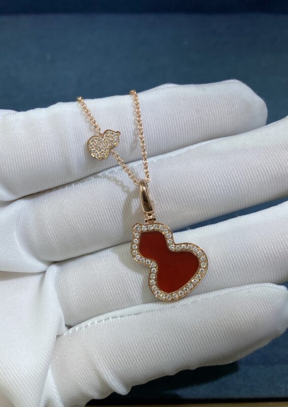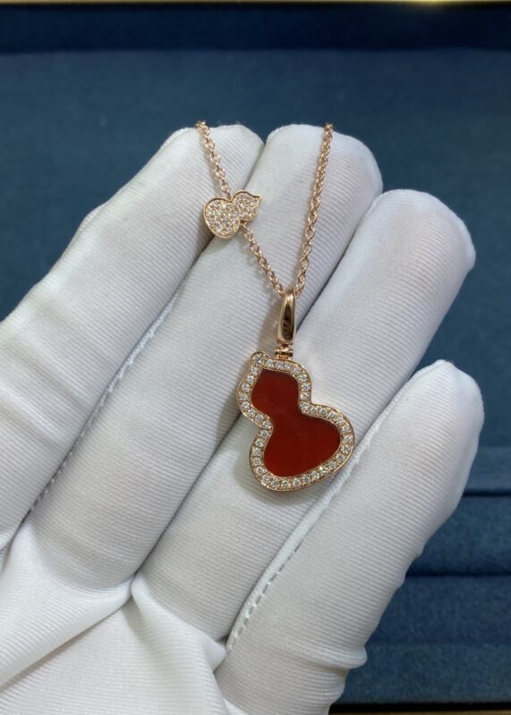 Qeelin Double Gourd Carnelian Necklace, Rose Gold