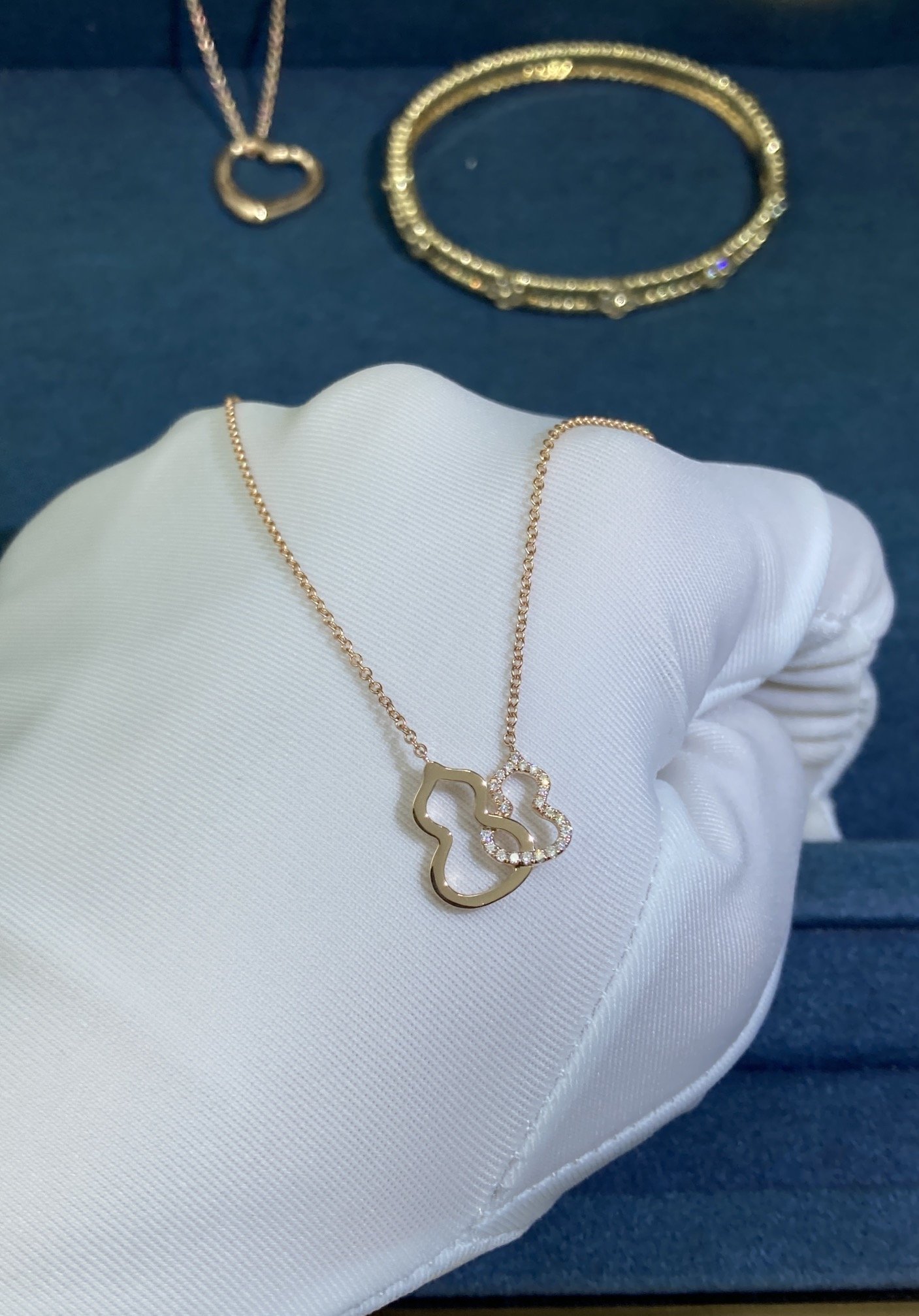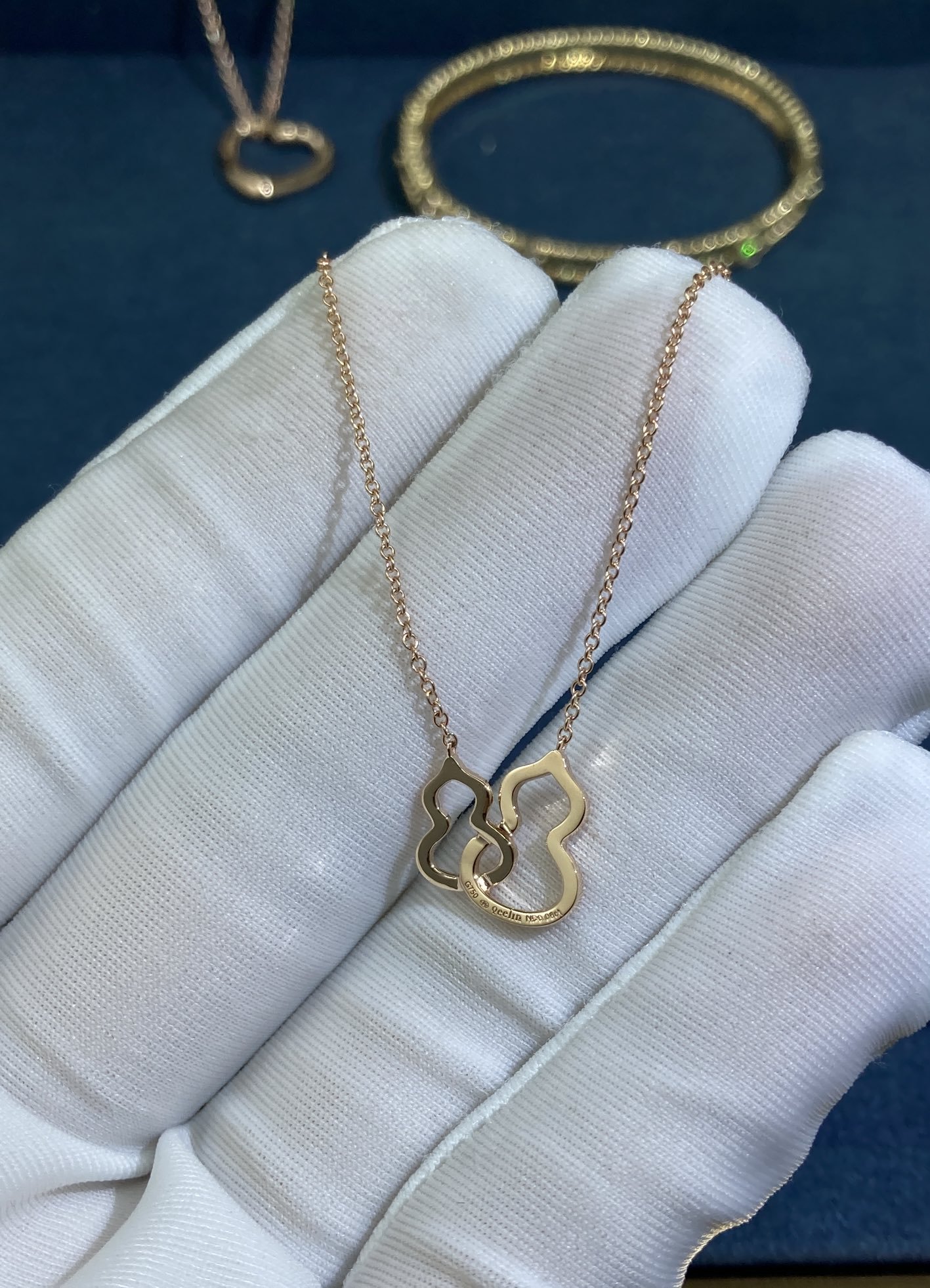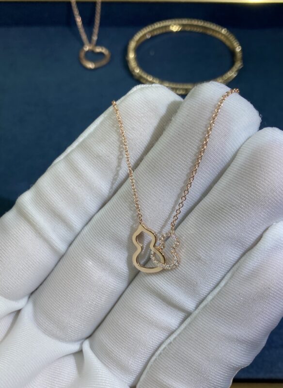 Qeelin Double Gourd Necklace with Diamonds, Rose Gold