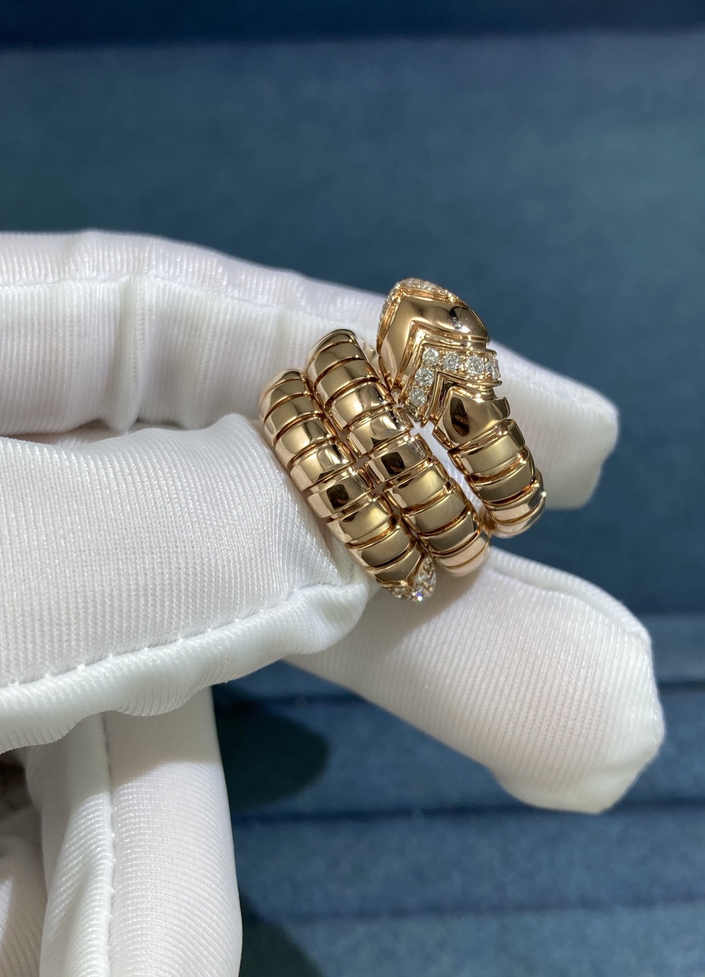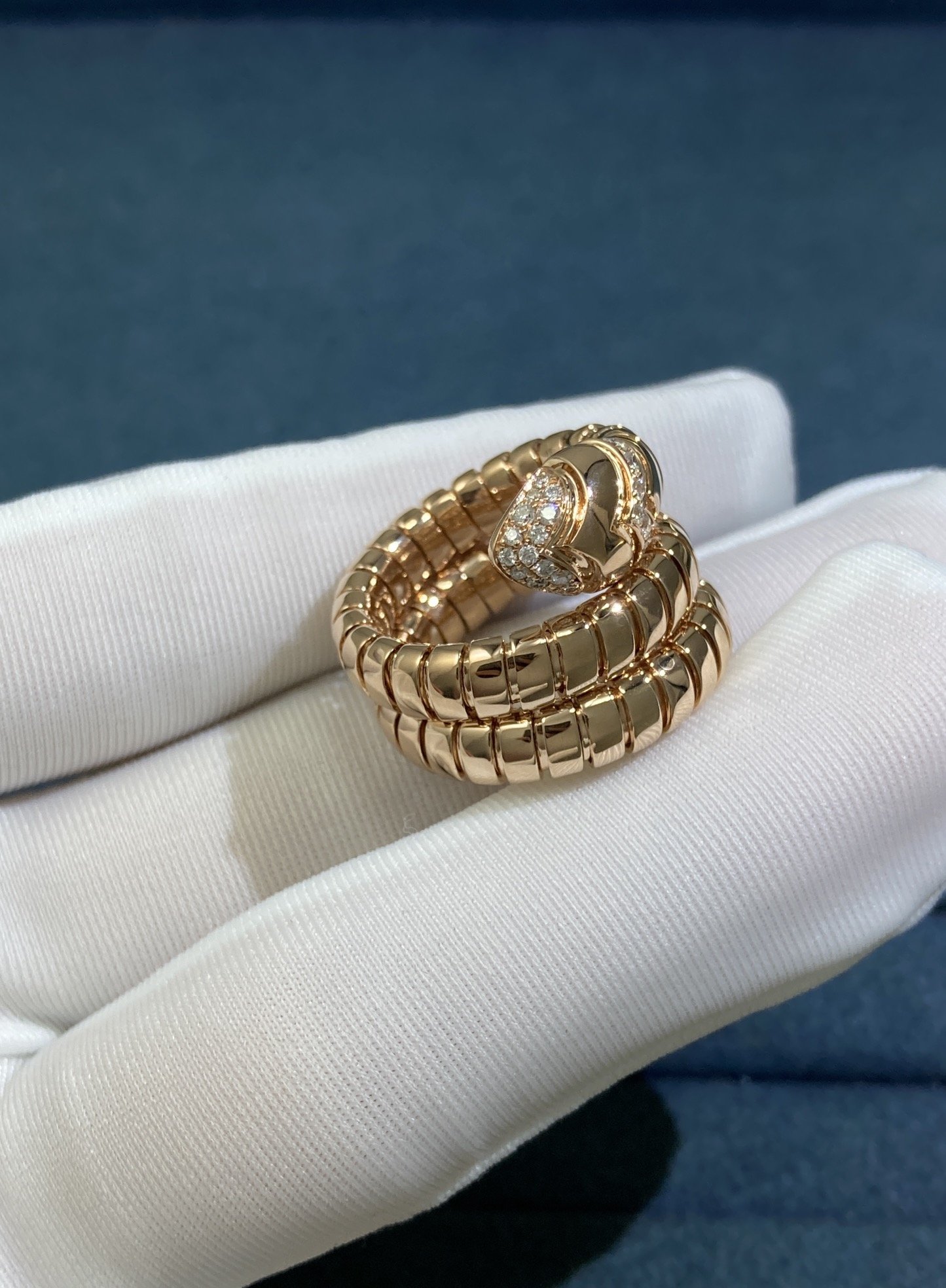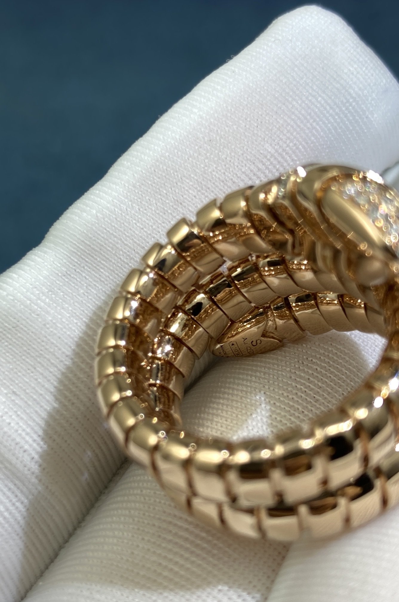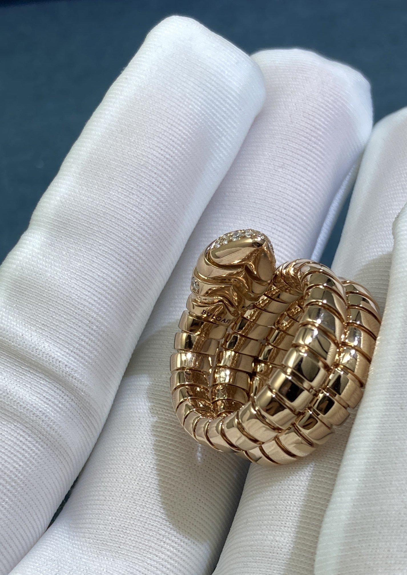 Bvlgary Double Hoop Diamond Snake Ring, Rose Gold
