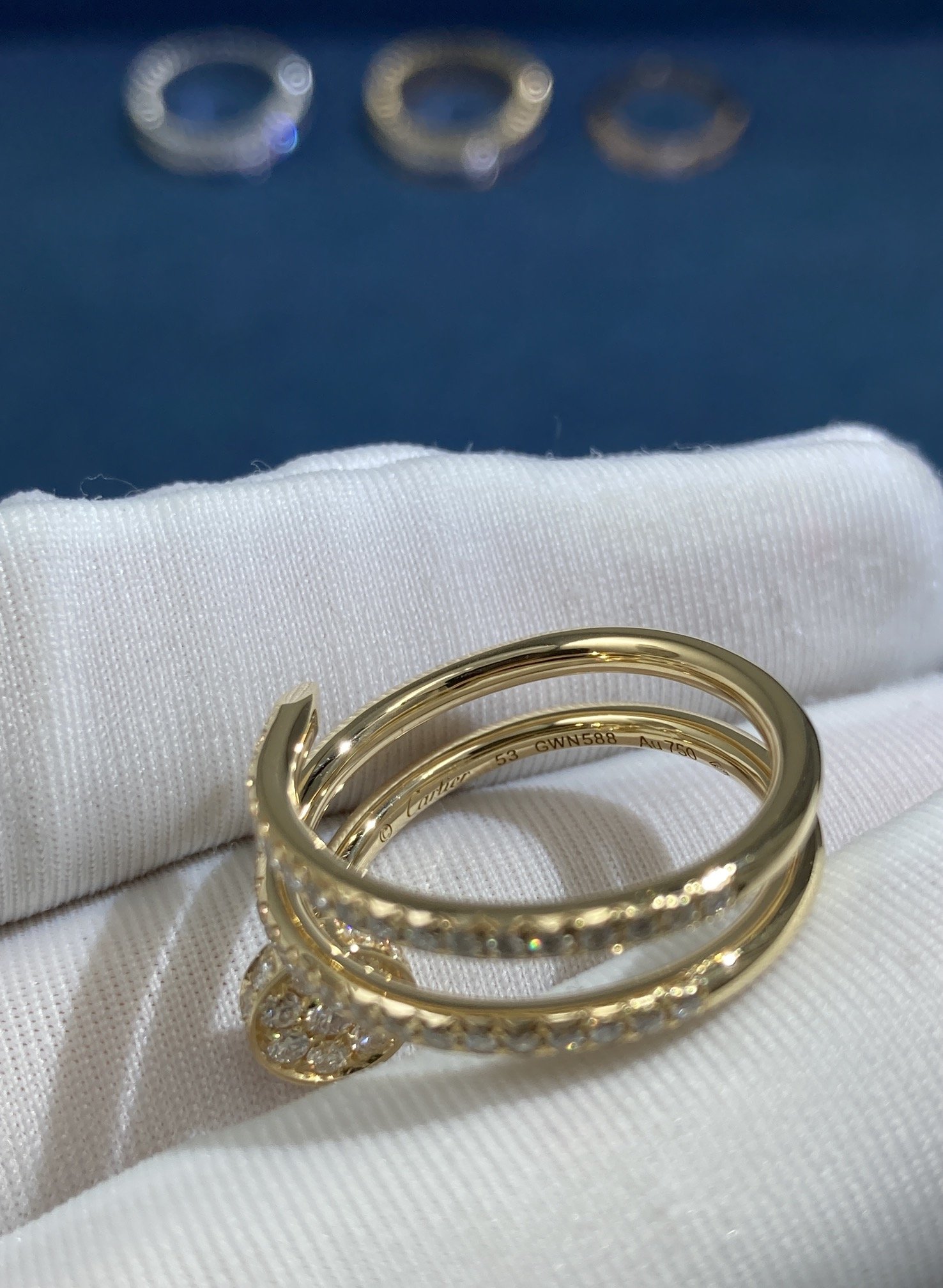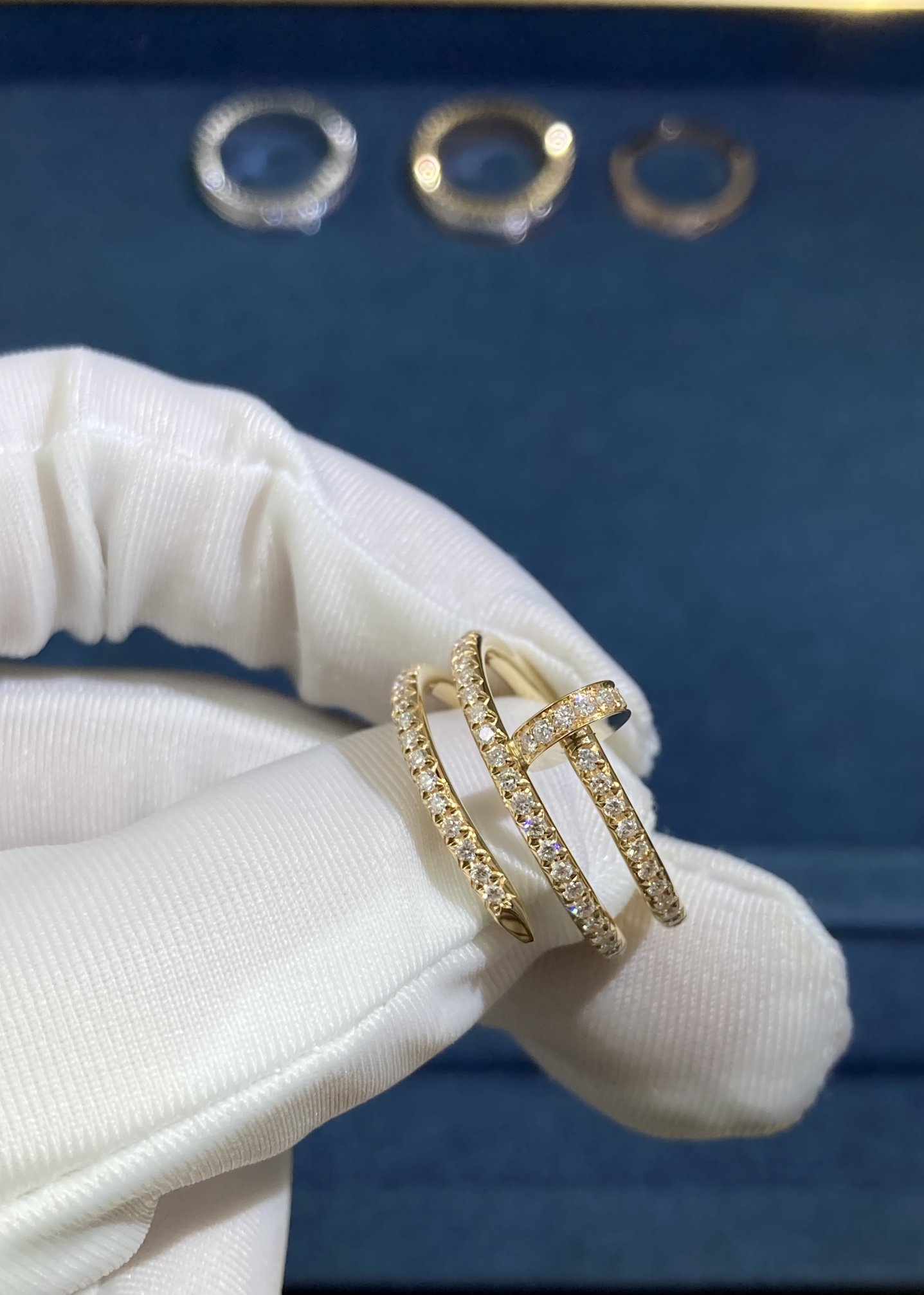 Double Hoop Full Diamond Stud Ring, Yellow Gold