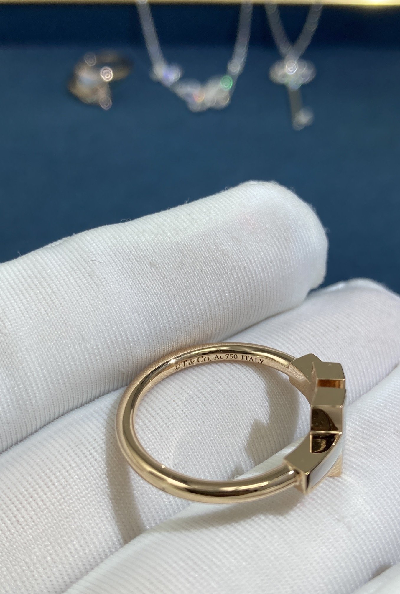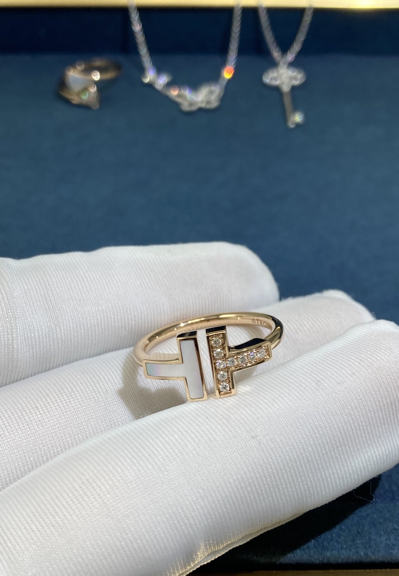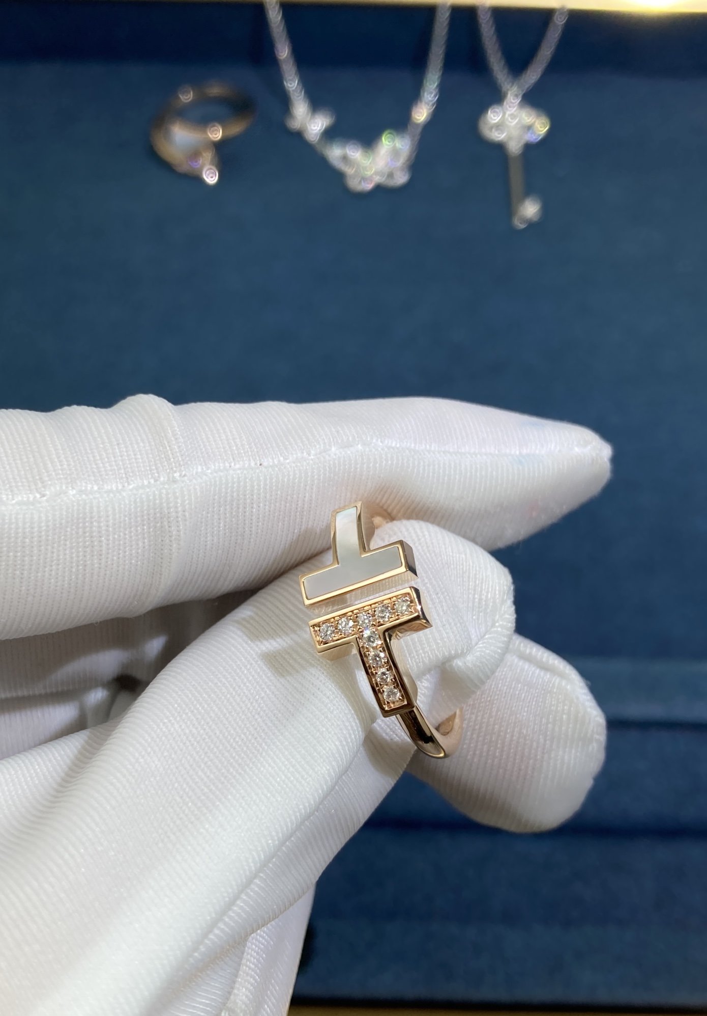 Double T White Shell Diamond Ring, Rose Gold