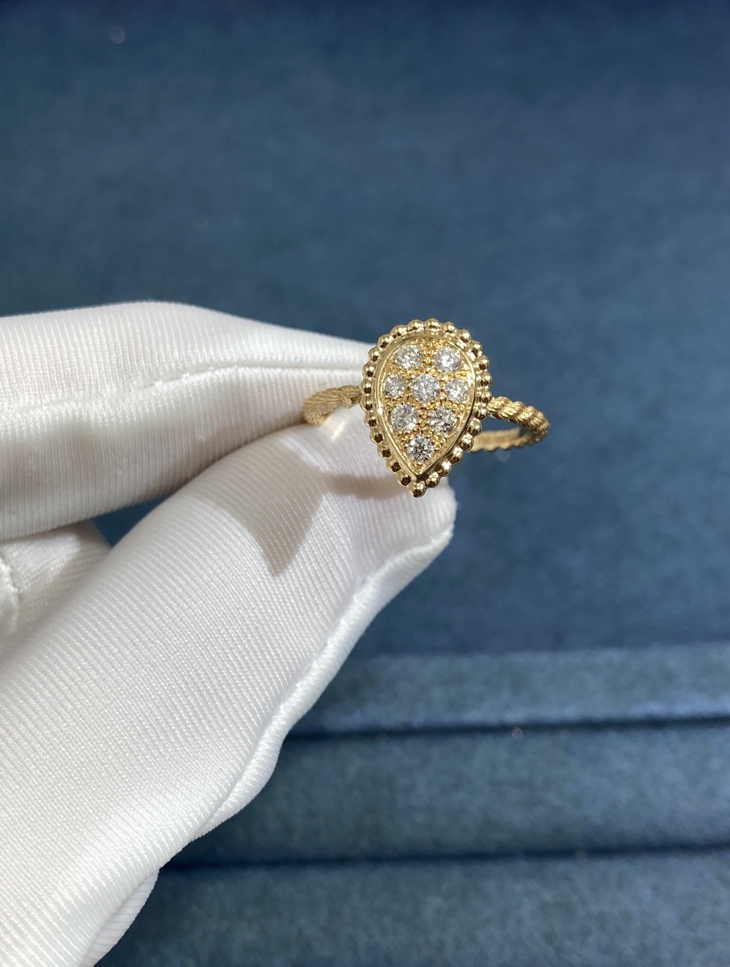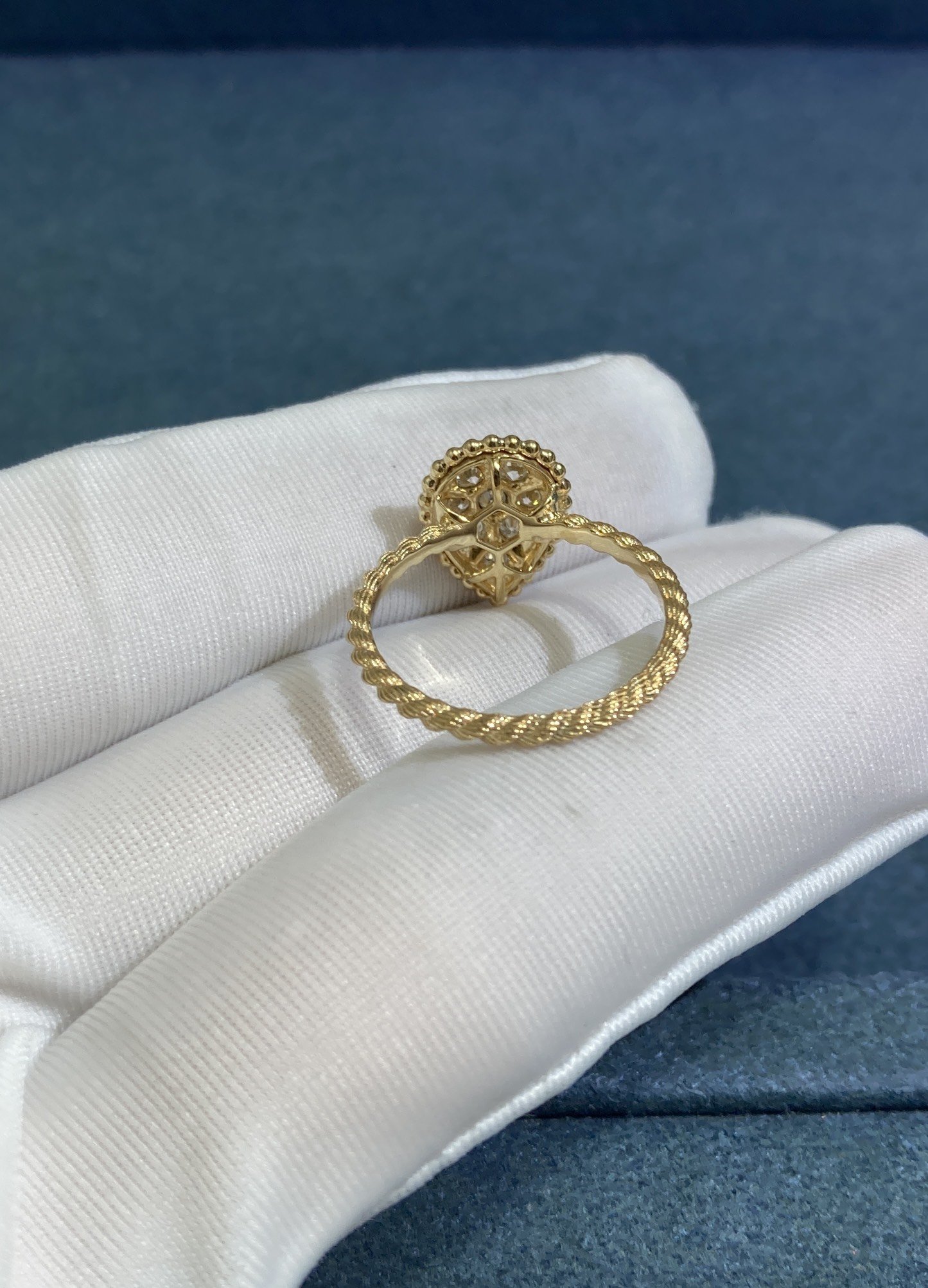The metal used in pieces of jewelry are often a lustrous yellow or white gold, which is expertly polished to a mirror-like finish. The precious stones are carefully selected by our masters and set in a precise manner, showing off their color, clarity, and brilliance to their full potential.