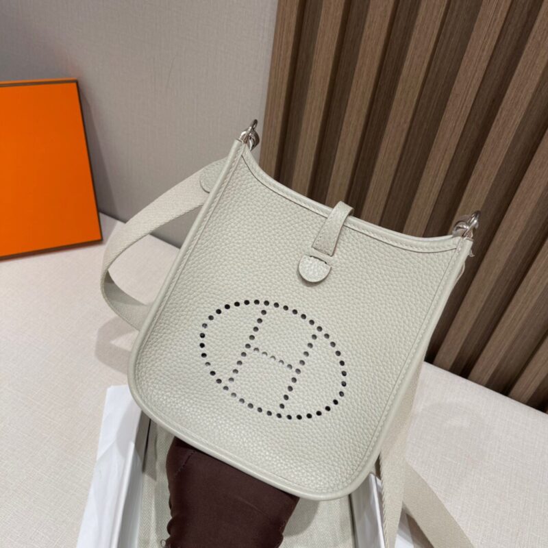 Evelyne mini Evelyne 16cm Clemence Leather 80 Pearl Gray Gris Perle