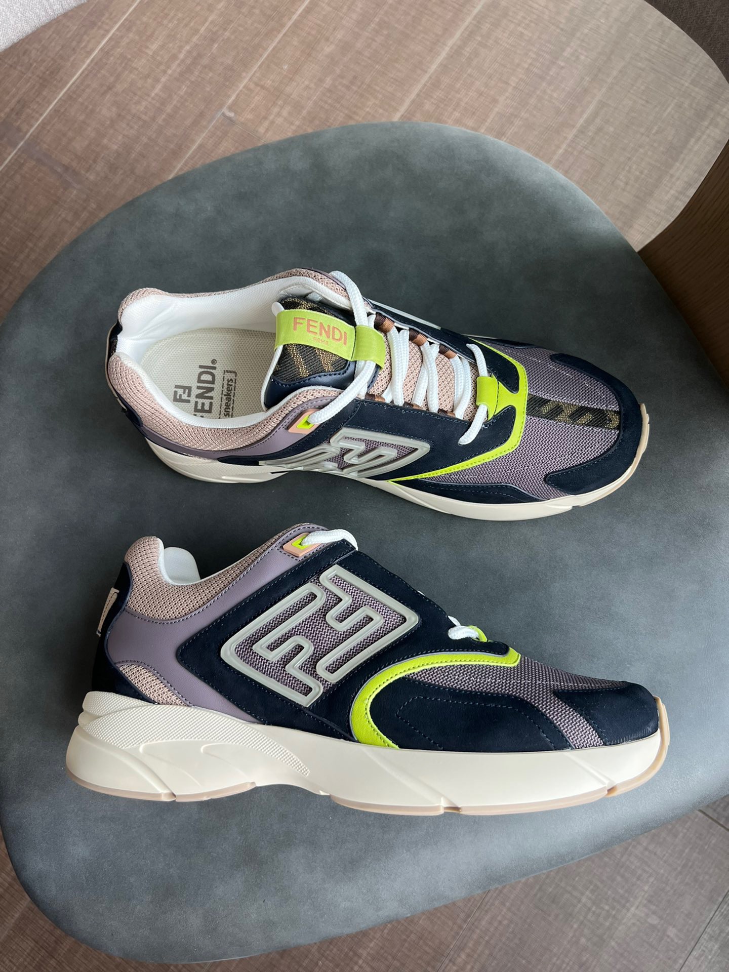 The upper is finished with matching leather and technical fabric details, and the side is embossed with the FF motif. Rippled running sole with FF! Decorated with FF fabric inlays, original fabric label number and size on the tongue, original custom outsole (each color has its own outsole color), original handmade craftsmanship. A full set of genuine counter packaging!