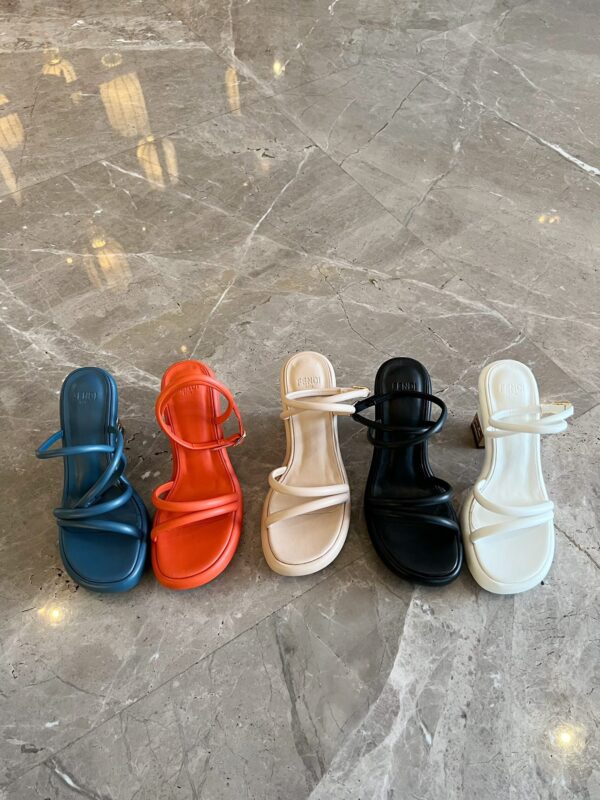 Made of nappa sheepskin, the 2cm waterproof platform better modifies the shape of the legs, with FF Baguette pattern gold metal heel.