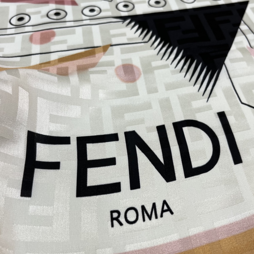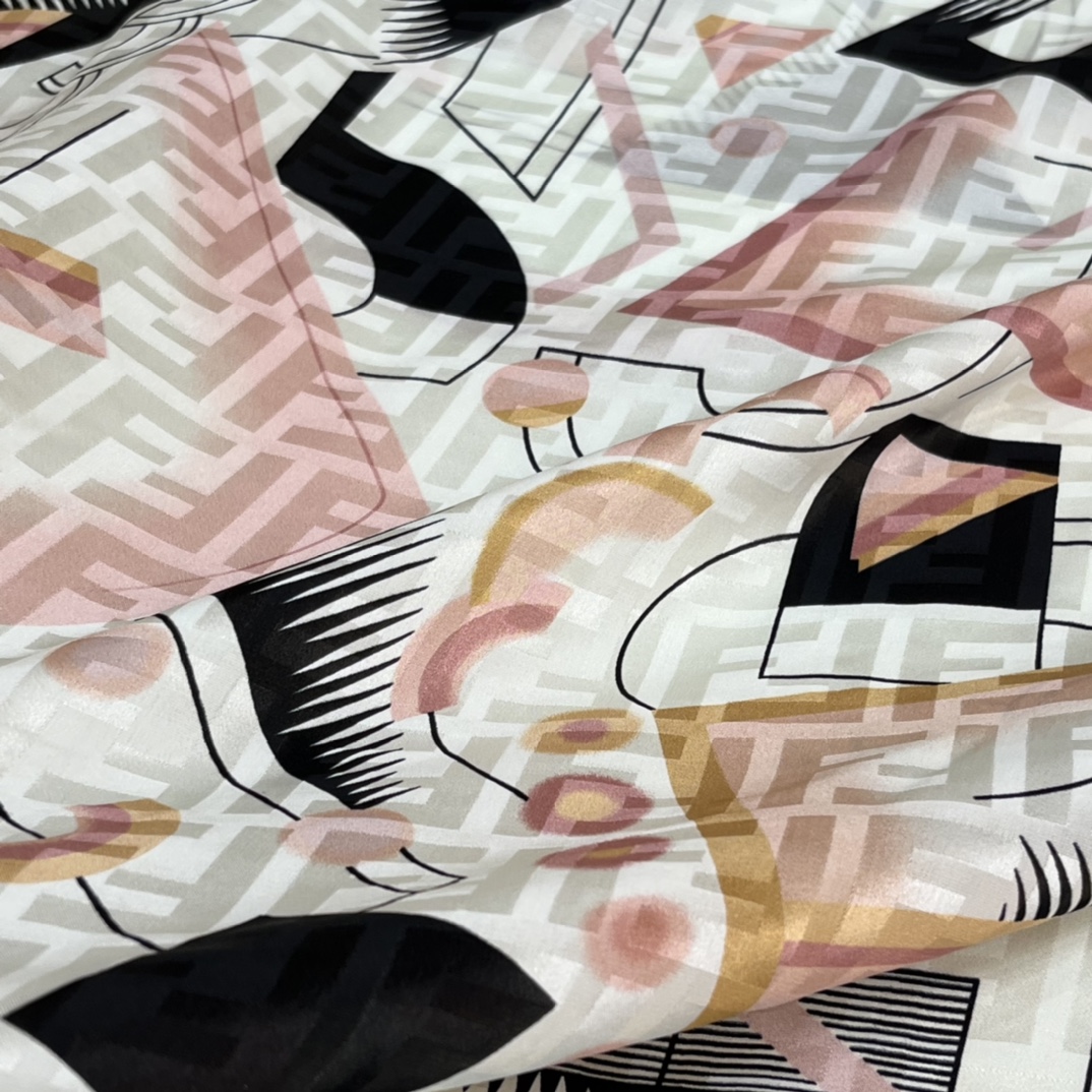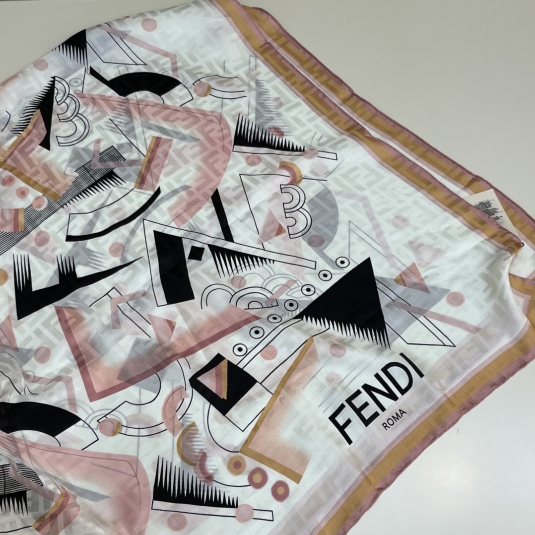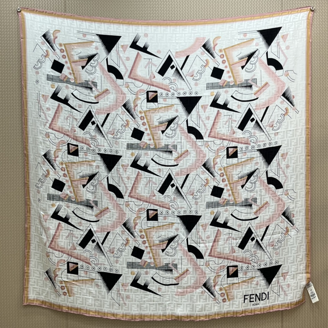 FENDI Abstract Geometric. 140*140cm. 100% Silk