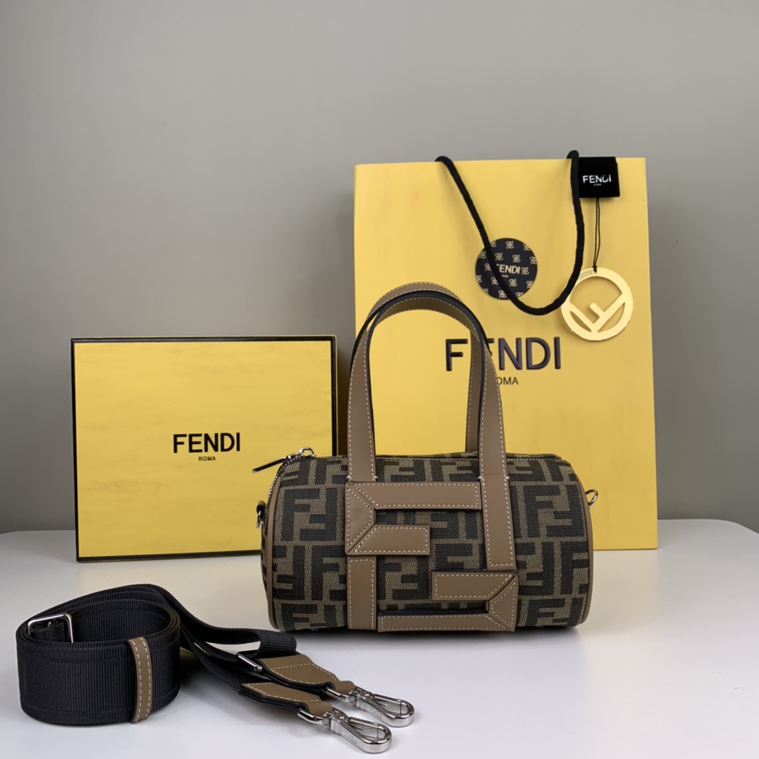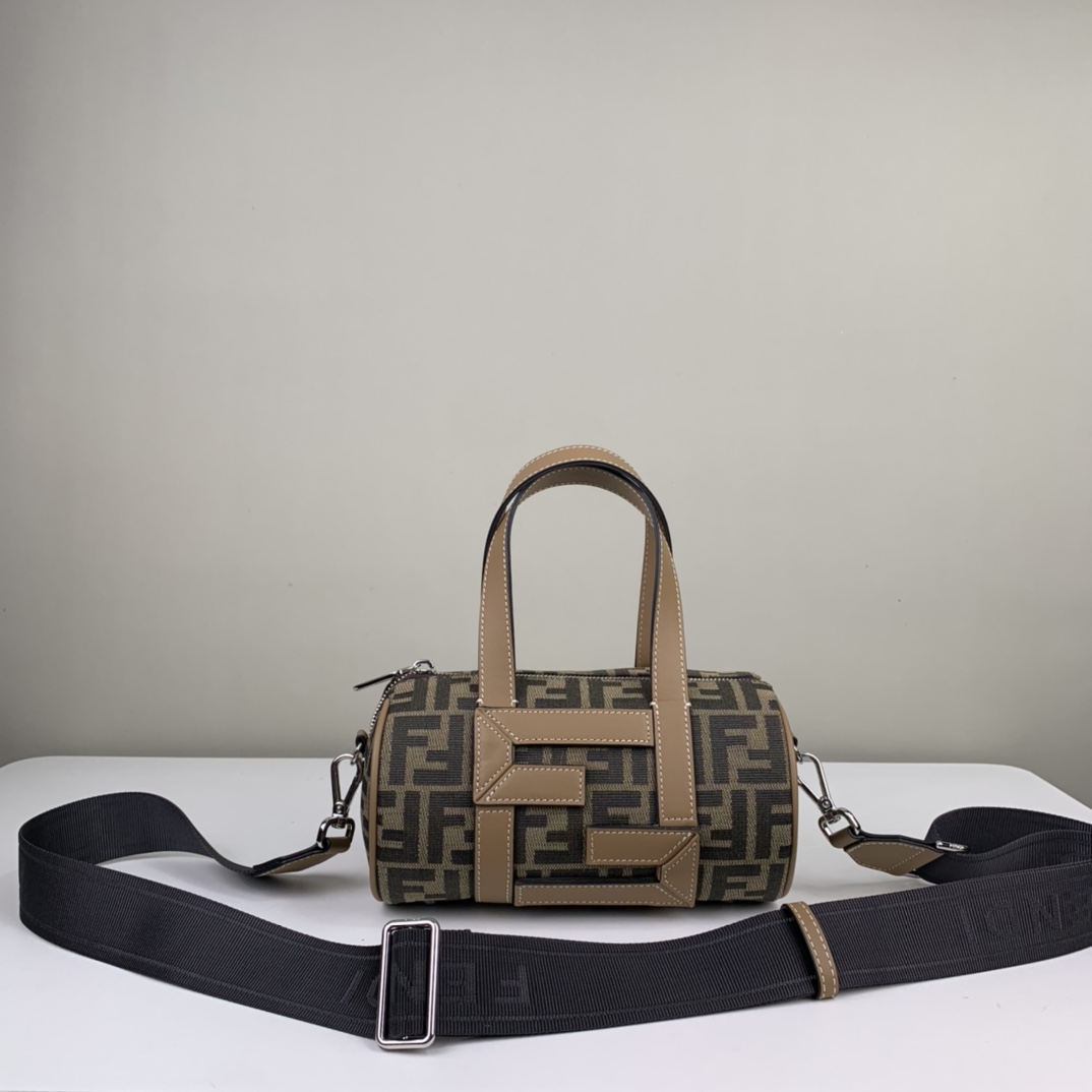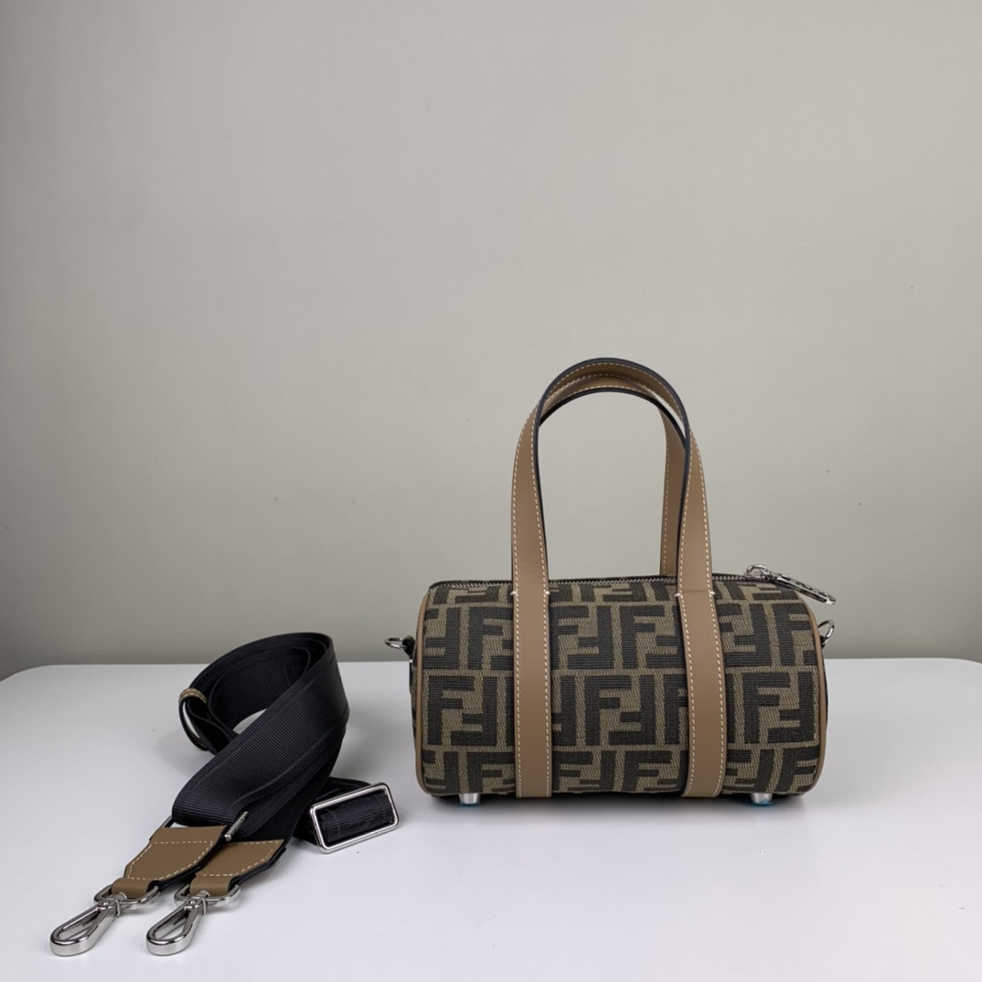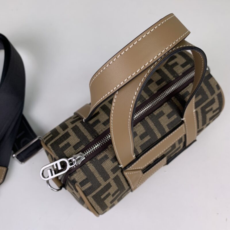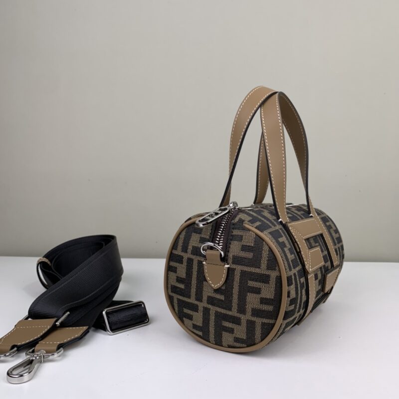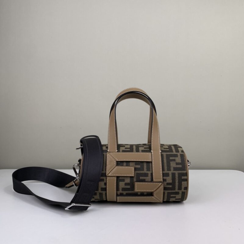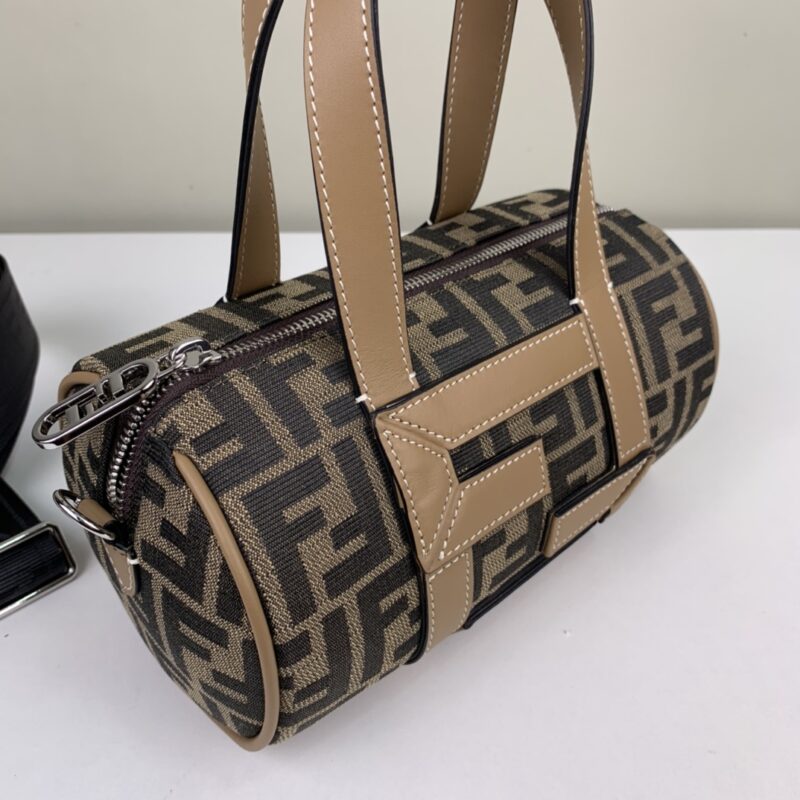 Girls, boys universal bucket bag. Presbyopia fabric stitched with FF calfskin. Portable, adjustable long shoulder strap. Style number 006 Dimensions 21.5x13x13