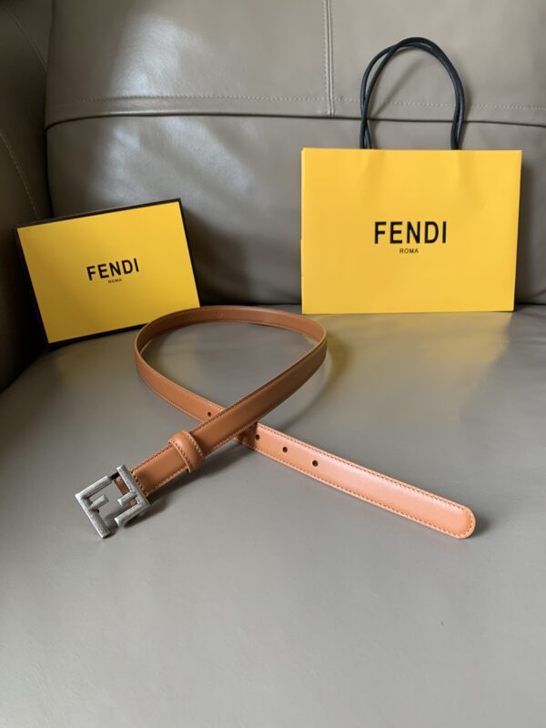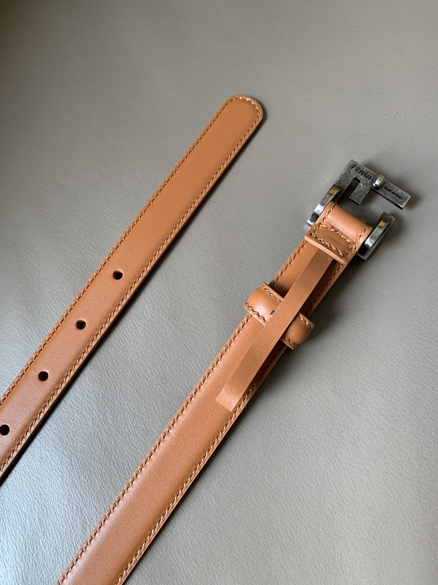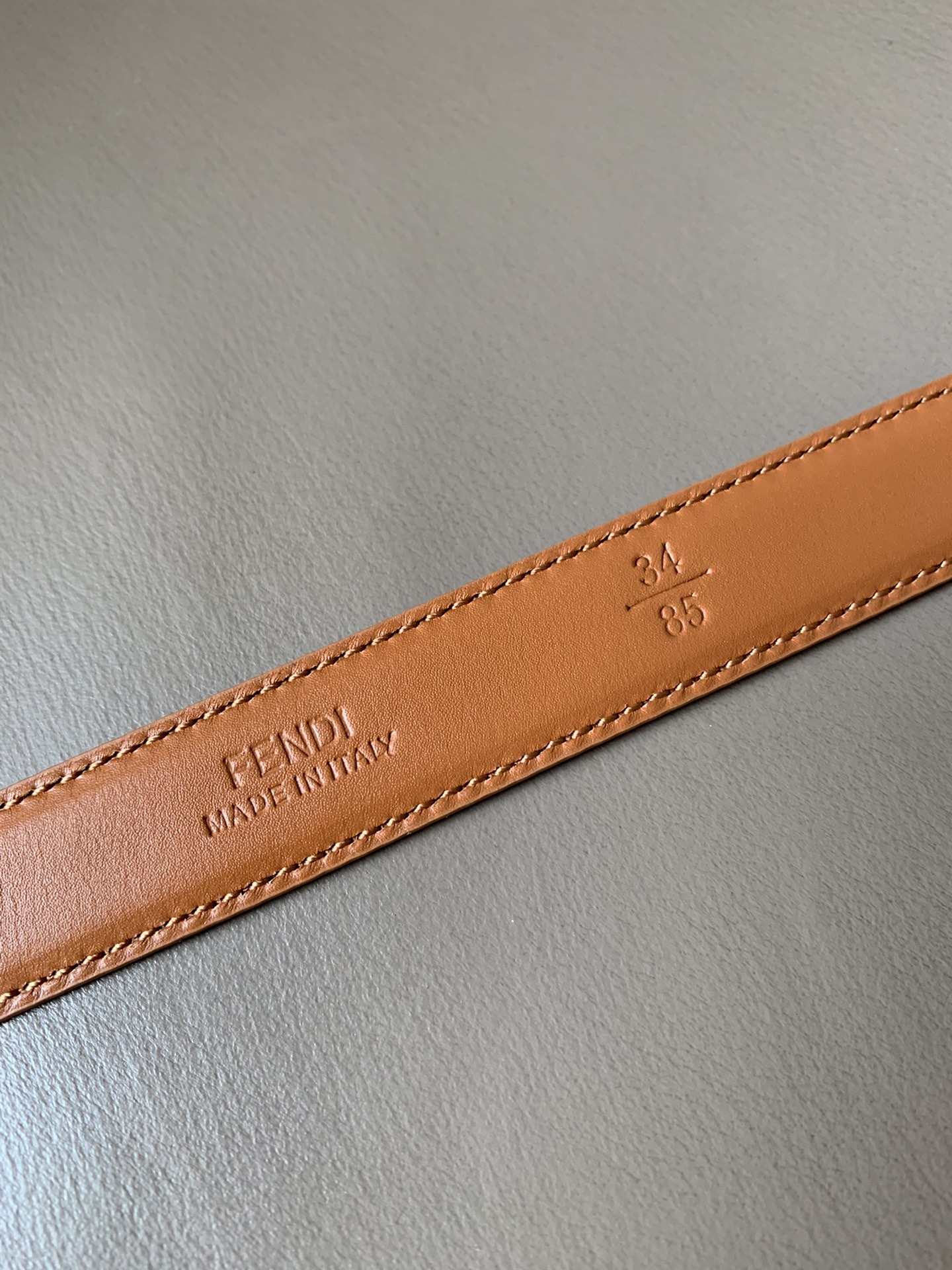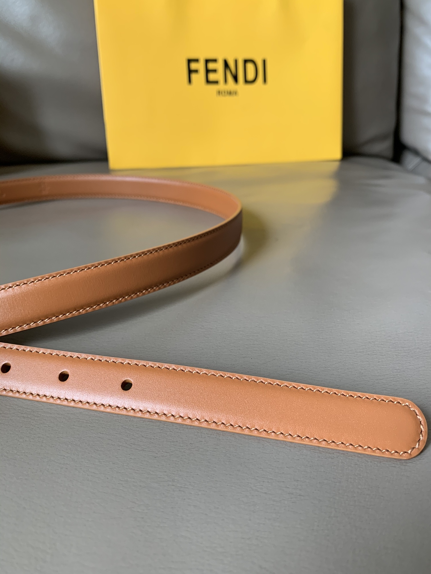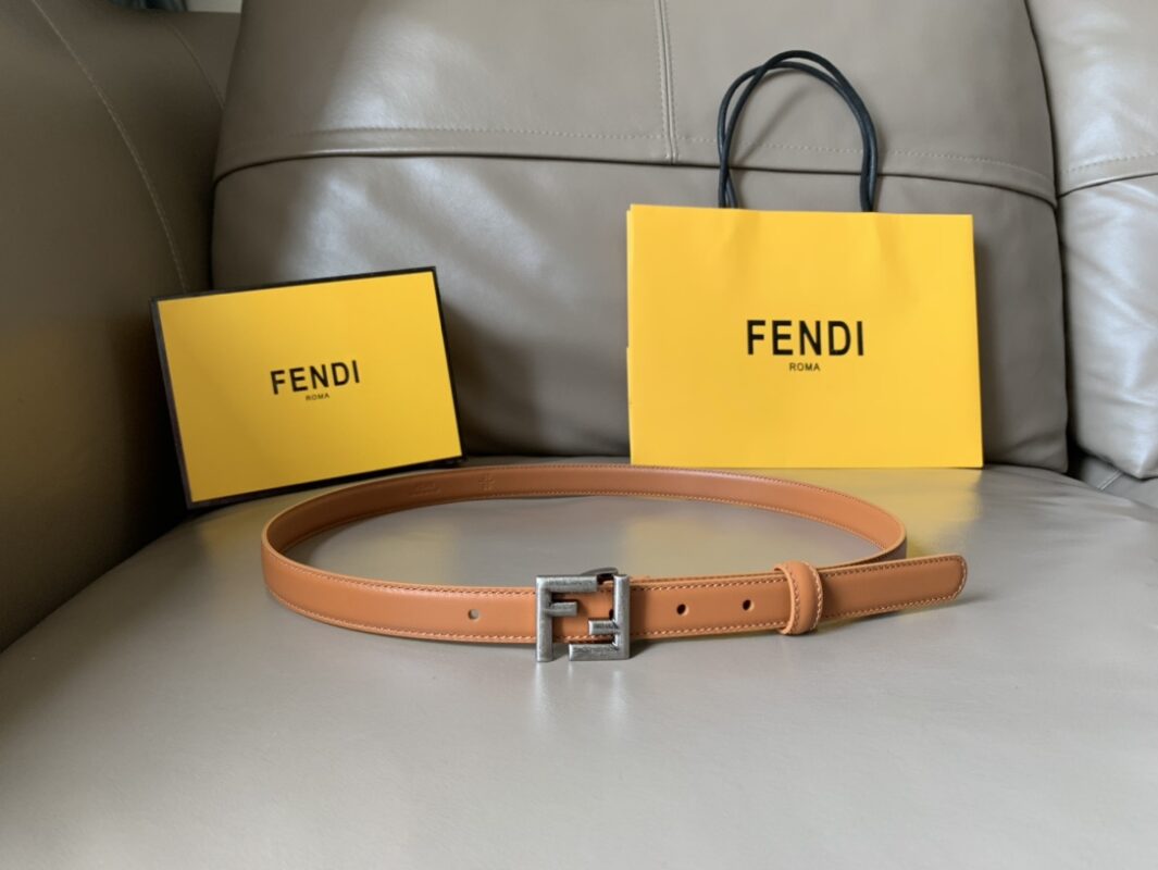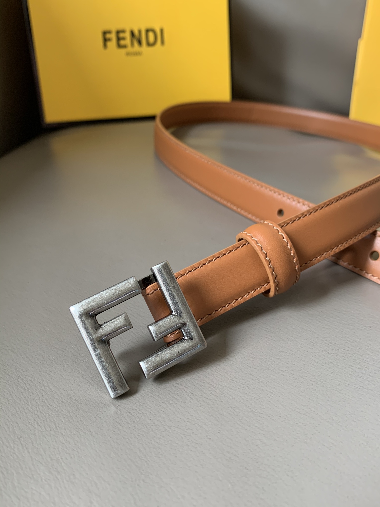 Fendi counter new women’s casual thin belt, width 2 cm, brown double-sided calfskin with loop and FF buckle, antique silver-coated metal hardware, original quality.