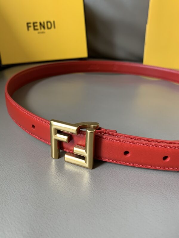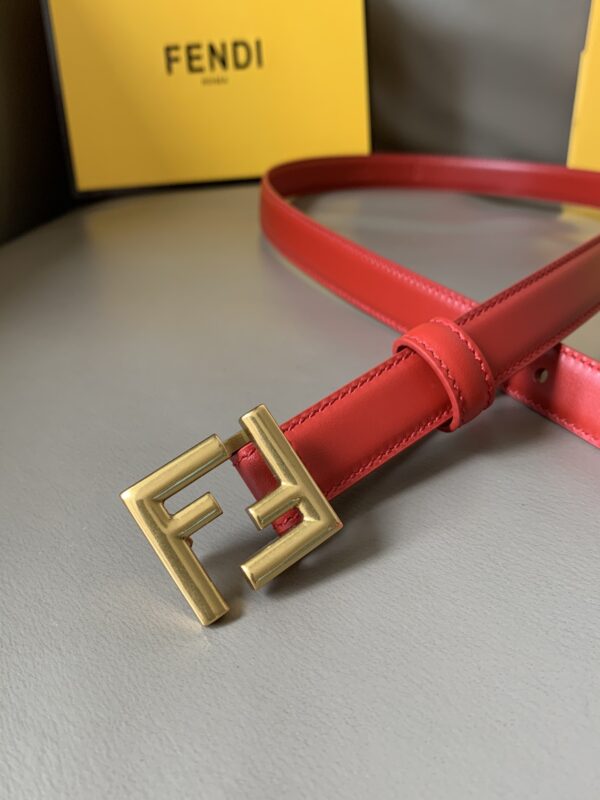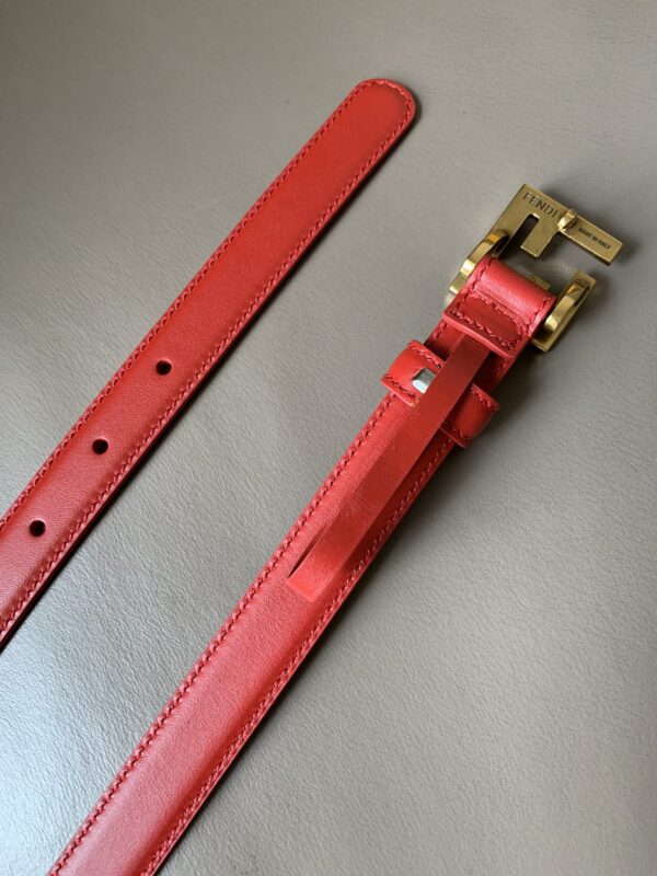 Fendi counter new women’s casual thin belt, width 2 cm, red double-sided calfskin with loop and FF buckle, antique silver-coated metal hardware, original quality.