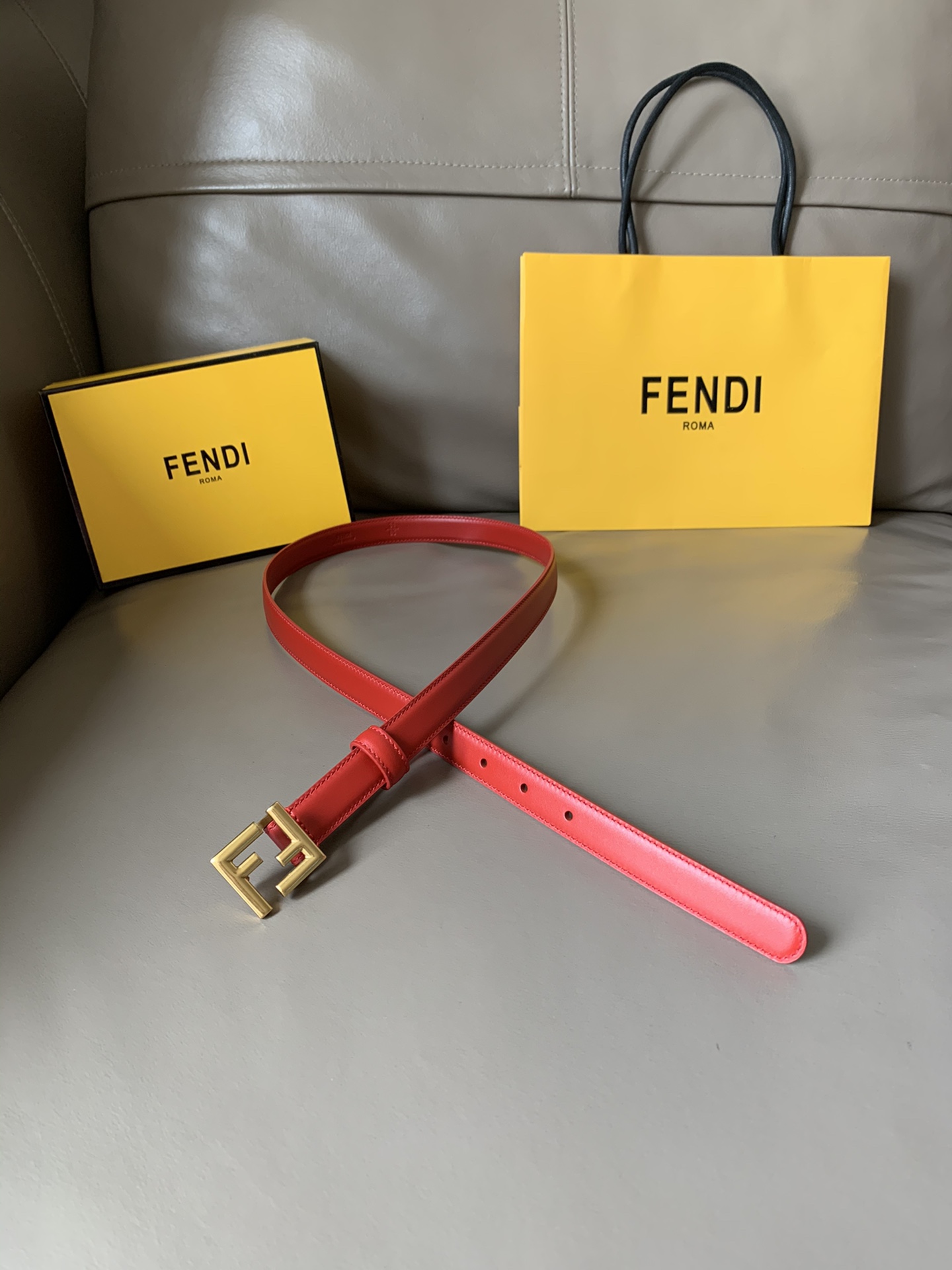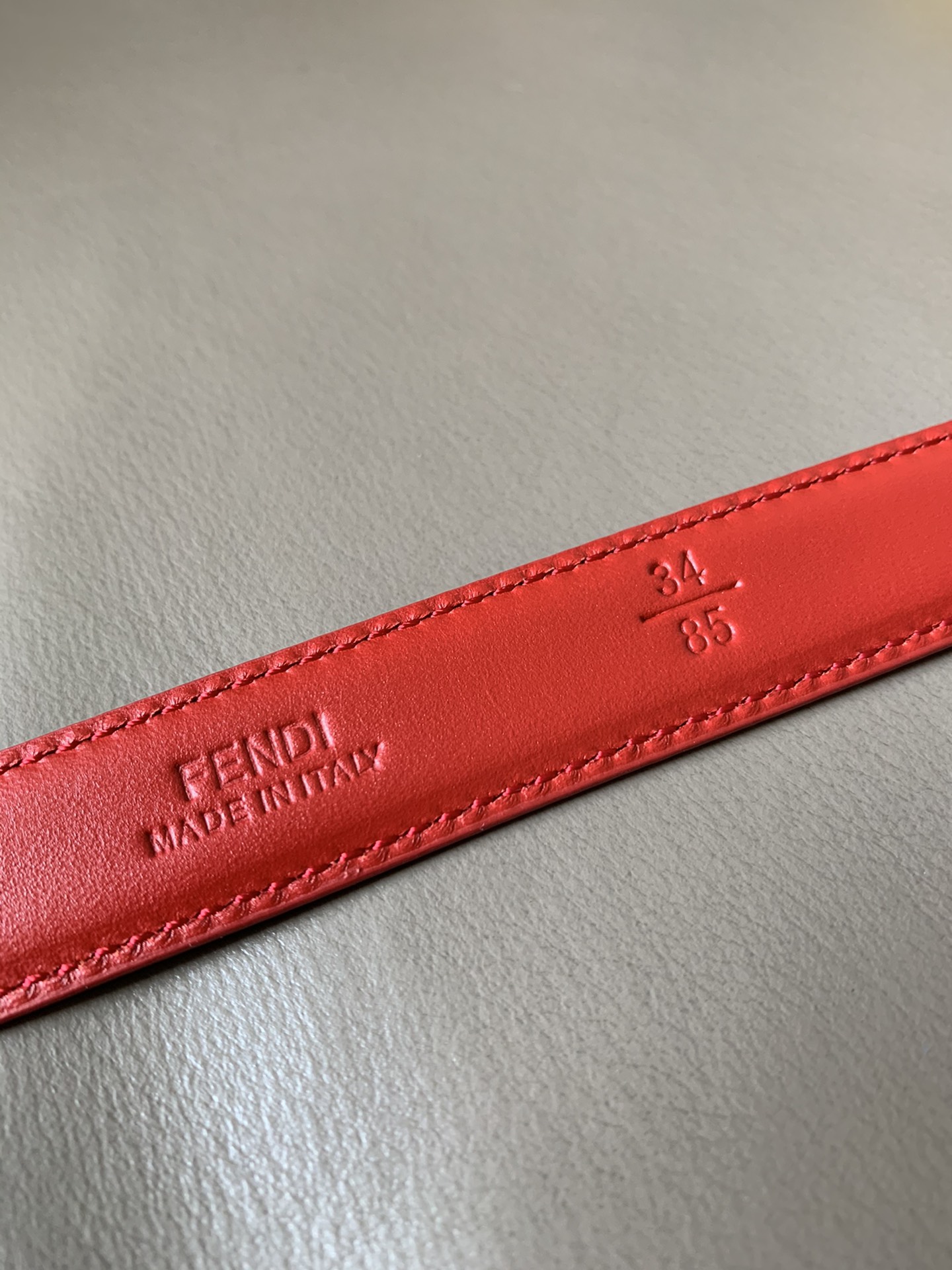 Fendi counter new women’s casual thin belt, width 2 cm, red double-sided calfskin with loop and FF buckle, antique silver-coated metal hardware, original quality.
