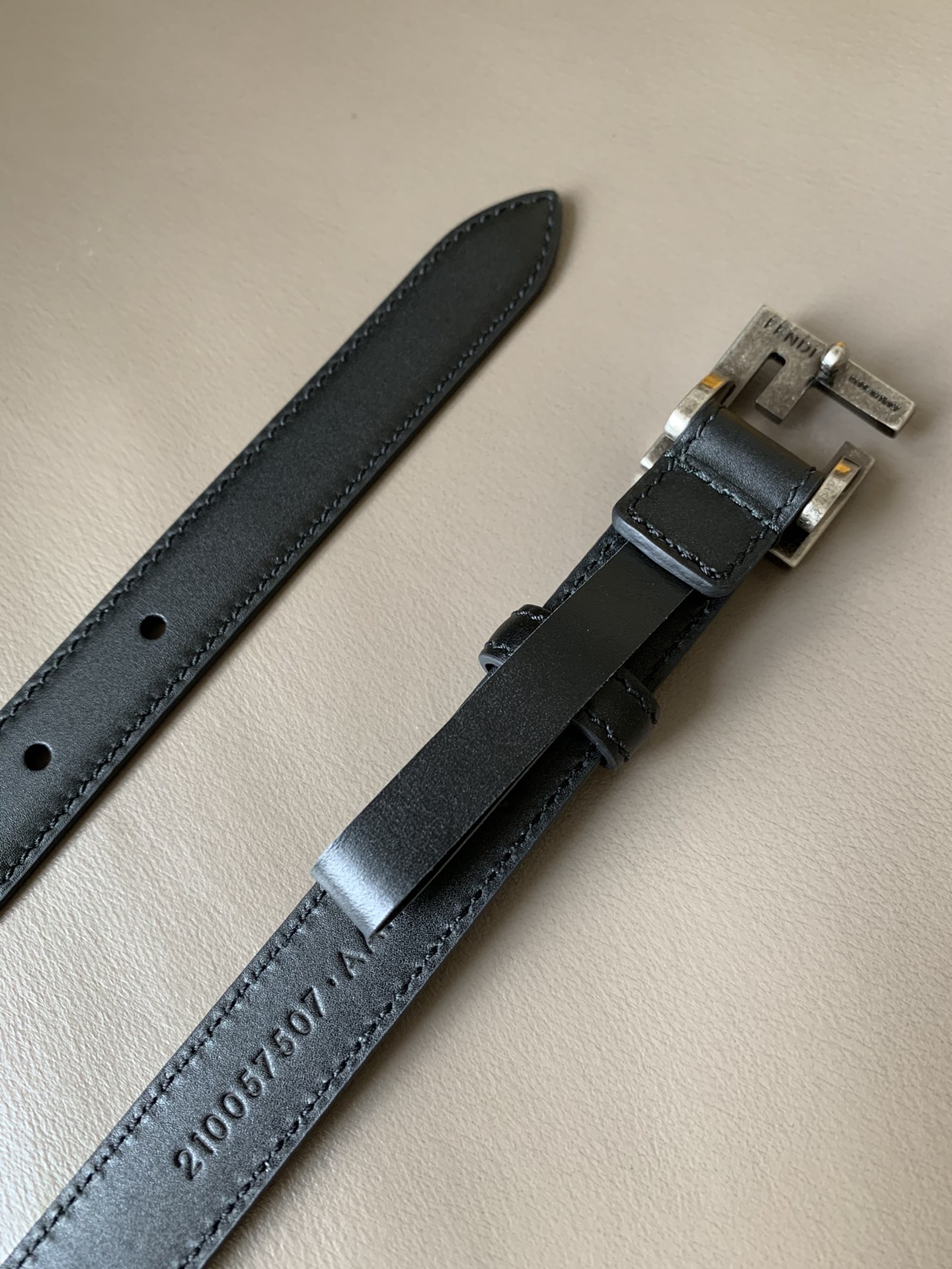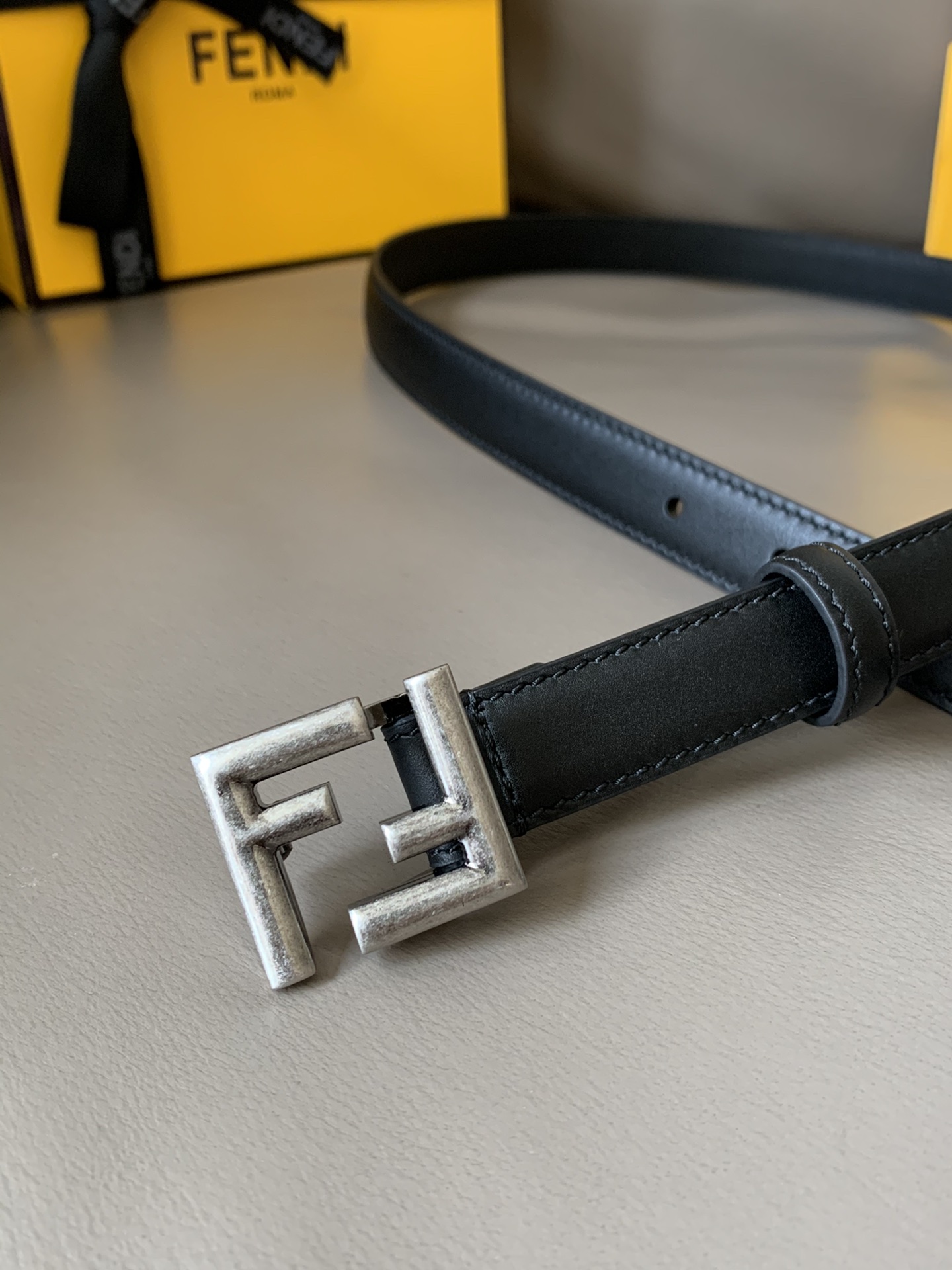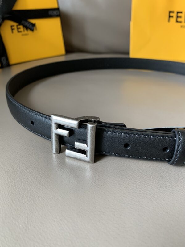 Fendi counter new unisex casual belt, width 3.4cm, black double-sided calfskin with loop and FF buckle, antique silver-coated metal hardware, original single quality.
