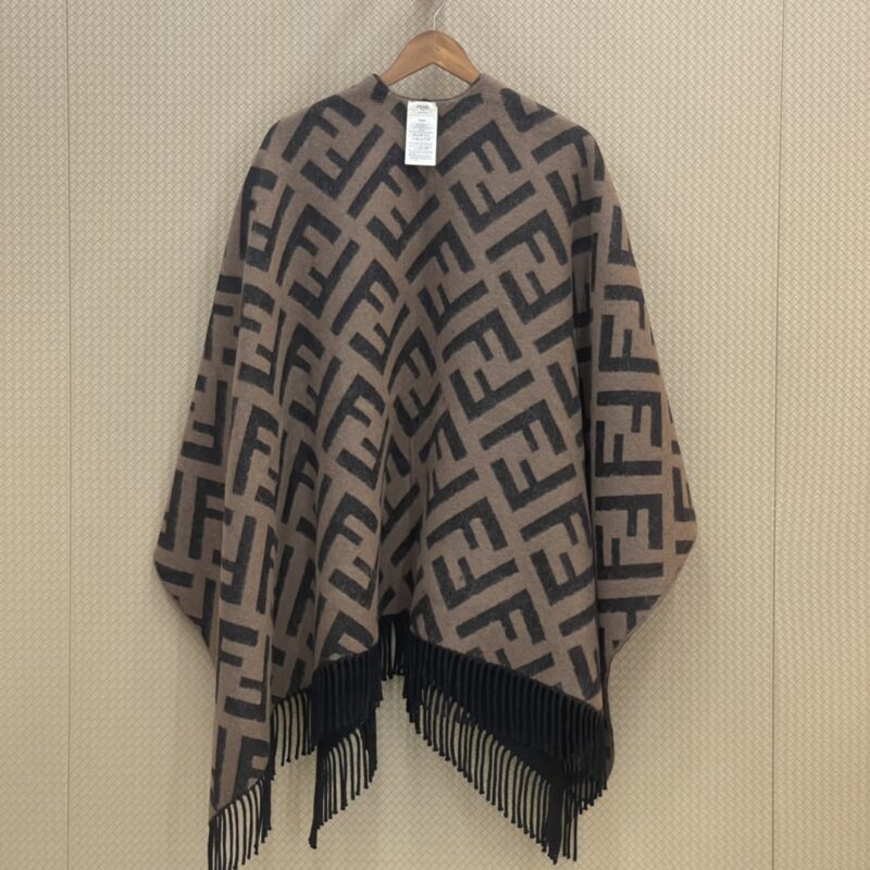 FENDI F Classic Fringed double-sided cloak. 140*150cm. 51% wool 49% cashmere