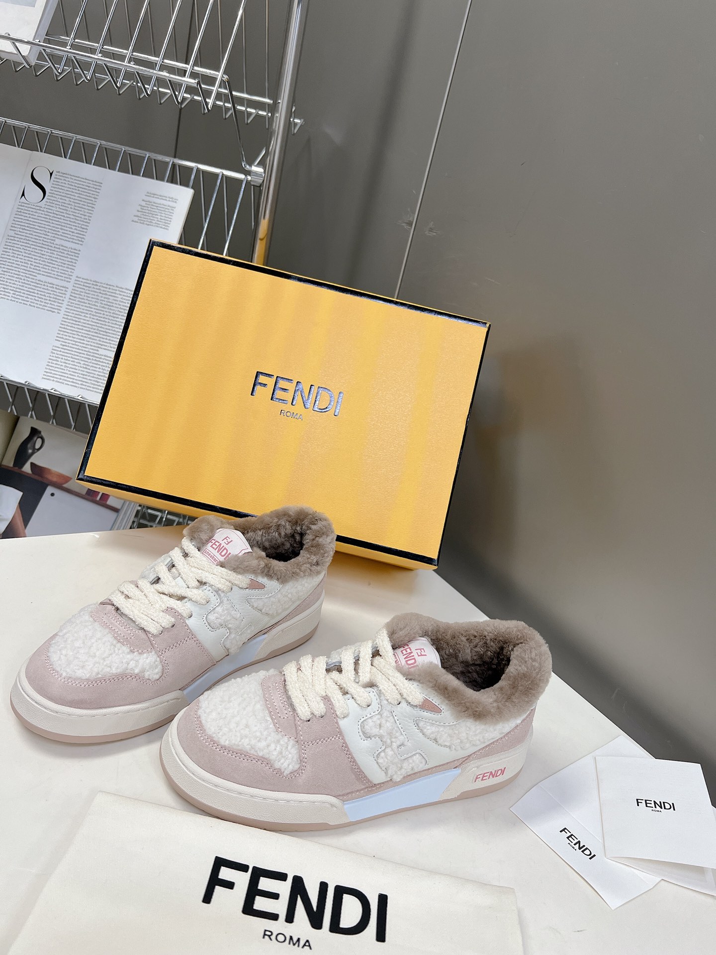 Fendi classic explosive series [couple casual sports shoes] Super good-looking and versatile. The upper is made of cowhide and cowhide splicing combination, the double F logo raised on the side is made of real wool. The upper foot is super soft, light, comfortable to match with a sweater. Fabric: cowhide color matching, inner: real wool. Pads: real wool. Outsole: original molded multi-color color matching bottom, packaging: original full set of packaging.Size: women’s 35-40