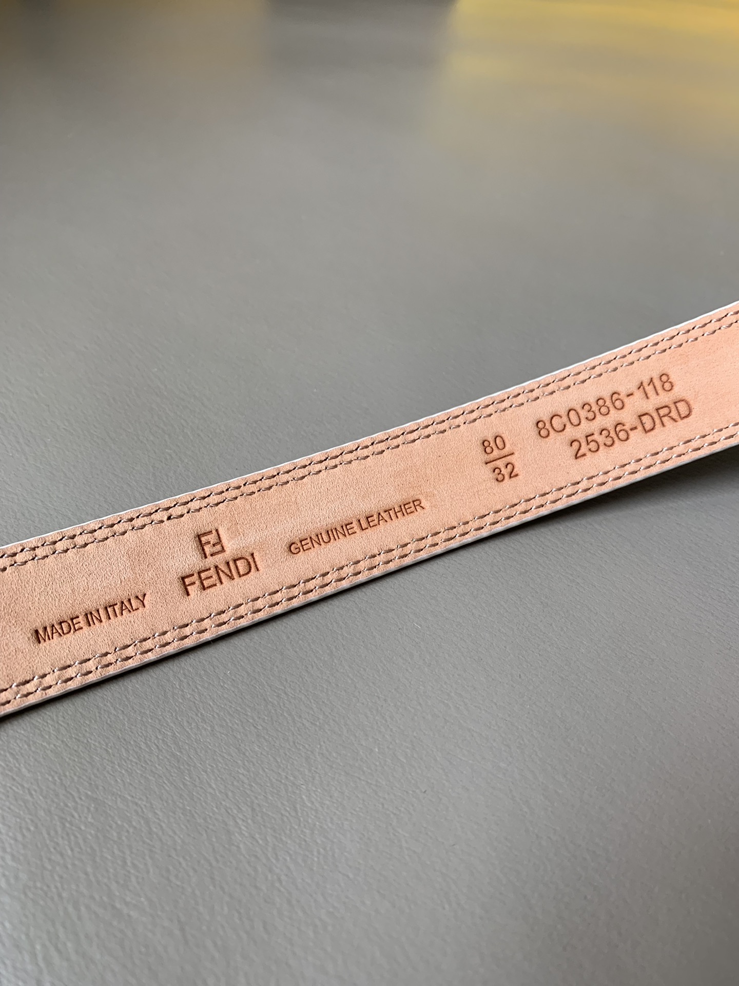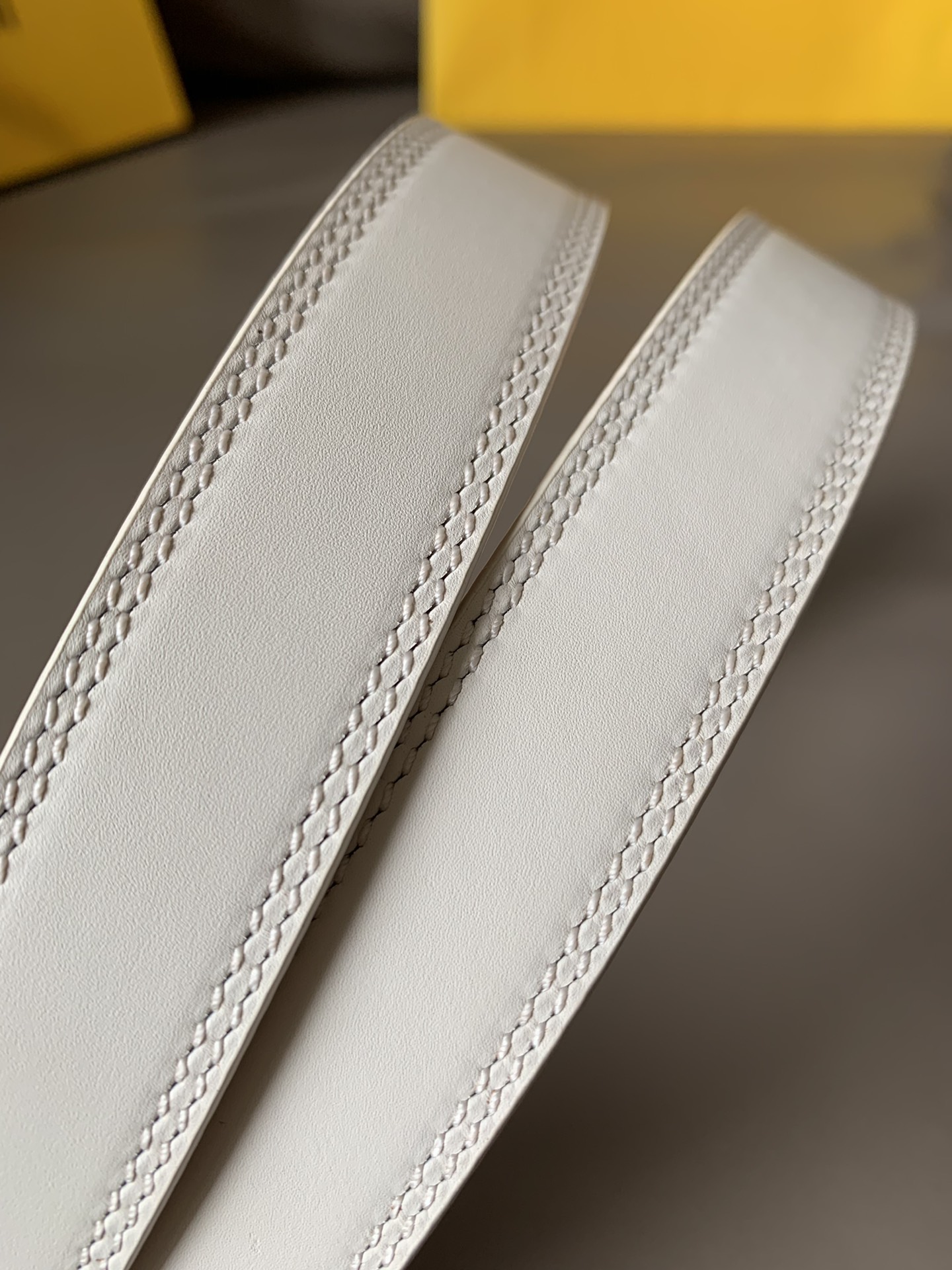Fendi counter new women’s high-end casual belt 2.4cm wide with smooth original calfskin. Lining nubuck cowhide double-line finish. Double F-shaped buckle. Fashionable, luxurious and versatile, original single quality.