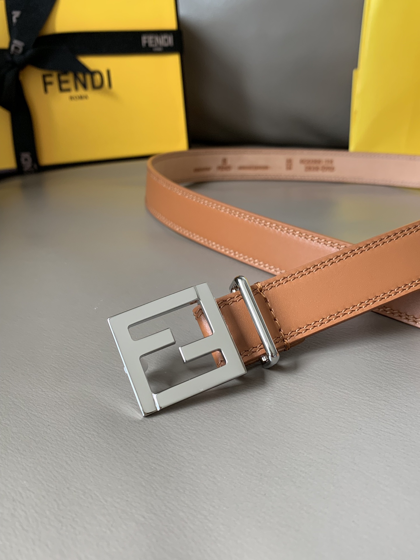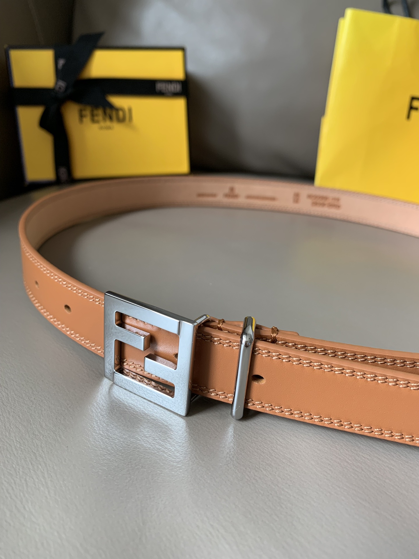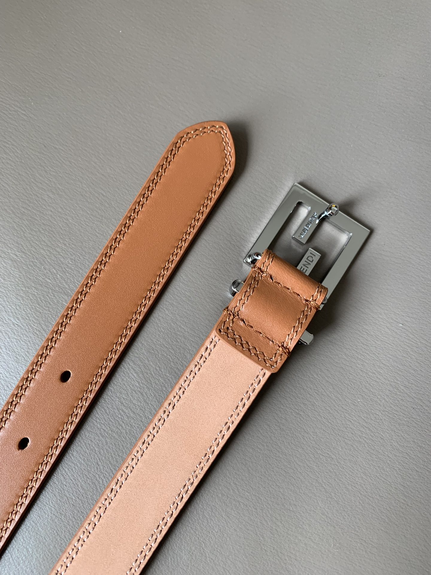 Fendi counter new women’s high-end casual belt. 2.4cm wide with smooth original calfskin. Lining nubuck cowhide double line finish. Double F shape buckle. Fashion, luxury and versatile, original single quality.