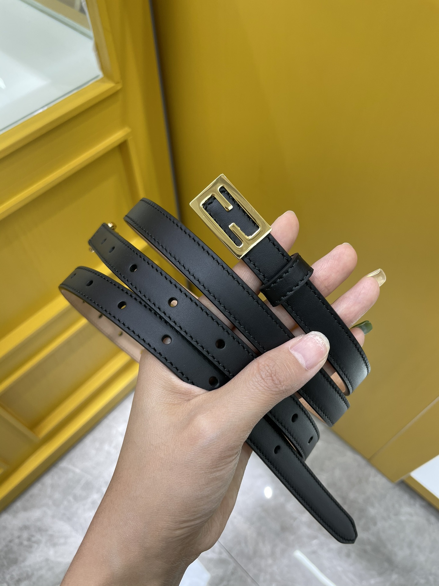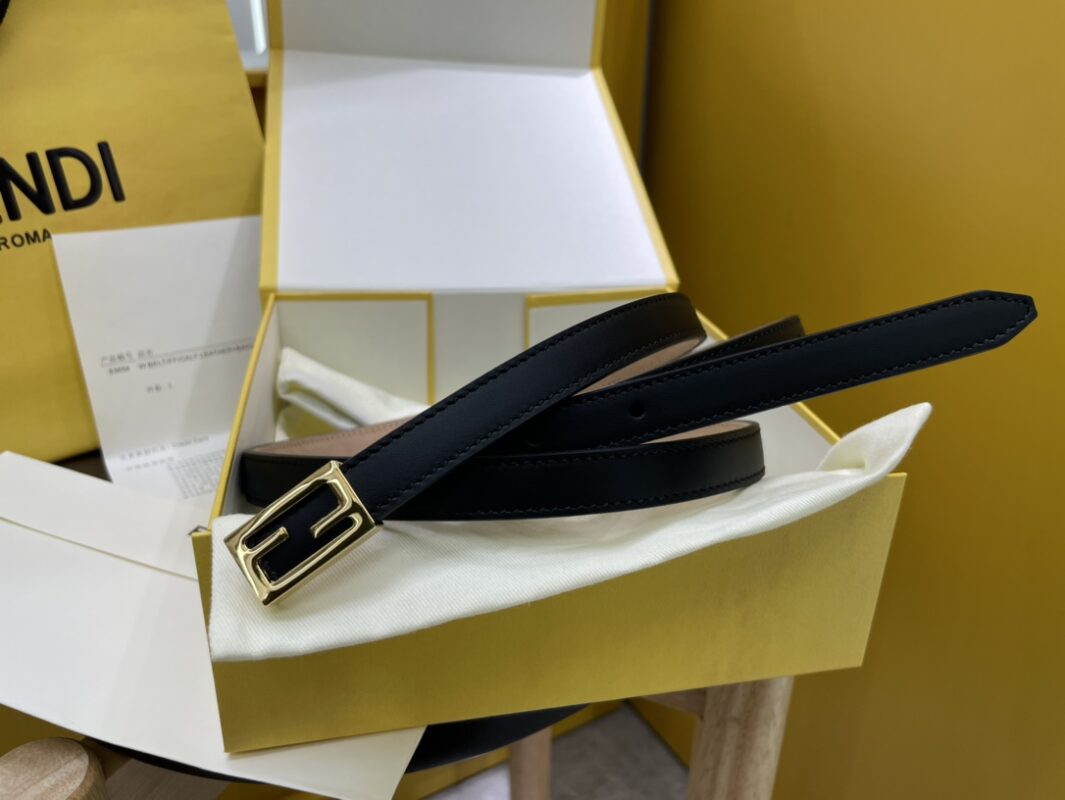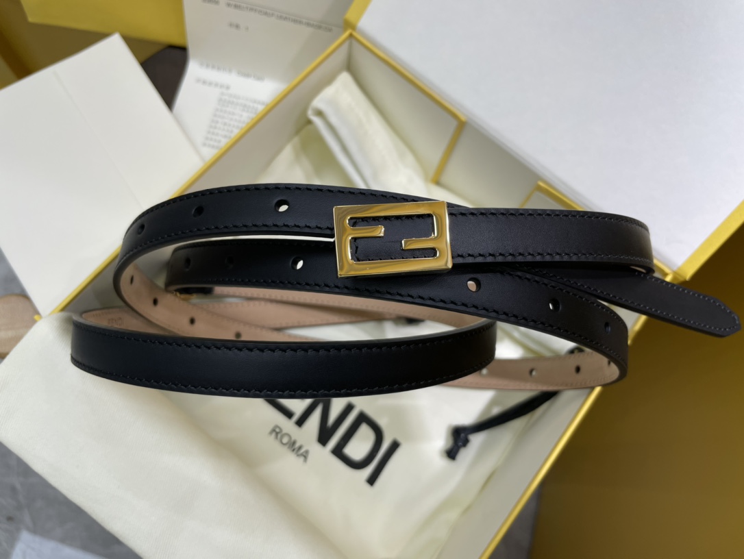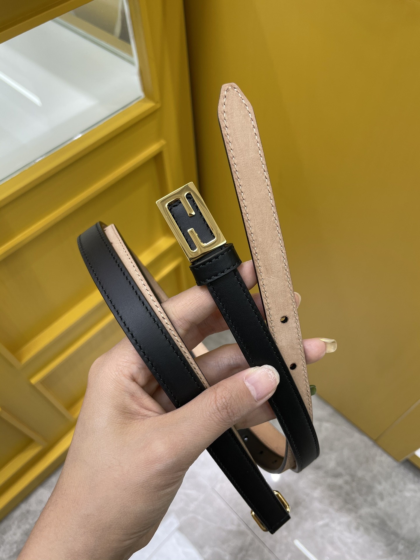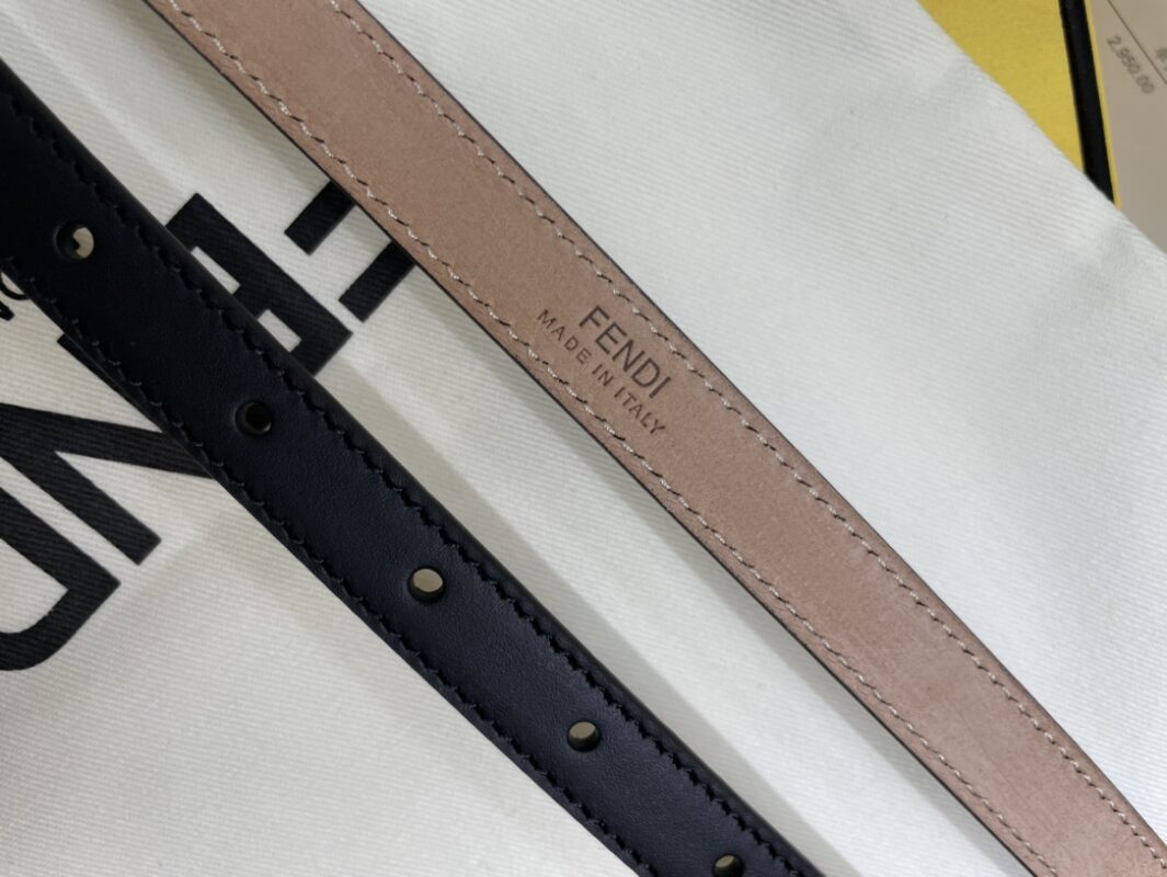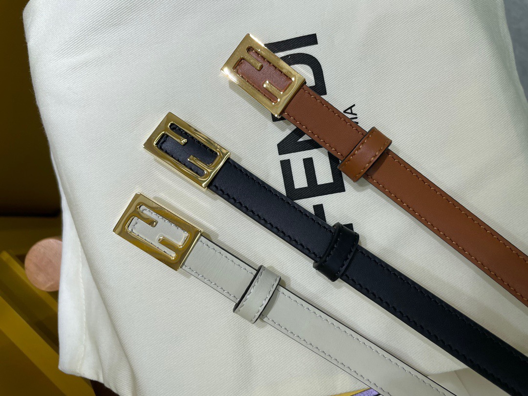 Fendi’s new women’s belt FF buckle double-layer thin belt . Italian YC calfskin tree cream leather bottom leather. 1.5cm 32086650