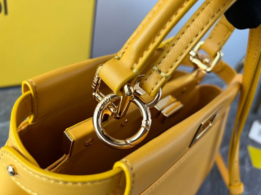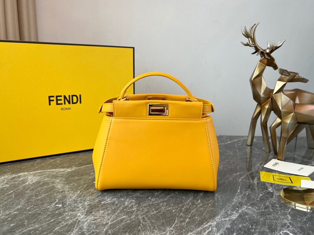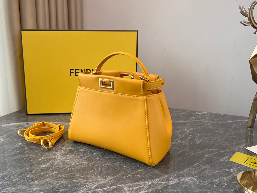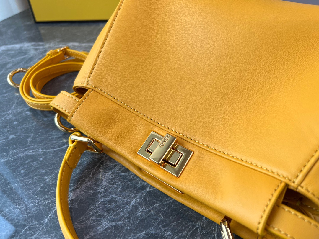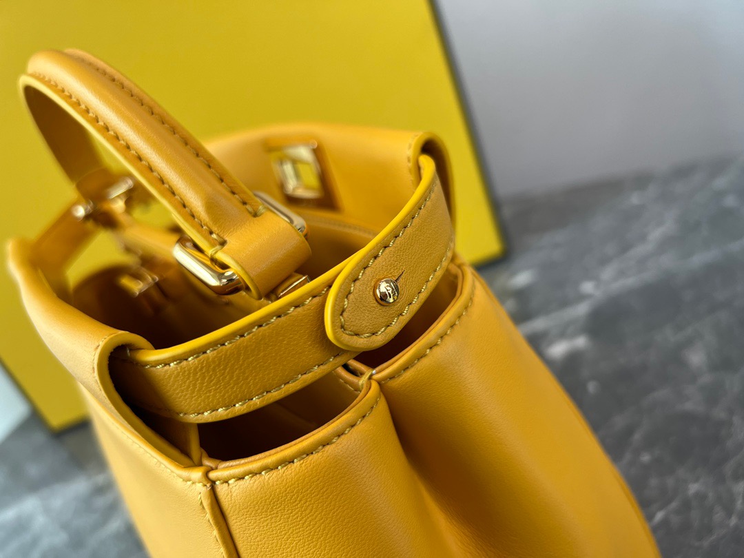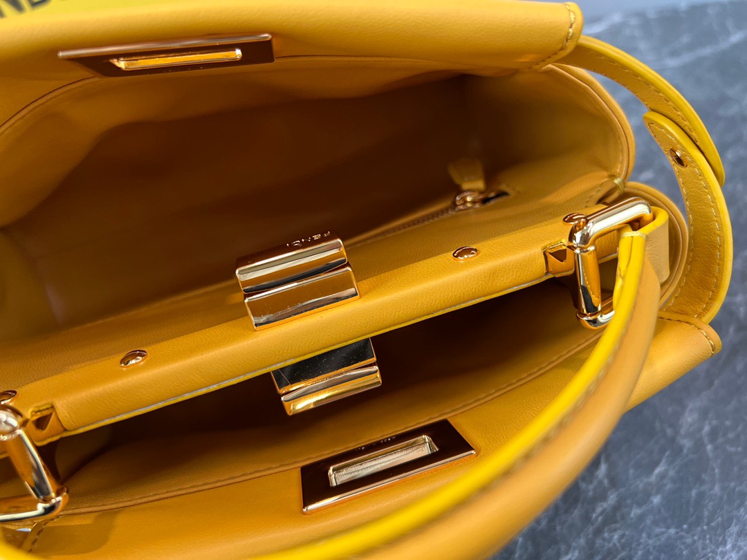 Fendi Peekaboo Yellow Silver Buckle BagSpanish lambskin, delicate and soft to the touch, simple and elegant in design. Exquisite in craftsmanship, every little detail can let you appreciate our insistence on quality. Size: 23cm