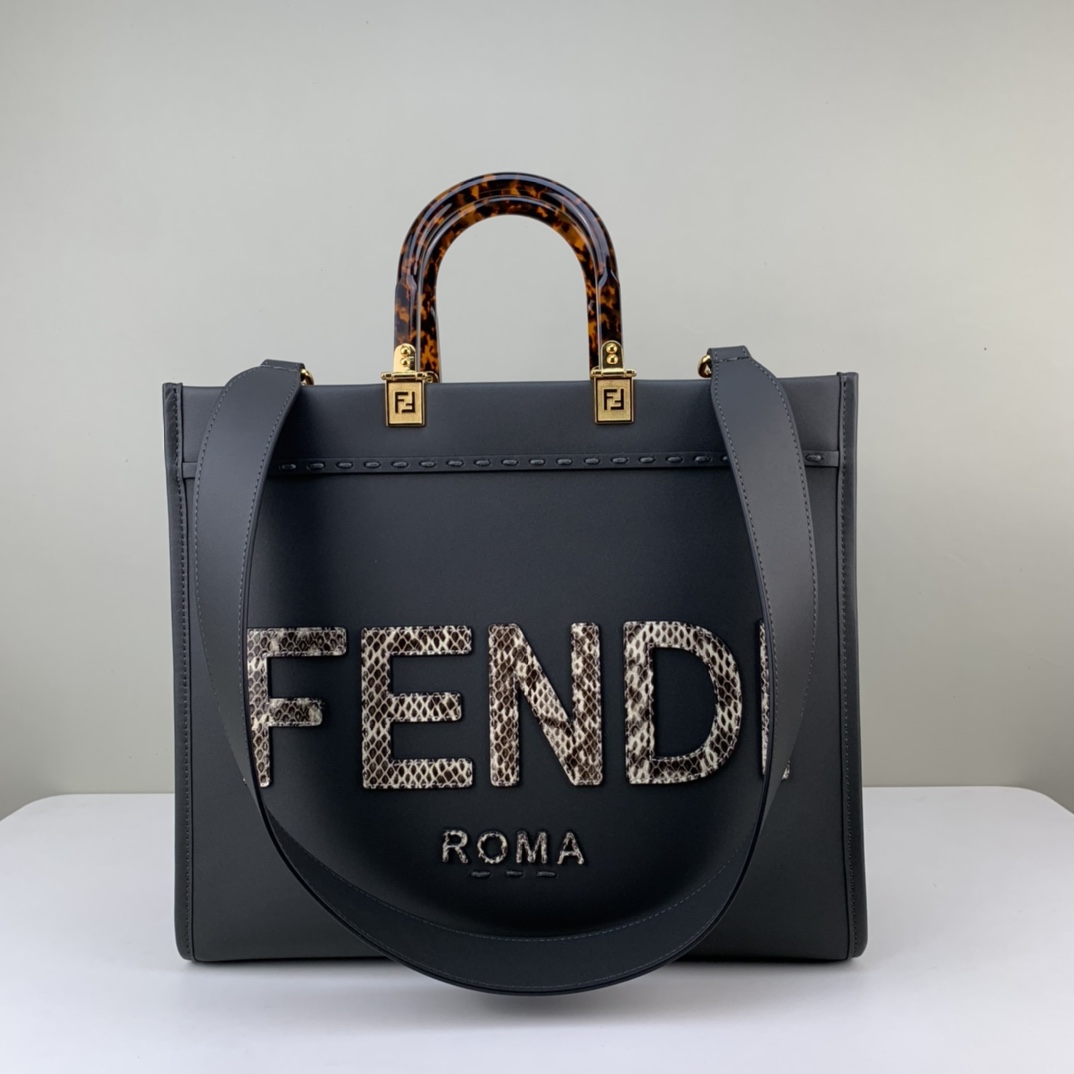 Fendi Sunshine Premium Grey Leather & Snakeskin Tote Bag Tortoiseshell Handle. Fashionable and simple. Style number 2264 Dimensions 35x31x16
