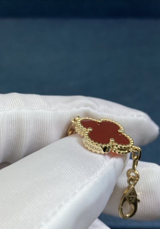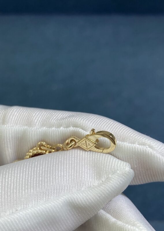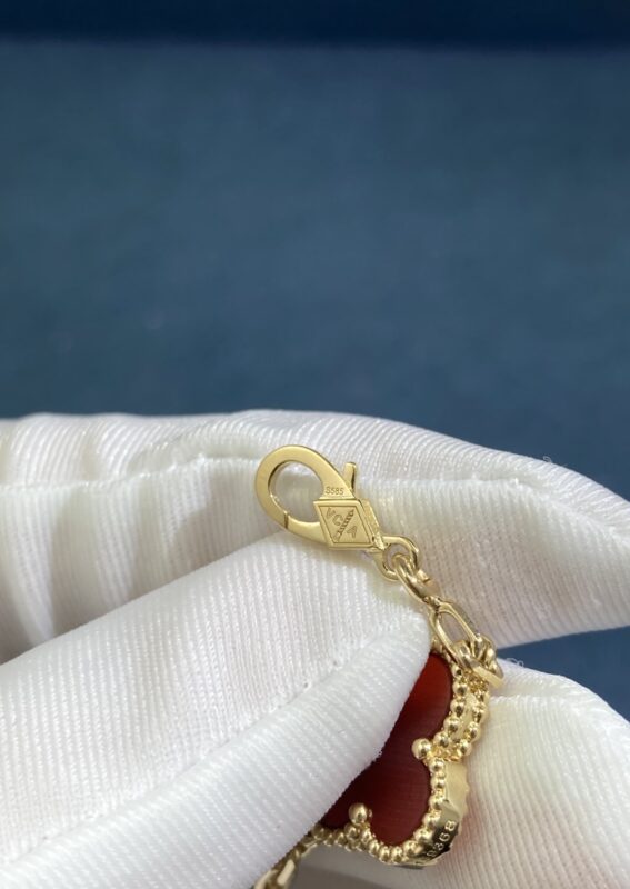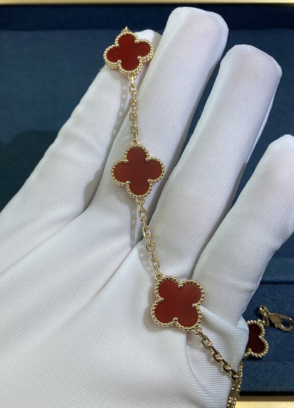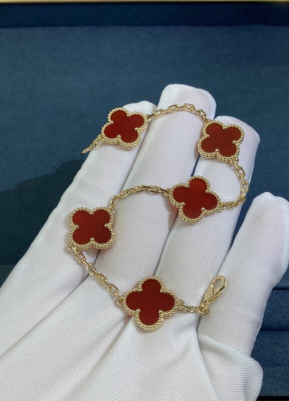 Five-Floral Carnelian Four-Leaf Clover Bracelet, Yellow Gold |