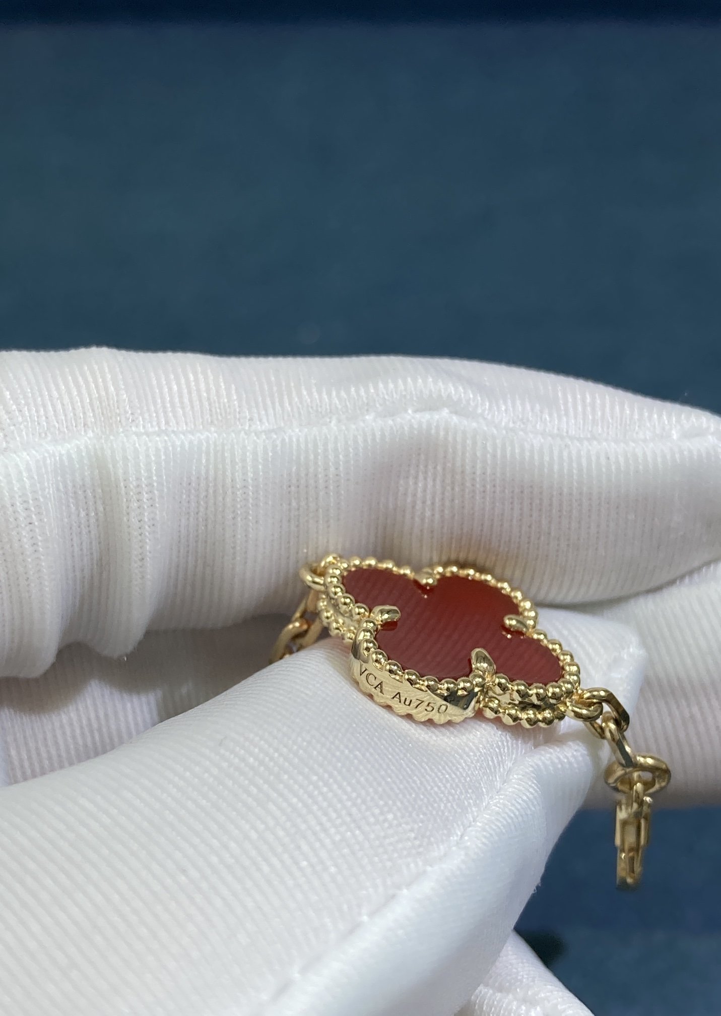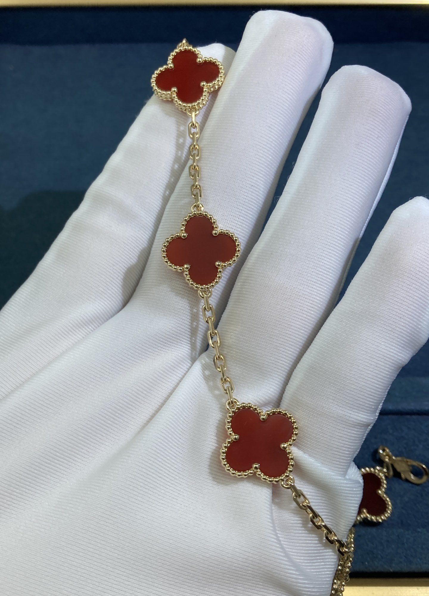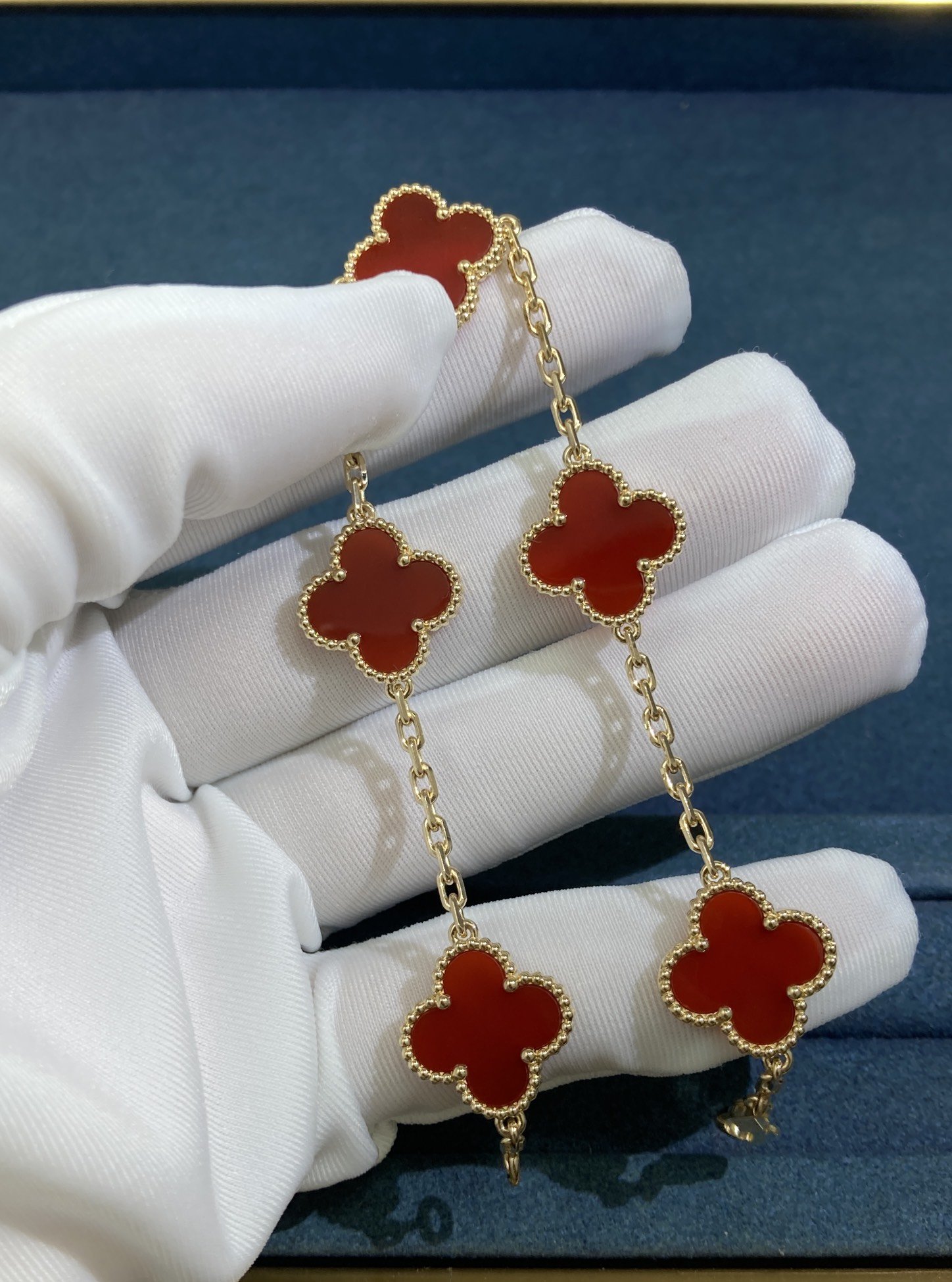 Five-Floral Carnelian Four-Leaf Clover Bracelet, Yellow Gold |