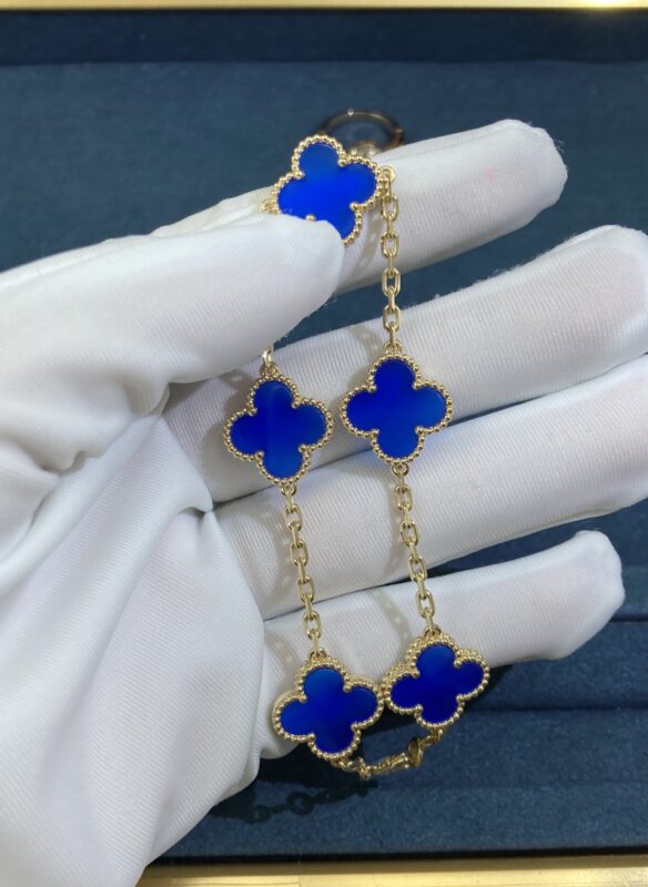 VCA Five-Flower Blue Chalcedony Four-Leaf Clover Bracelet, Yellow Gold |