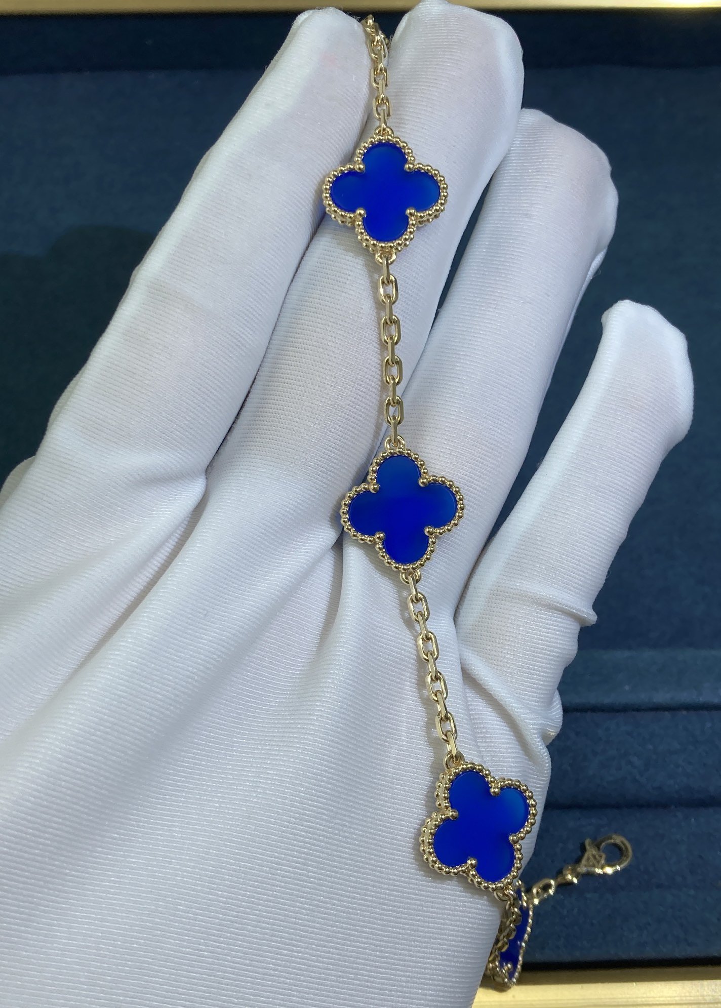 VCA Five-Flower Blue Chalcedony Four-Leaf Clover Bracelet, Yellow Gold |