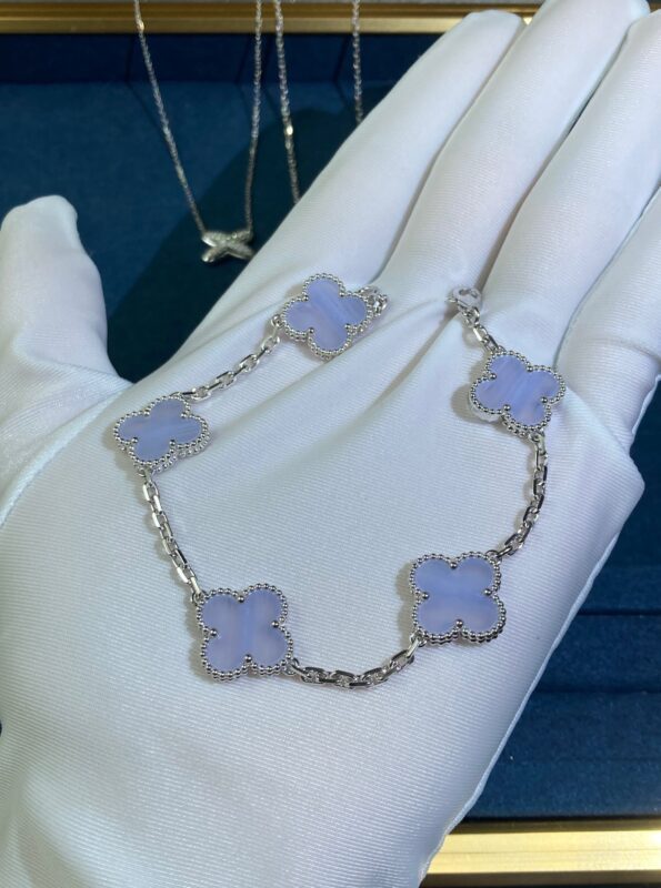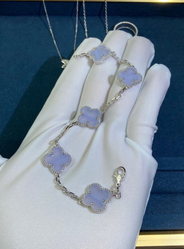 Five-Flower Purple Chalcedony Four-Leaf Clover Bracelet, White Gold |