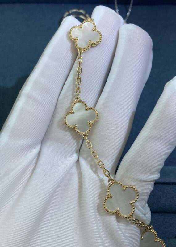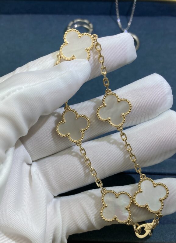 VCA Five-Flower Shell Clover Bracelet, Yellow Gold