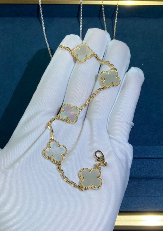Five-Flower Shell Clover Bracelet, Yellow Gold