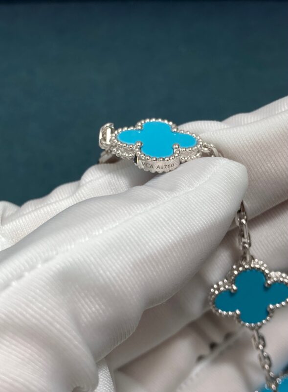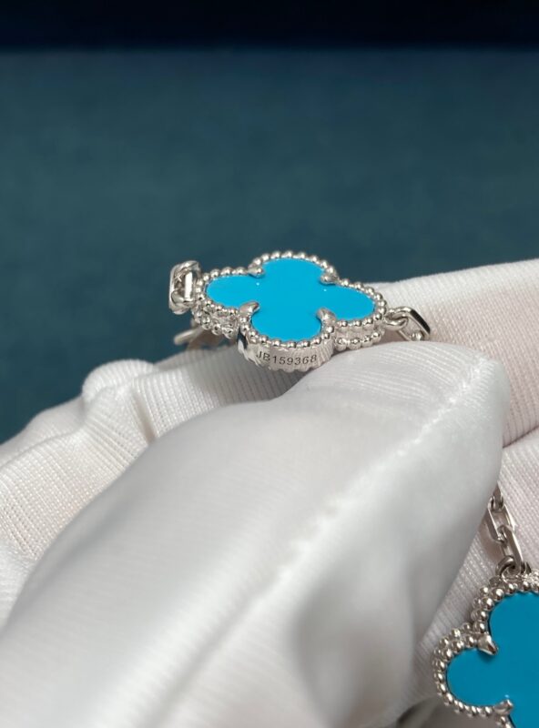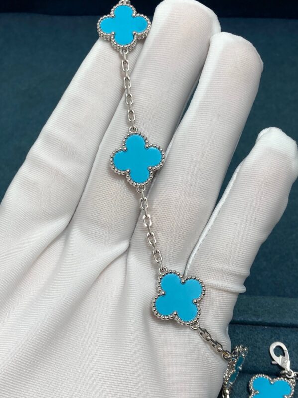 Van Cleef&Arpel Alhambra Five-Flower Turquoise Clover Bracelet, White Gold |