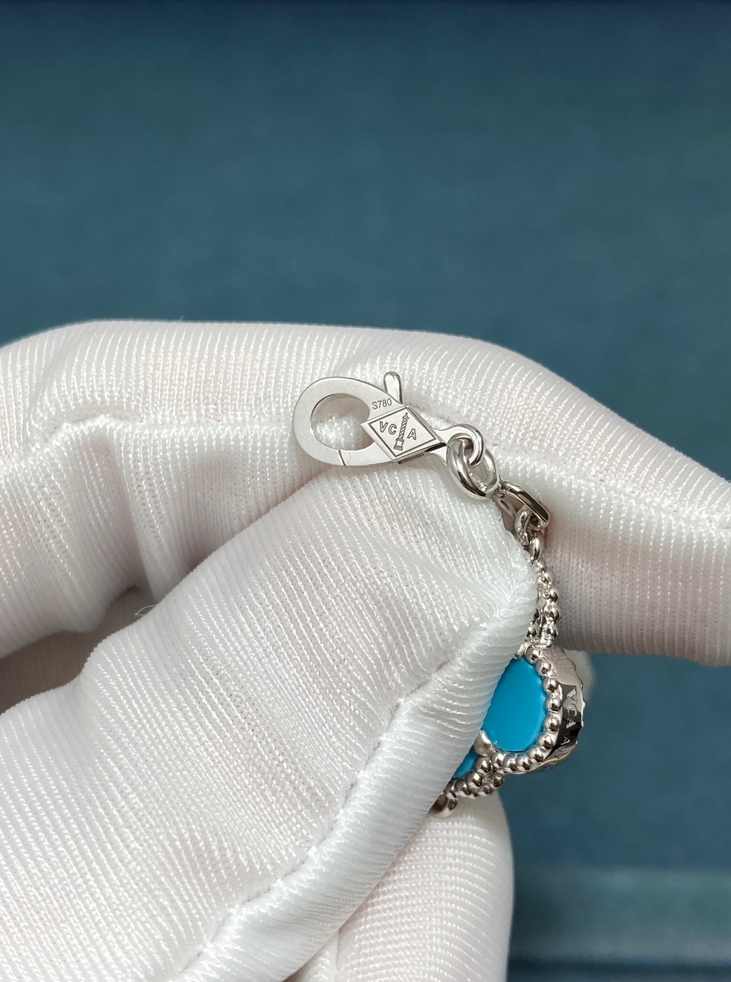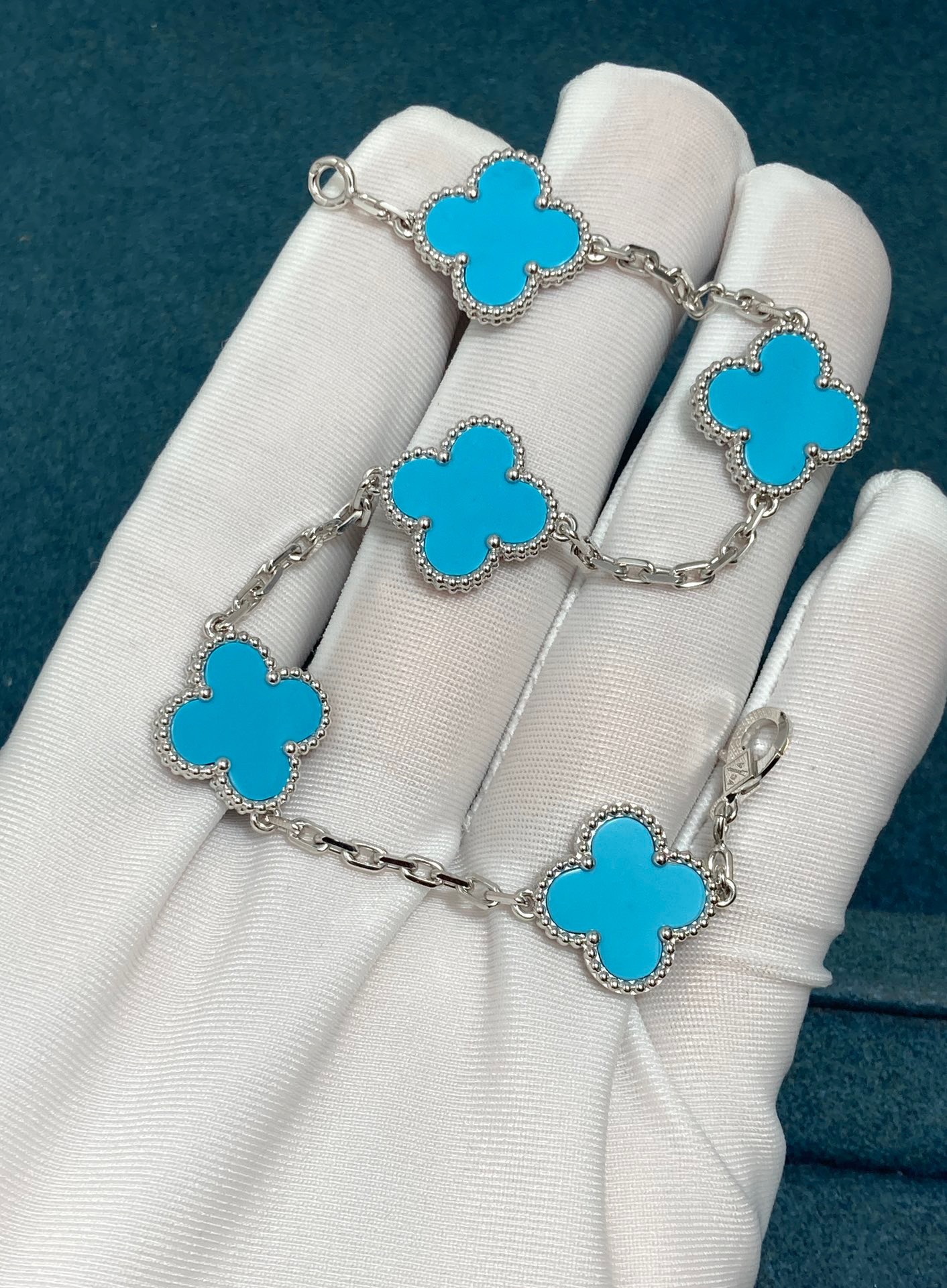 Van Cleef&Arpel Alhambra Five-Flower Turquoise Clover Bracelet, White Gold |