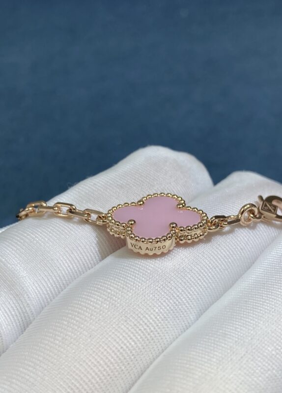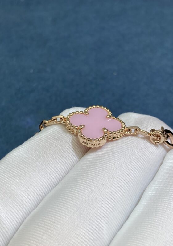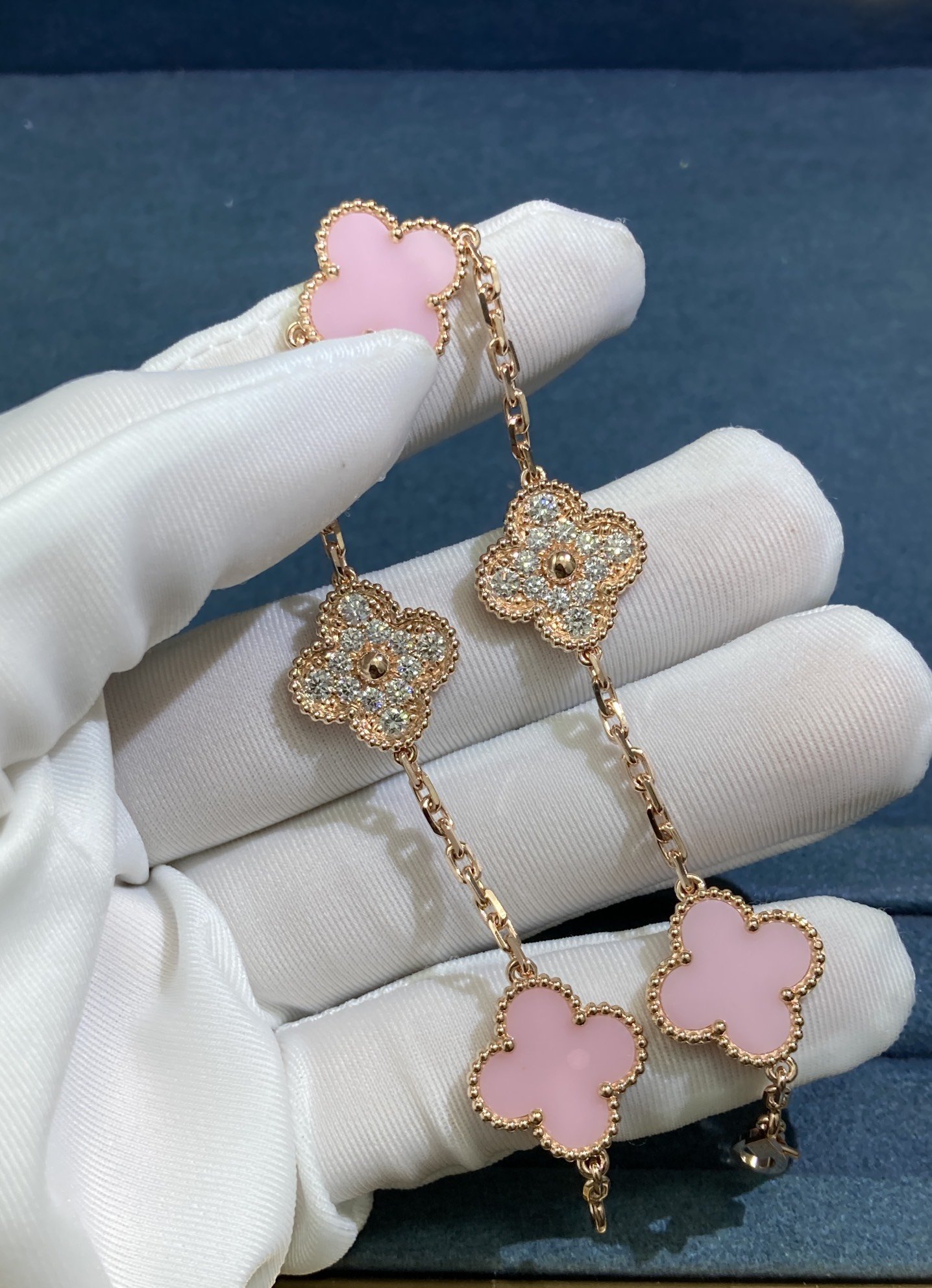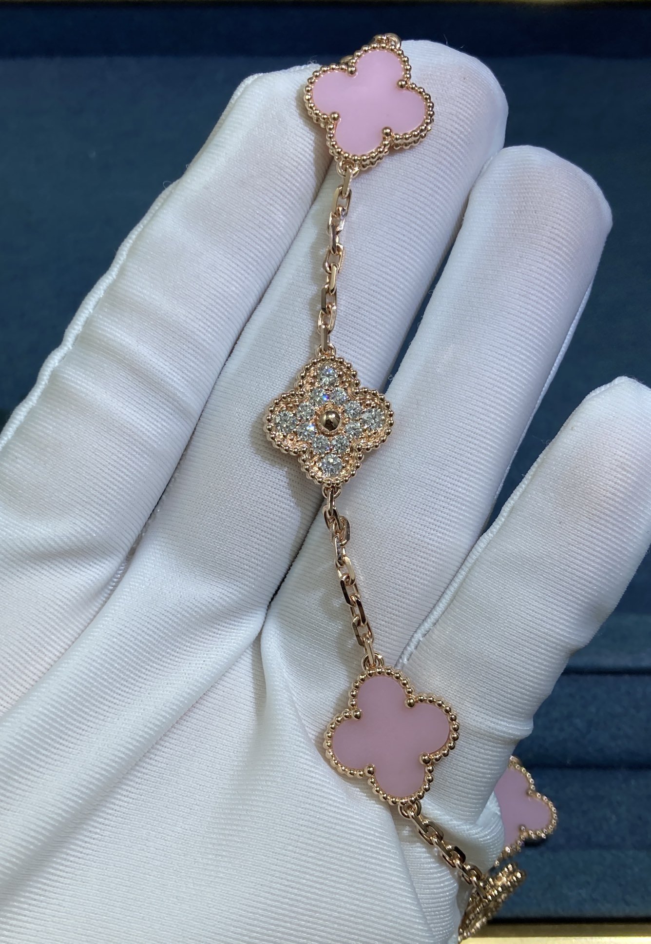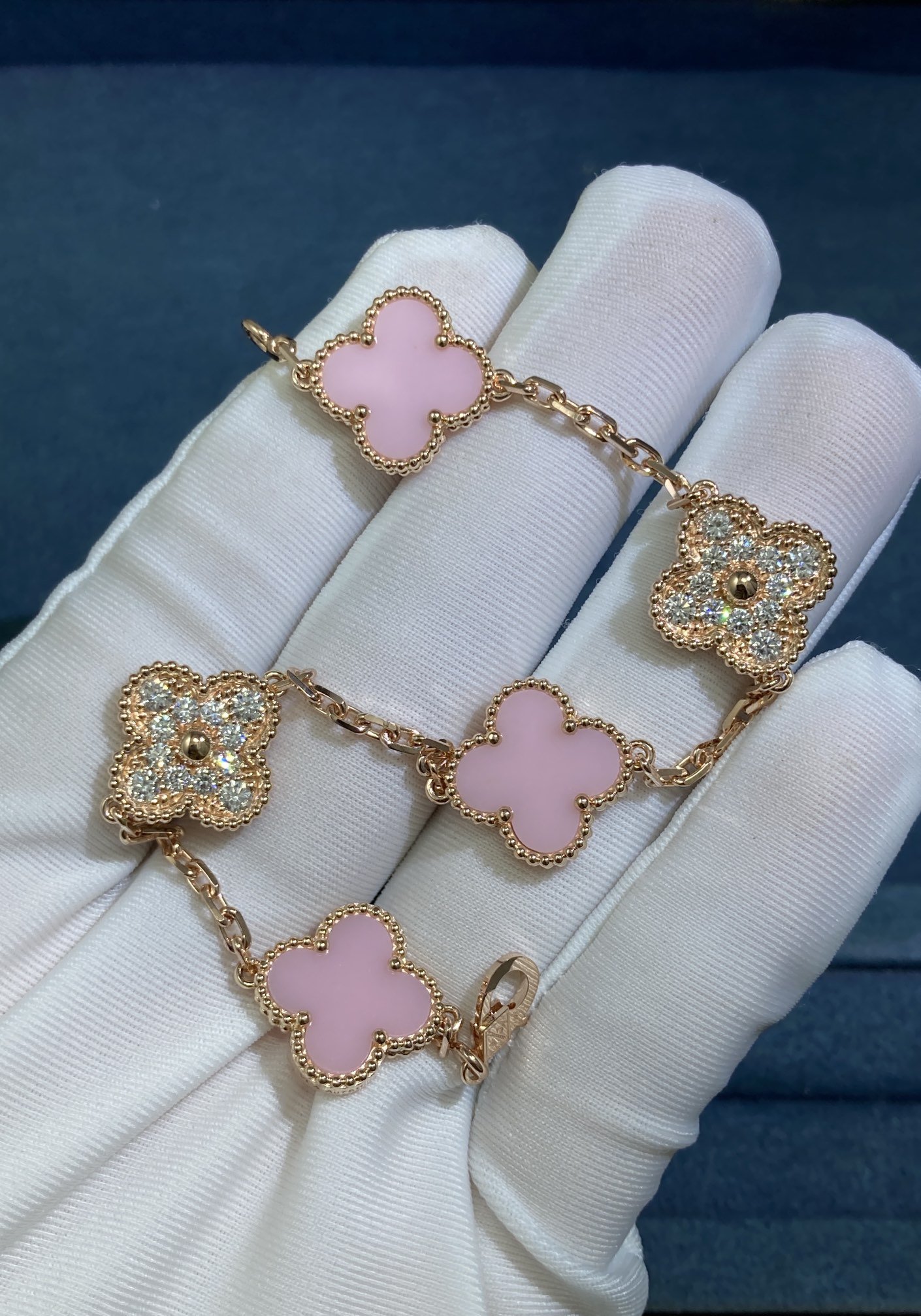 VCA Five pollen four-leaf clover bracelet with diamonds in ceramic, rose gold