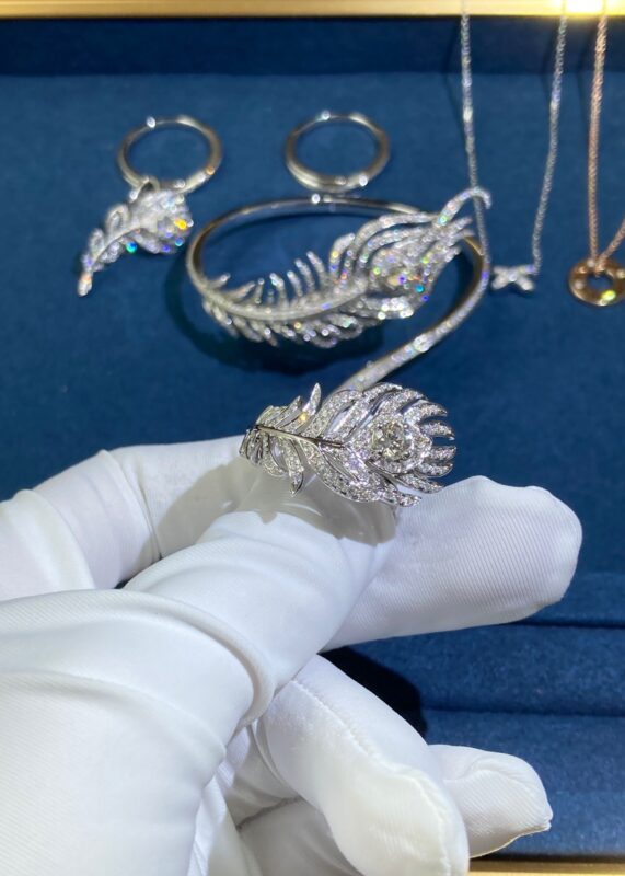 All of the pieces of jewelry are a masterpiece of art made from the finest materials such as 18k gold, diamonds, pearls, emeralds, sapphires, and rubies. Their design is meticulously crafted, with attention paid to even the slightest of details. Such pieces of jewelry are breathtakingly beautiful and radiate elegance and sophistication.