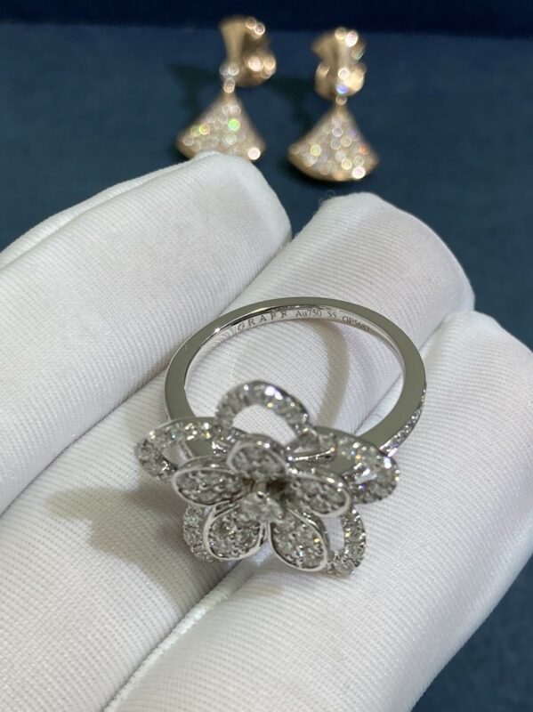 The metal used in pieces of jewelry are often a lustrous yellow or white gold, which is expertly polished to a mirror-like finish. The precious stones are carefully selected by our masters and set in a precise manner, showing off their color, clarity, and brilliance to their full potential.