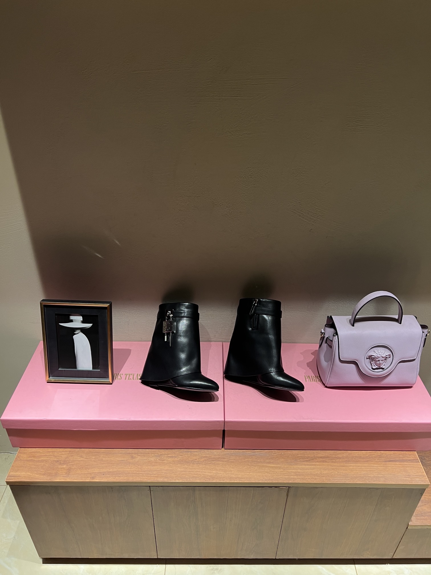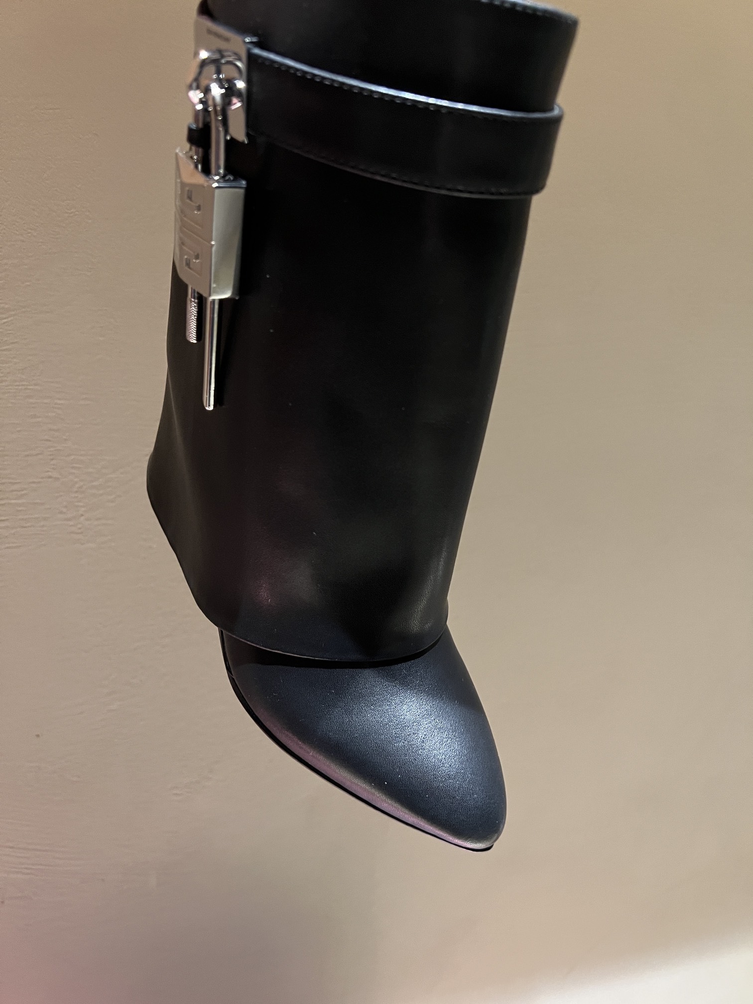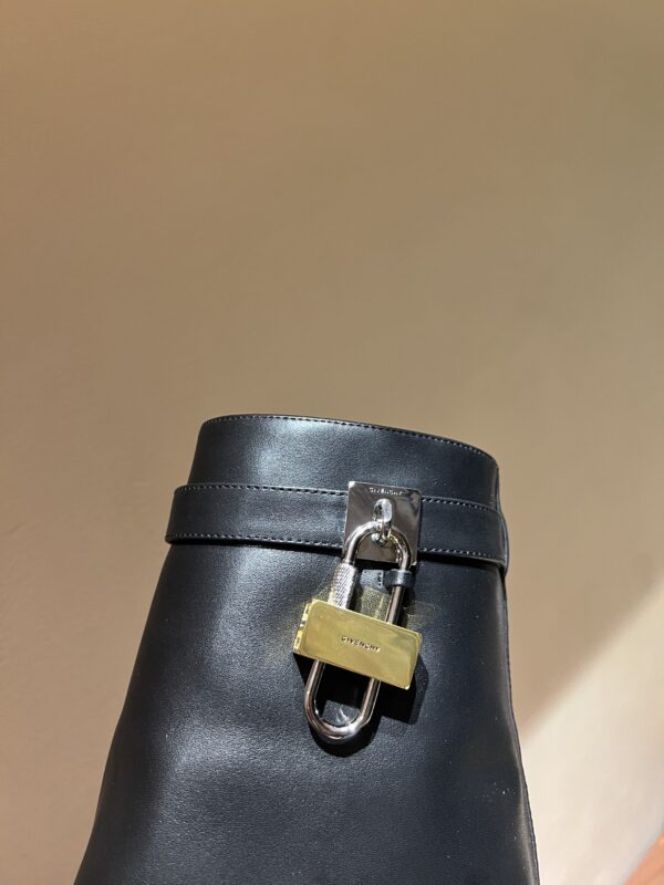 The highest version shipped GIVENCHY Givenchy new fashion boots shiny leather boots The trouser leg boots that are popular in the fashion circle are none other than Givenchy The classic version has been upgraded again and again Developed 1:1 from the original with leather straps on the legs Silver and gold-tone finish on side with metal buckle Asymmetric 4G LOGO Metal Padlock almond toe Covered Wedge 9.5cm ❶Material: Cowhide ❷Lining: Sheep leather ❸Number of yards: 35~39 (40 custom-made non-refundable) ❹Packaging: Givenchy full set of original packaging