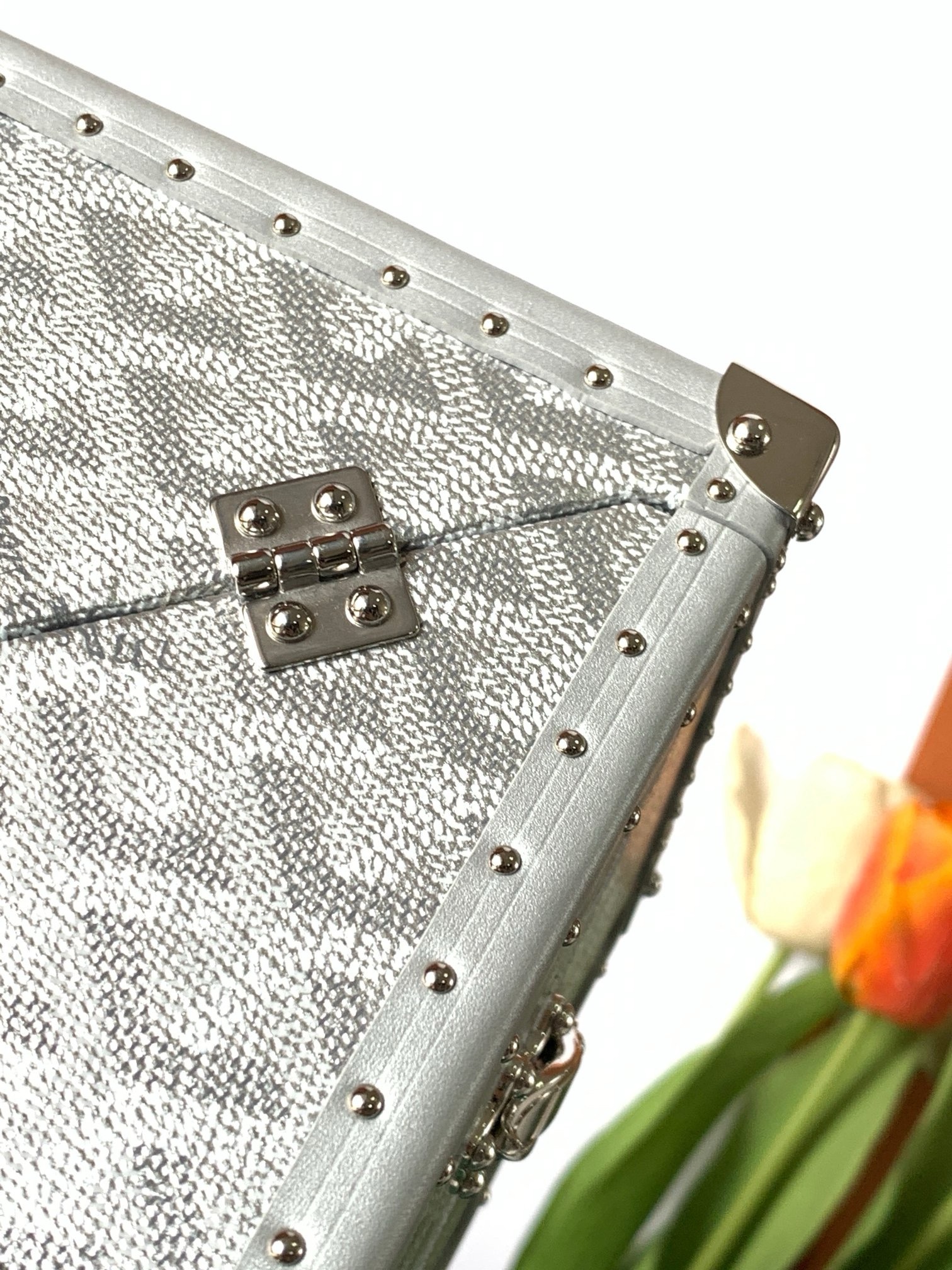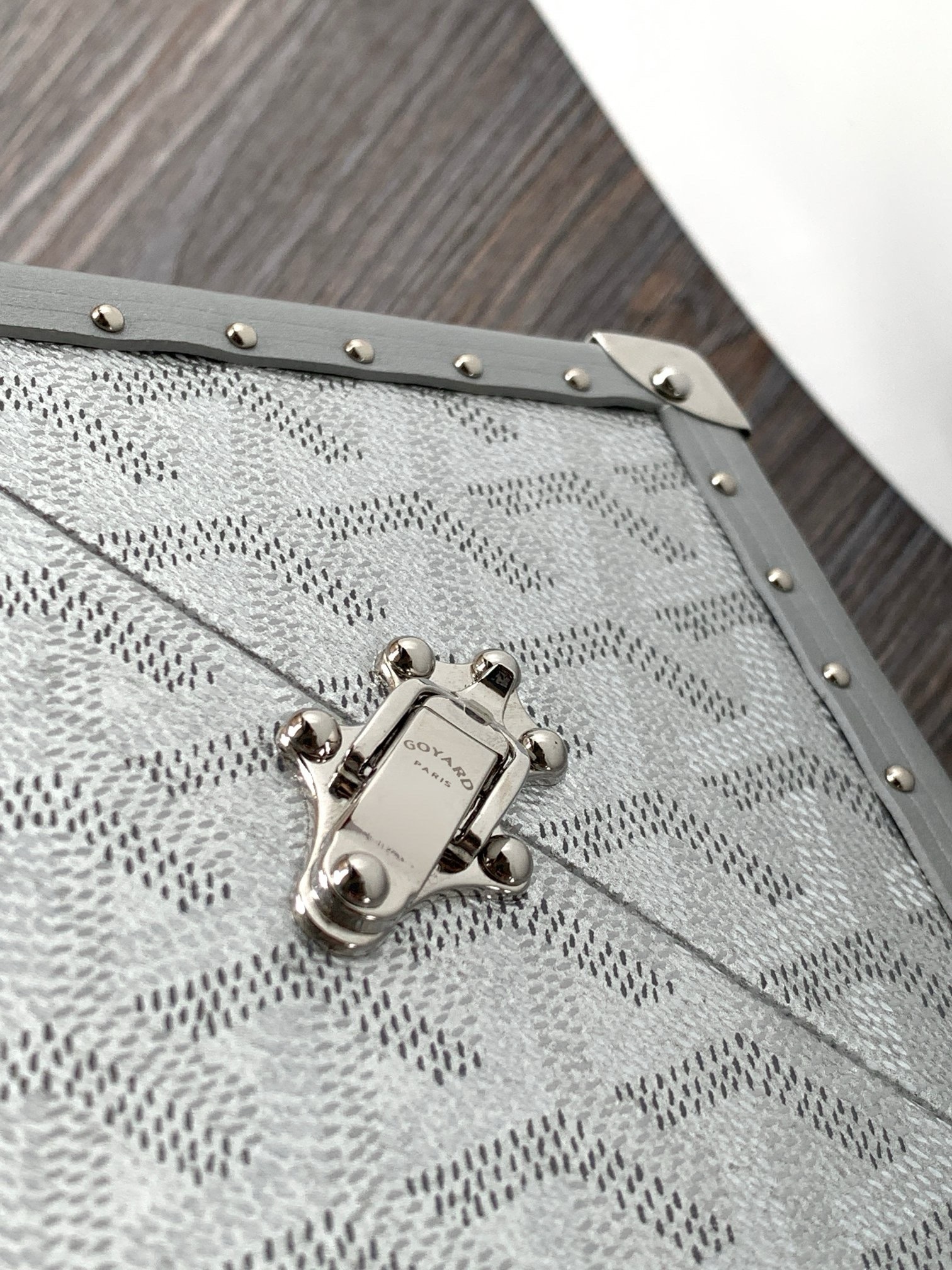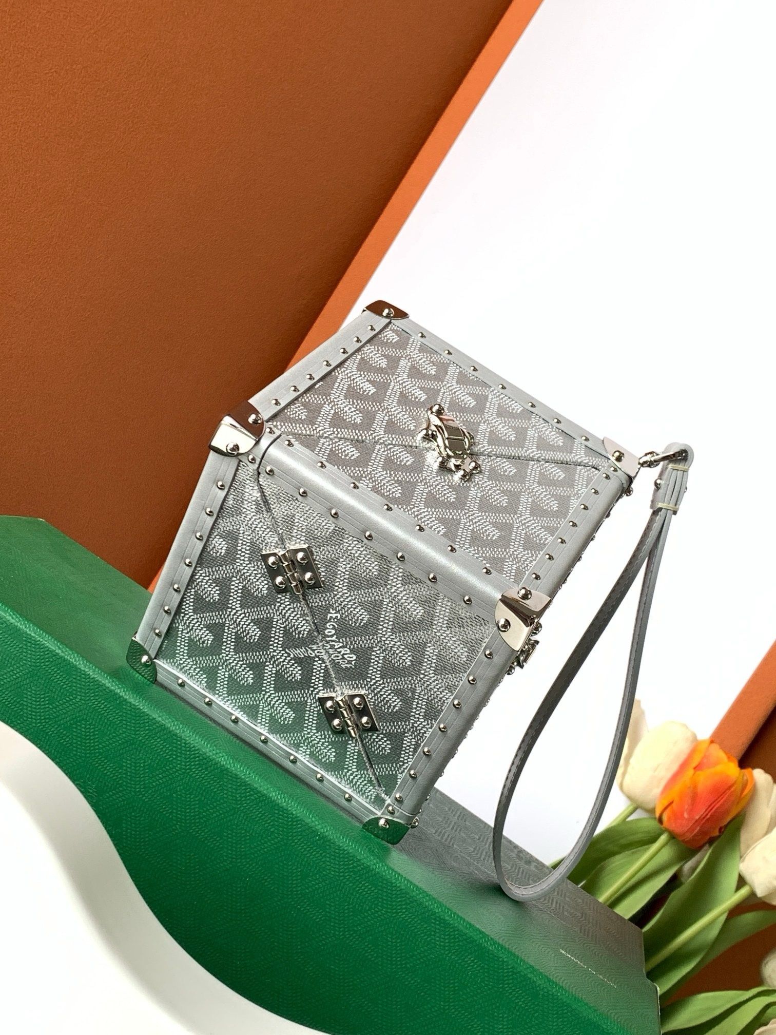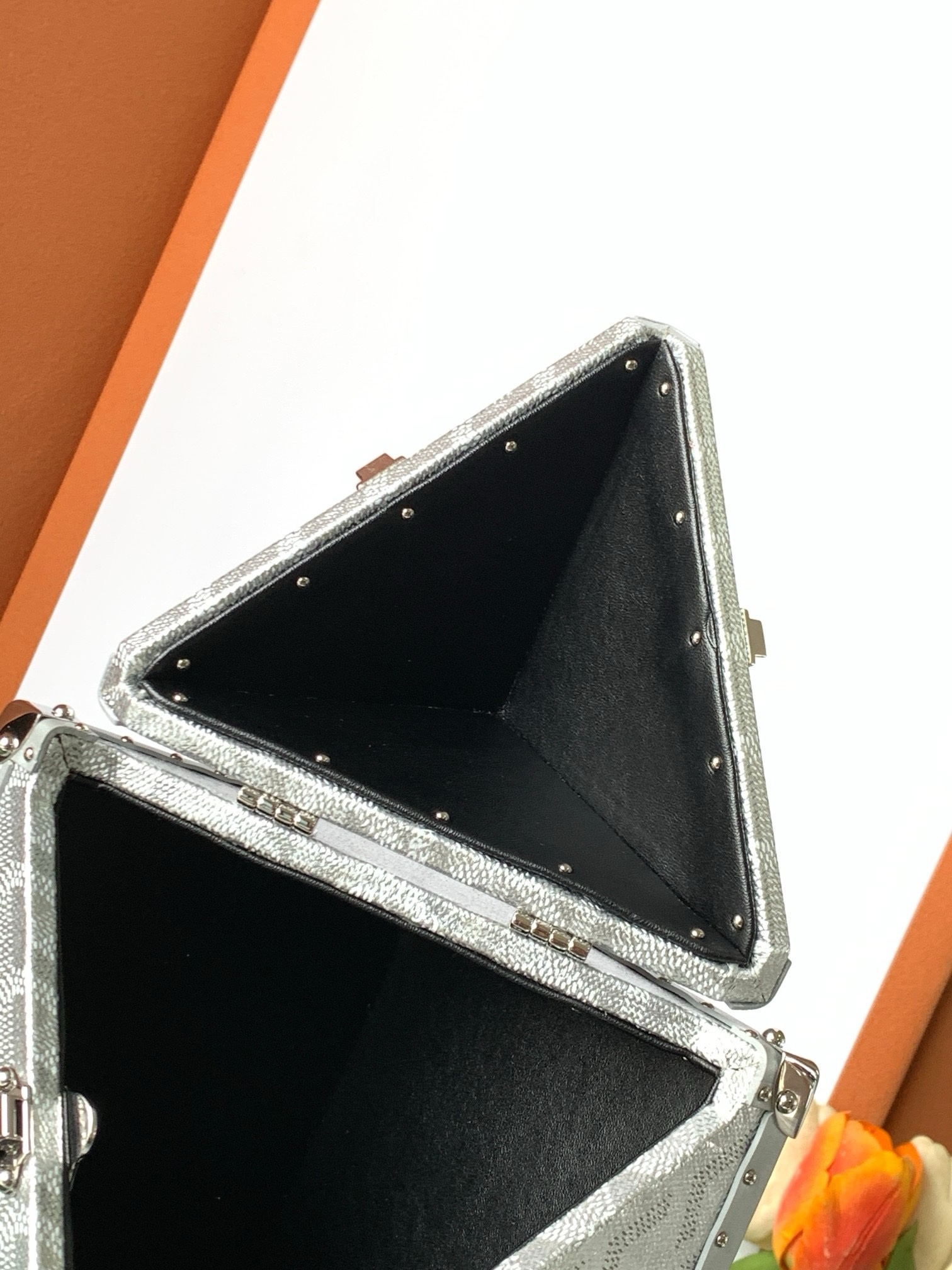 DE bags are named for their cubic shape. When carried, the DE bags’ leather LOZINES form a Y shape, paying homage to the iconic Y pattern of our GOYARDINE canvas.