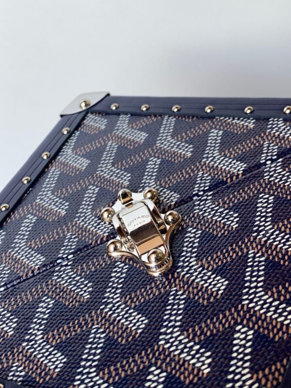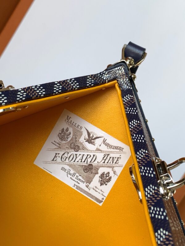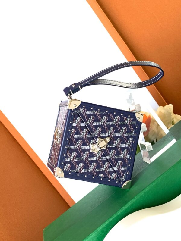 DE bags are named for their cubic shape. When carried, the DE bags’ leather LOZINES form a Y shape, paying homage to the iconic Y pattern of our GOYARDINE canvas.