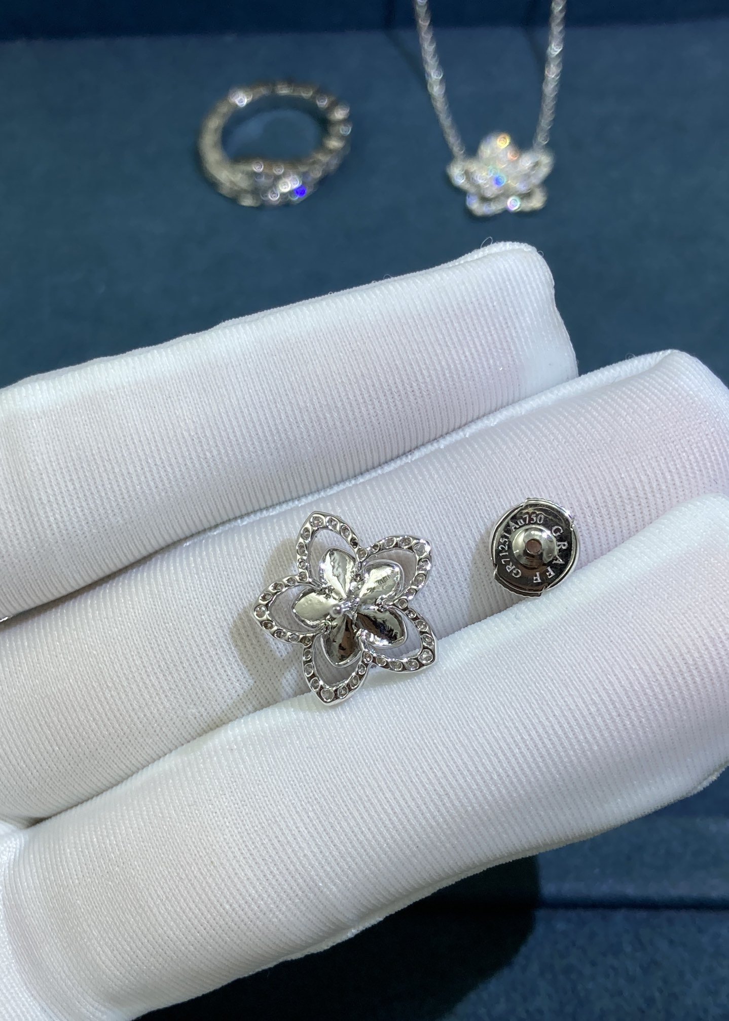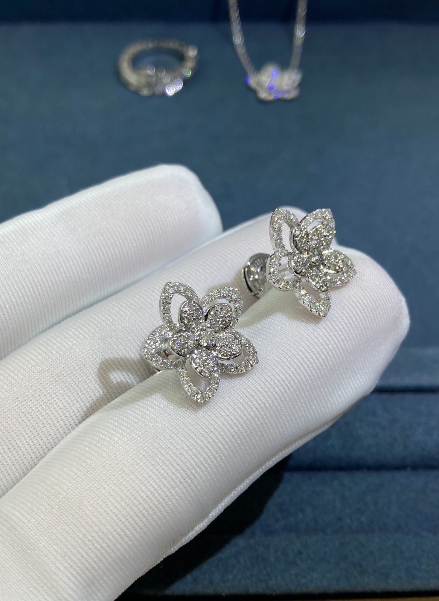 The metal used in pieces of jewelry are often a lustrous yellow or white gold, which is expertly polished to a mirror-like finish. The precious stones are carefully selected by our masters and set in a precise manner, showing off their color, clarity, and brilliance to their full potential.