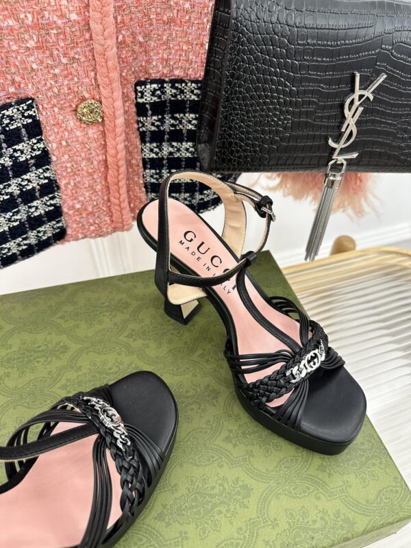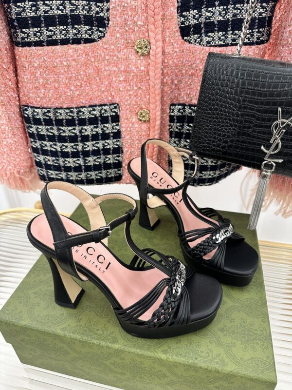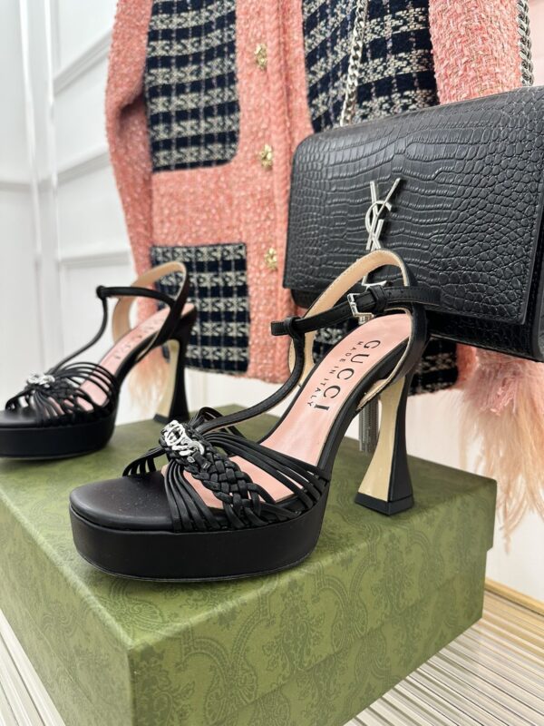 Gucci 2023 New High-heels Sandals Upper: Imported calf patent leather Lining: Hybrid Sheepskin Heel height: 11cm Sole: Italian imported cowhide outsole Size: 35-39