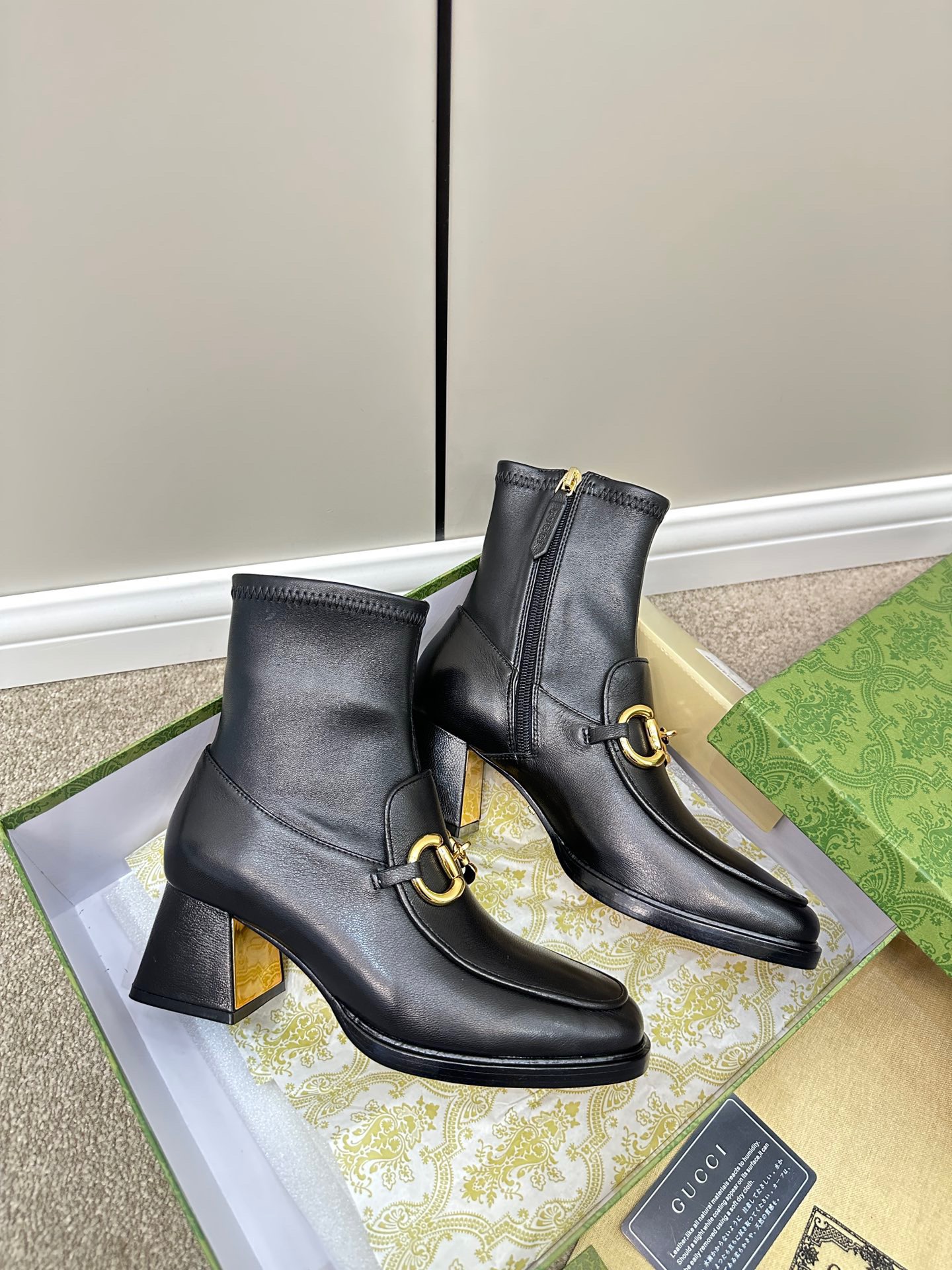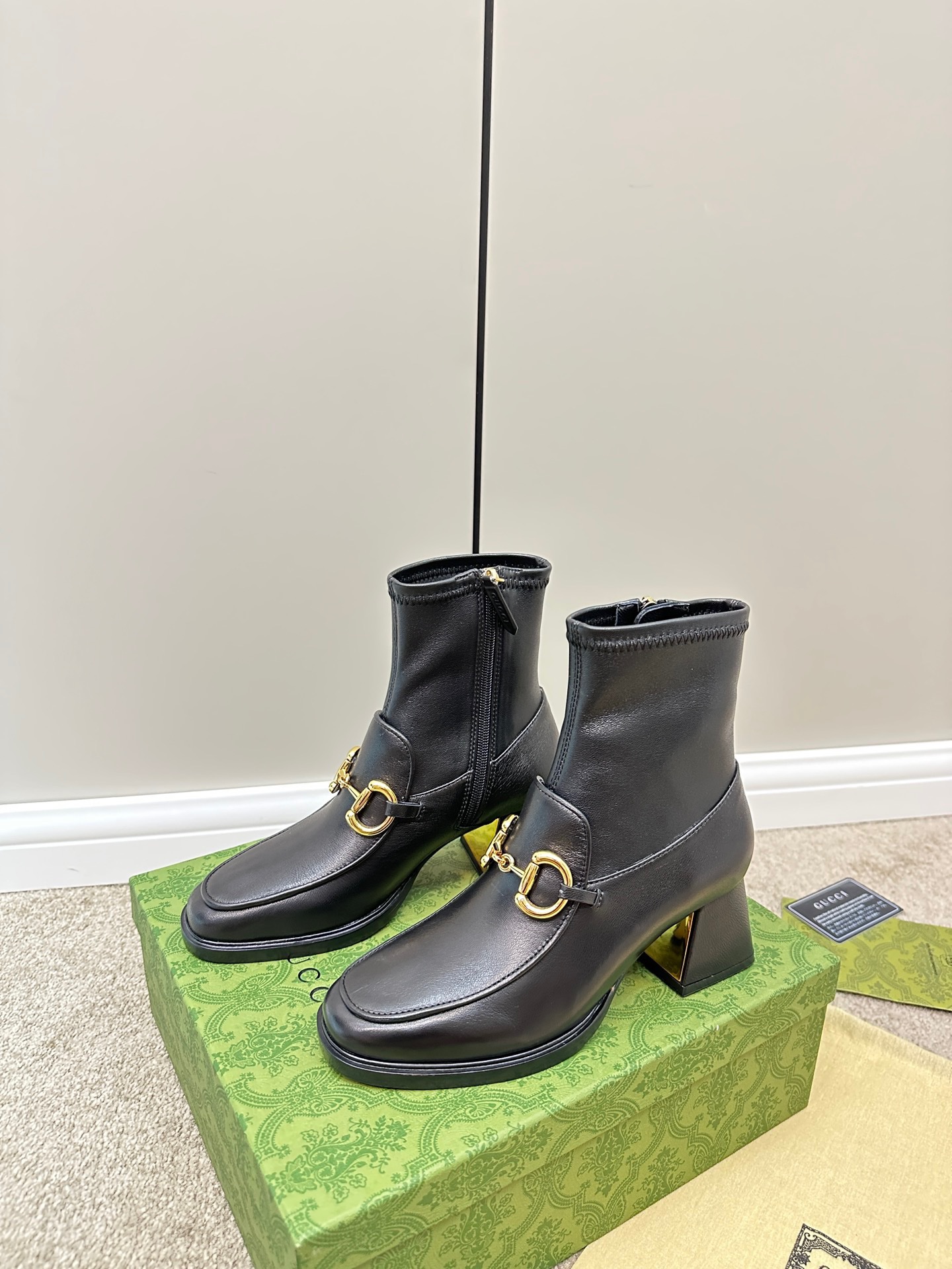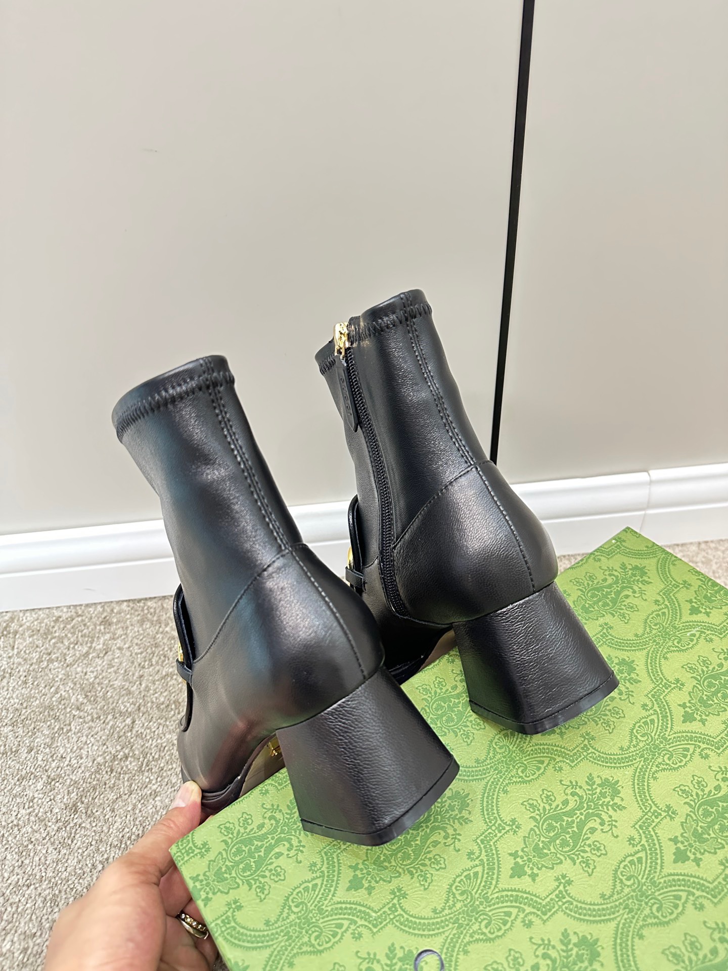 Gucci Stretch sheepskin short boots, the side zipper design of the boots is easy to put on and take off, and the upper foot is wrapped very well! The elastic sheepskin of the boot fits very well!