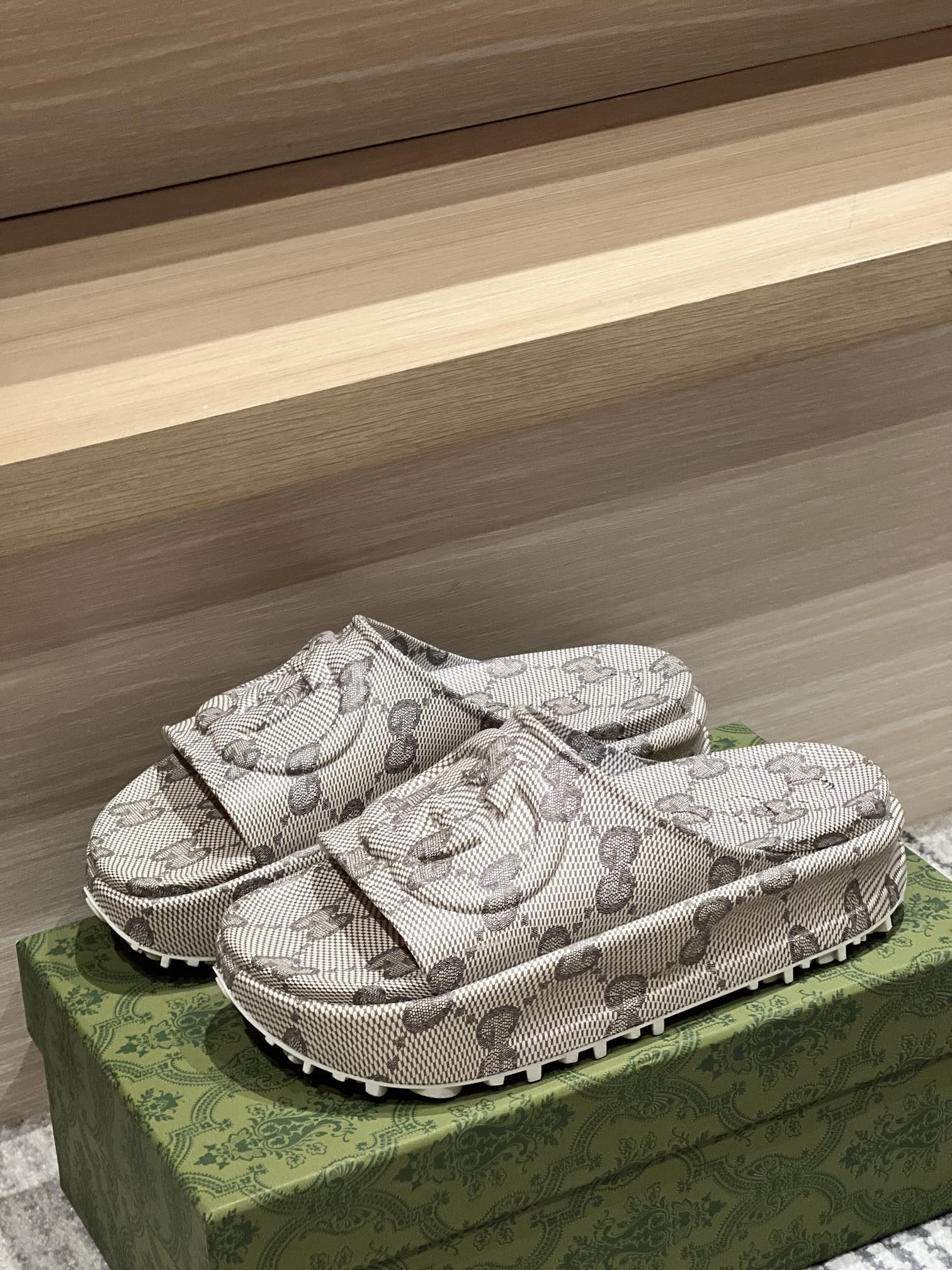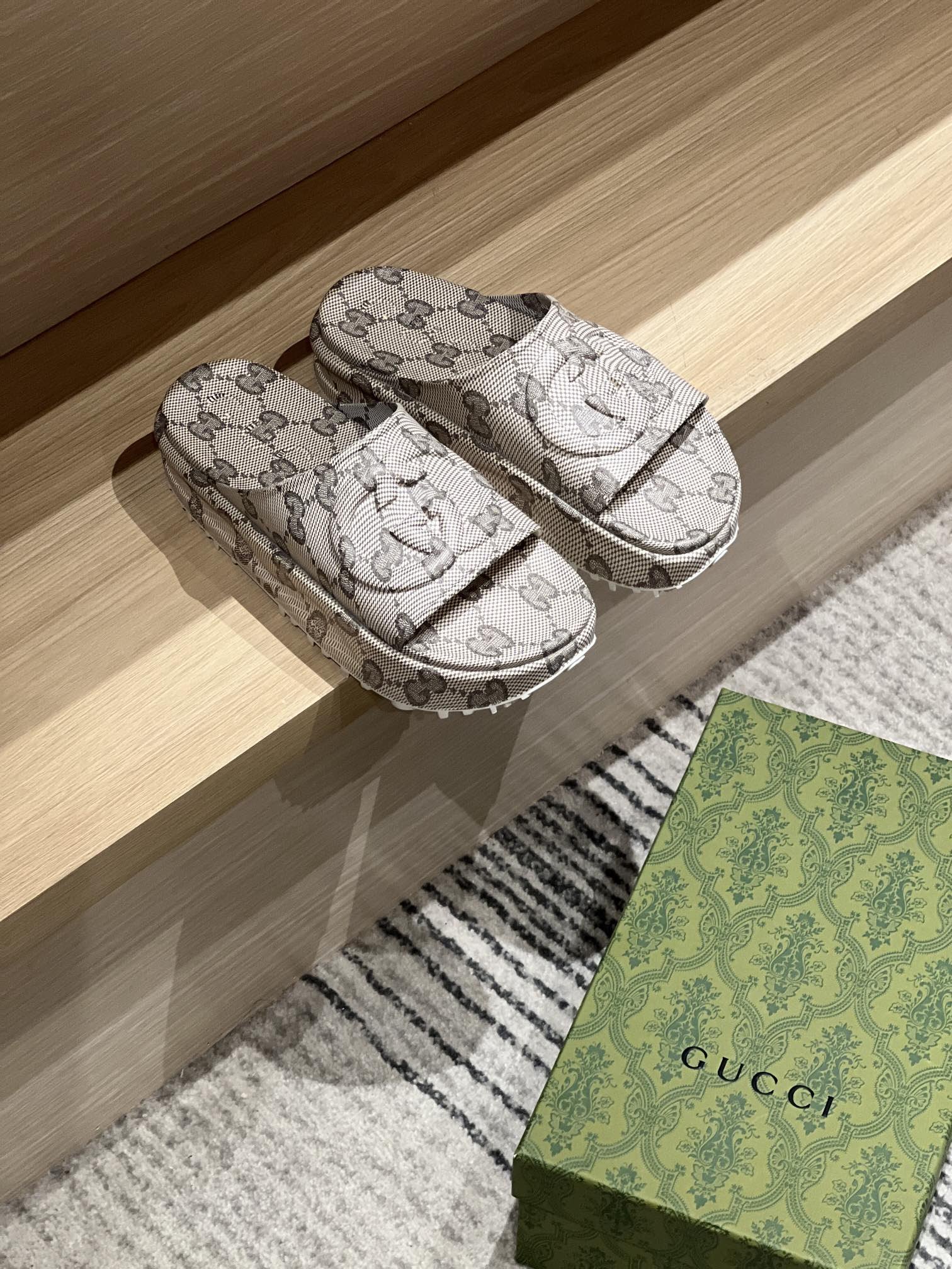 Gucci 2023 New Thick-soled Sandals TPU fabric, double G is durable! Vacuum PU midsole