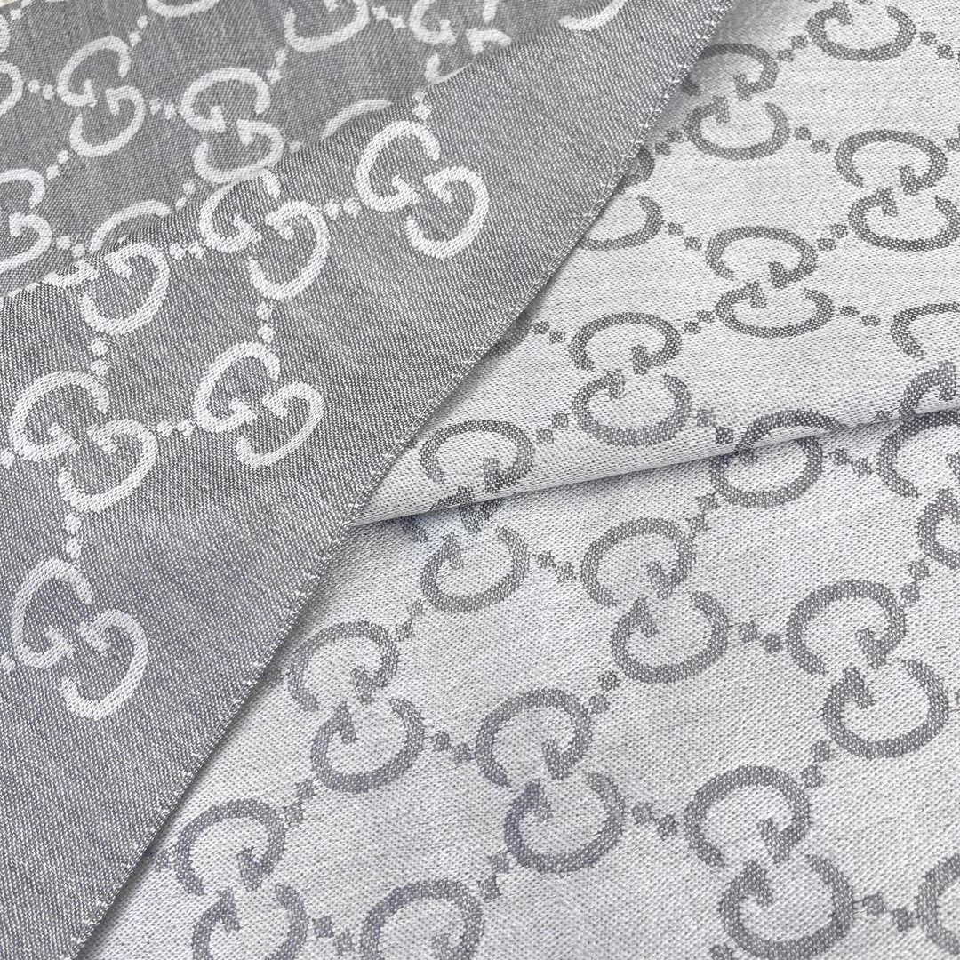 This double-sided jacquard scarf is made of soft and lightweight silk wool. The front and back sides are made of contrasting GG jacquard design and large-area single-color block stitching. It is suitable for wearing in all seasons and is extremely comfortable.