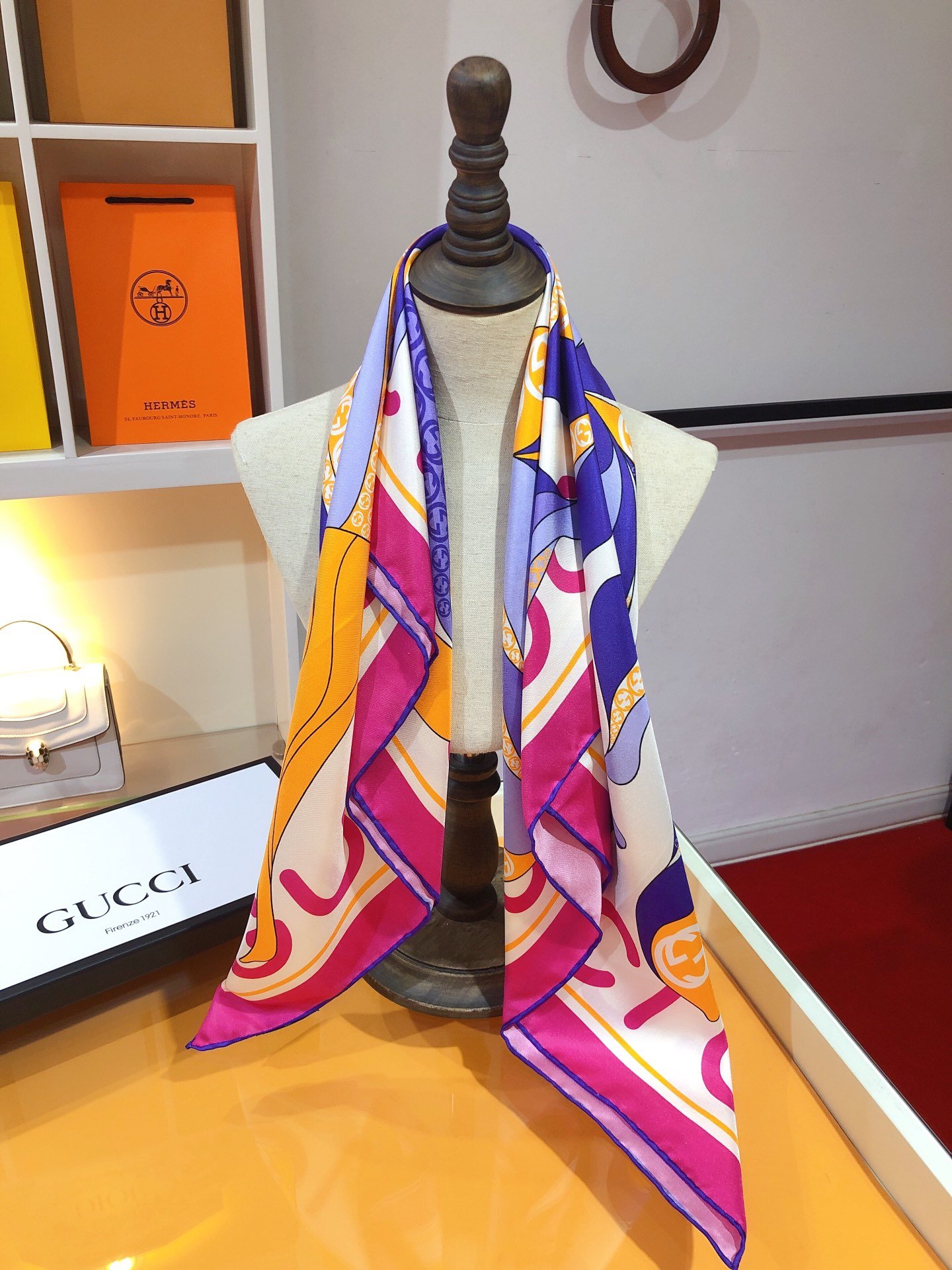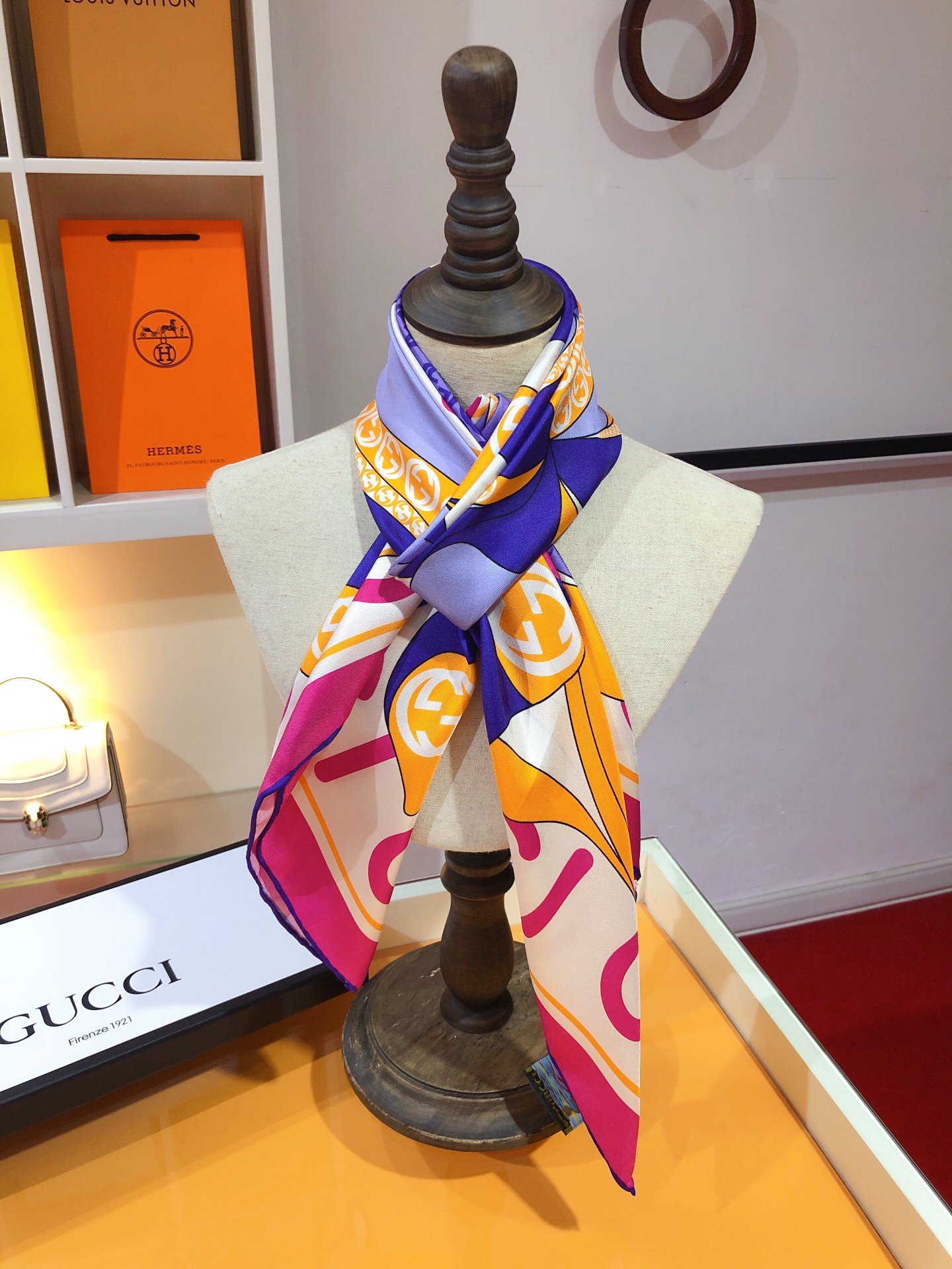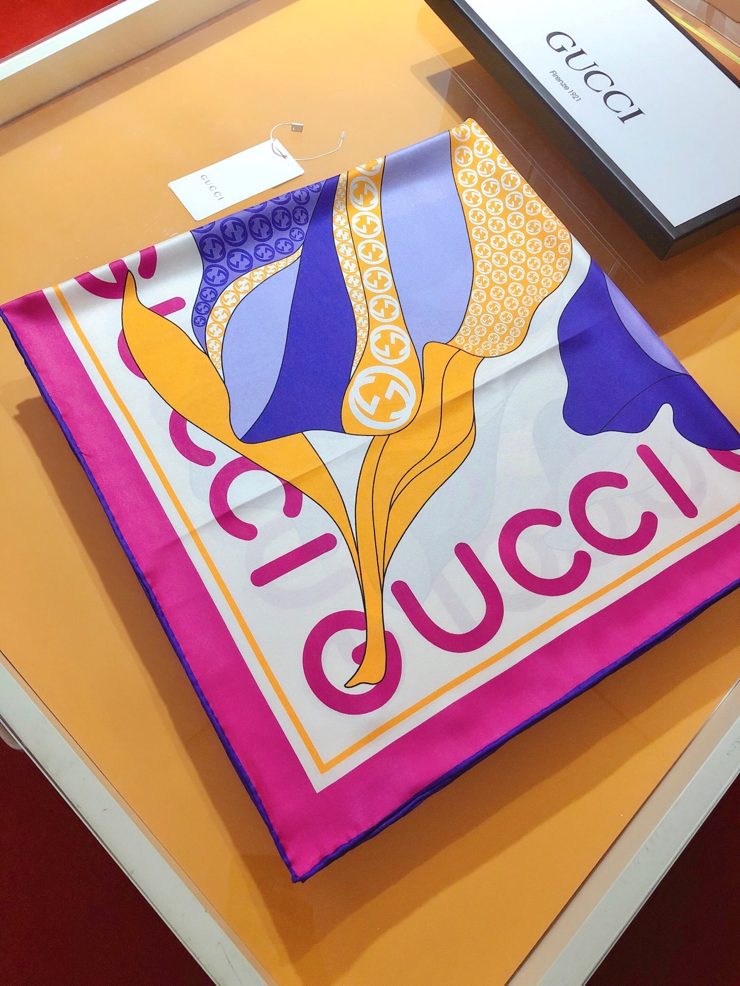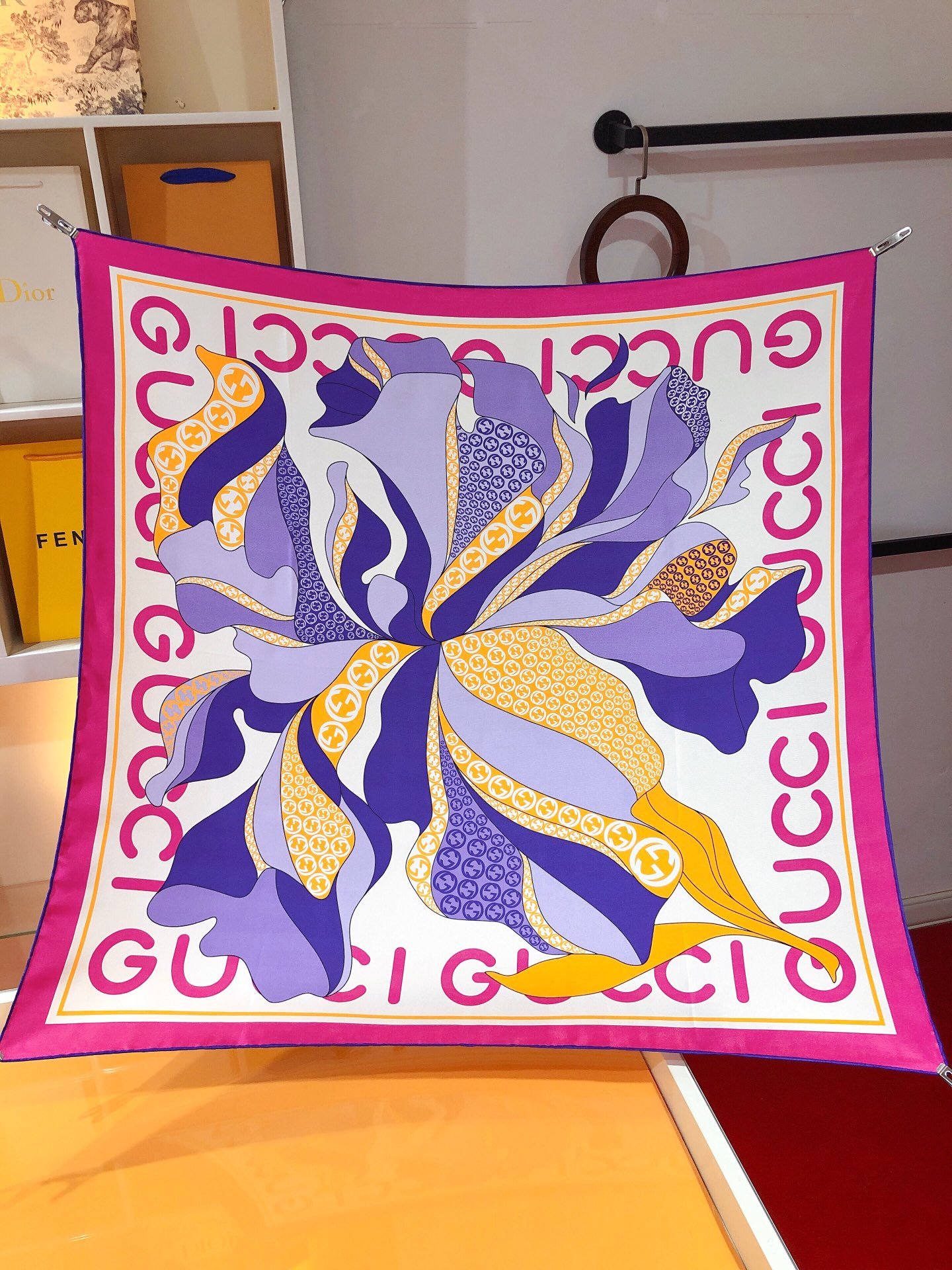 Original Gucci enlarged flower print twill 90cm square scarf. Deduce the brand logo with unconstrained creativity, injecting a touch of freedom into the design. This silk scarf features an oversized flower and interlocking Gs at the center, while Gucci piping enhances the design. ~~Pairing it with a simple base layer and a jacket really shows the taste of a high-end woman, sisters who know how to match must start with it‼ ️Exquisite hand-curling is very well done, custom-grade fabrics. It is very easy to shape, dear friends, it is worth having, a must-have! 【Specification of this item: 90x90cm 100% silk】
