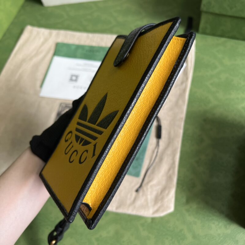 As one of the ad GG joint series, the 1955 series mini messenger bag is decorated with Trefoil printing. Integrating the rich and long-standing collection elements of the two brands, the adidasx Gucci joint series inherits the brand history and iconic design language in the combination of three lines. Creative Director Alessandro Michele draws inspiration from fond memories of the 80s and 90s to create a collection that is both nostalgic and modern. Dimensions: 10(W)x17(H)x2.5cm. Color: Yellow spelled full leather/Adidas co-branded model.