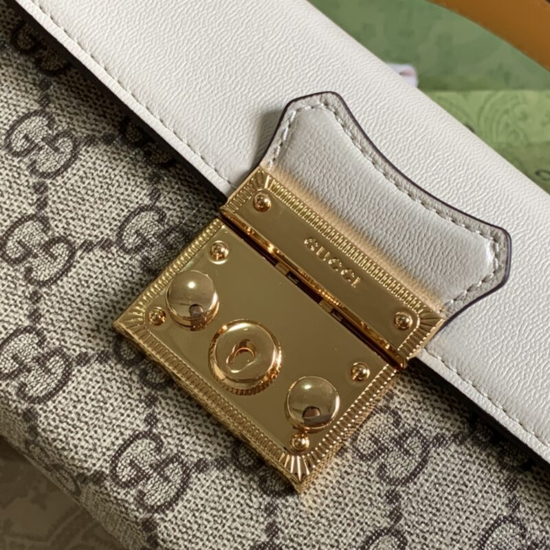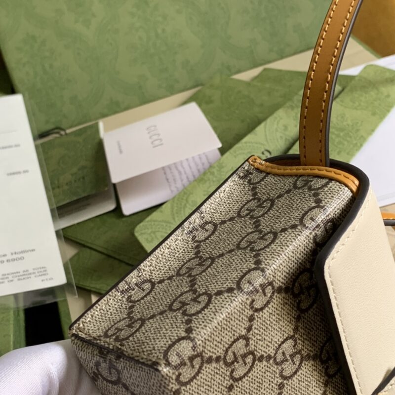 Stunning styling in colorful leather and canvas The bag is crafted in the house’s signature G monogram canvas with a black leather top and the collection’s signature lock detail Brown leather shoulder strap and handle Hands add eye-catching contrasting details to bags The brand does a great job of using different materials and shades to create stylish mix-and-match designs! Size 18/10/5cm
