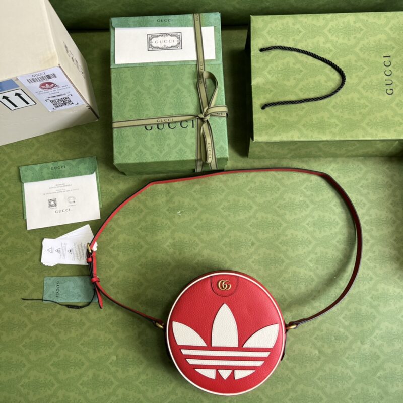 GG is one of the adidasxGucci joint series. This Ophidia series shoulder bag is decorated with Trefoil patches, which integrates the rich and long-standing collection elements of the two brands. The adidasxGucci joint series inherits the brand history and iconic design language in the combination of three lines . Creative Director Alessandro Michele draws inspiration from fond memories of the 80s and 90s to create a collection that is both nostalgic and modern. Size: 22*22*7cm.