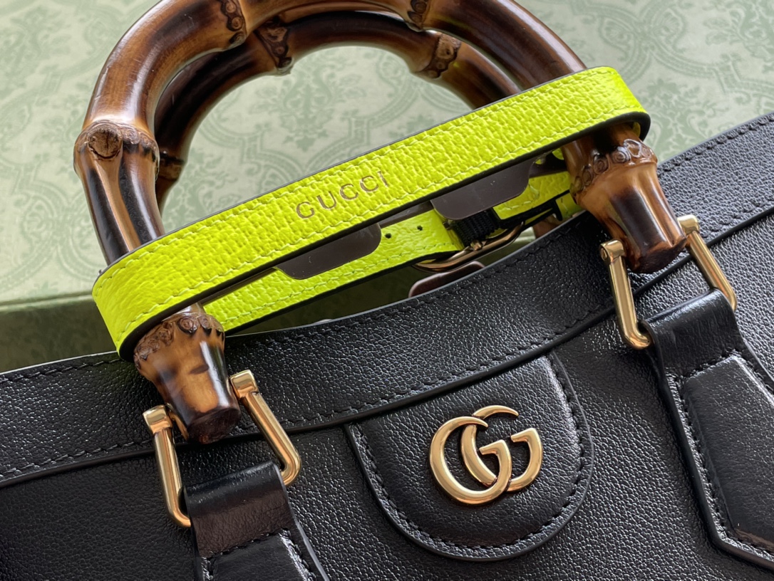 The new diana bamboo bag is equipped with a fluorescent buckle on the classic bamboo elements. You can choose different colors to match according to your mood and style. Size: 27/24/11cm