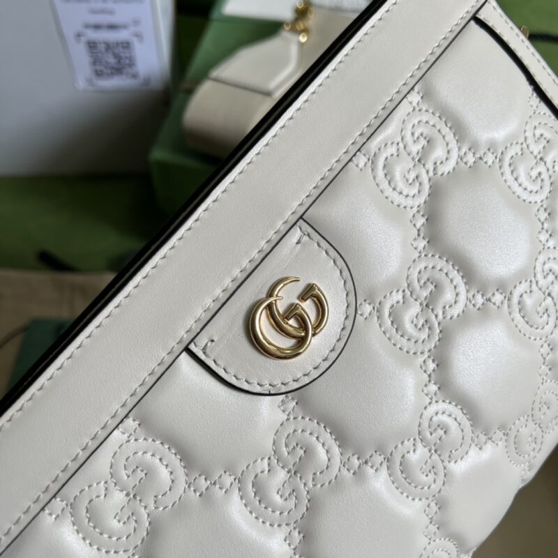 💖The GG matelassé leather shoulder bag UM8HG 1046 continues to stand out in a unique way. With an ultra-soft finish, the iconic material is once again reimagined as part of the Gucci Love Parade, with a textured geometric pattern. The design presents a contemporary approach to the ’90s logo trend that appeared in House’s latest collection. Here, it comes in a minimalist shade of black. White GG matelassé leather with double G gold hardware. Size: 26*17.5*8cm.